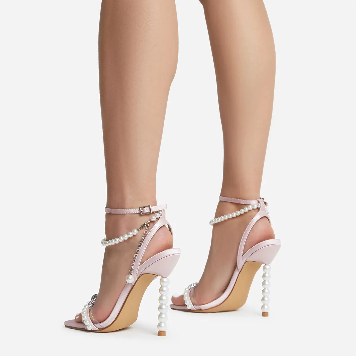 PDEP ladies heels 2023 New 9cm square toe slim rhinestone bow pearl one line strap high heels for ladies women's wedding shoes