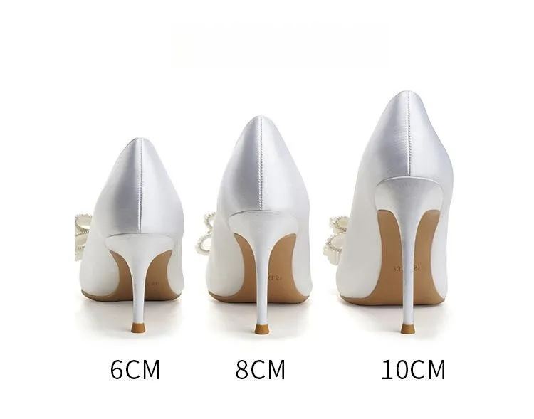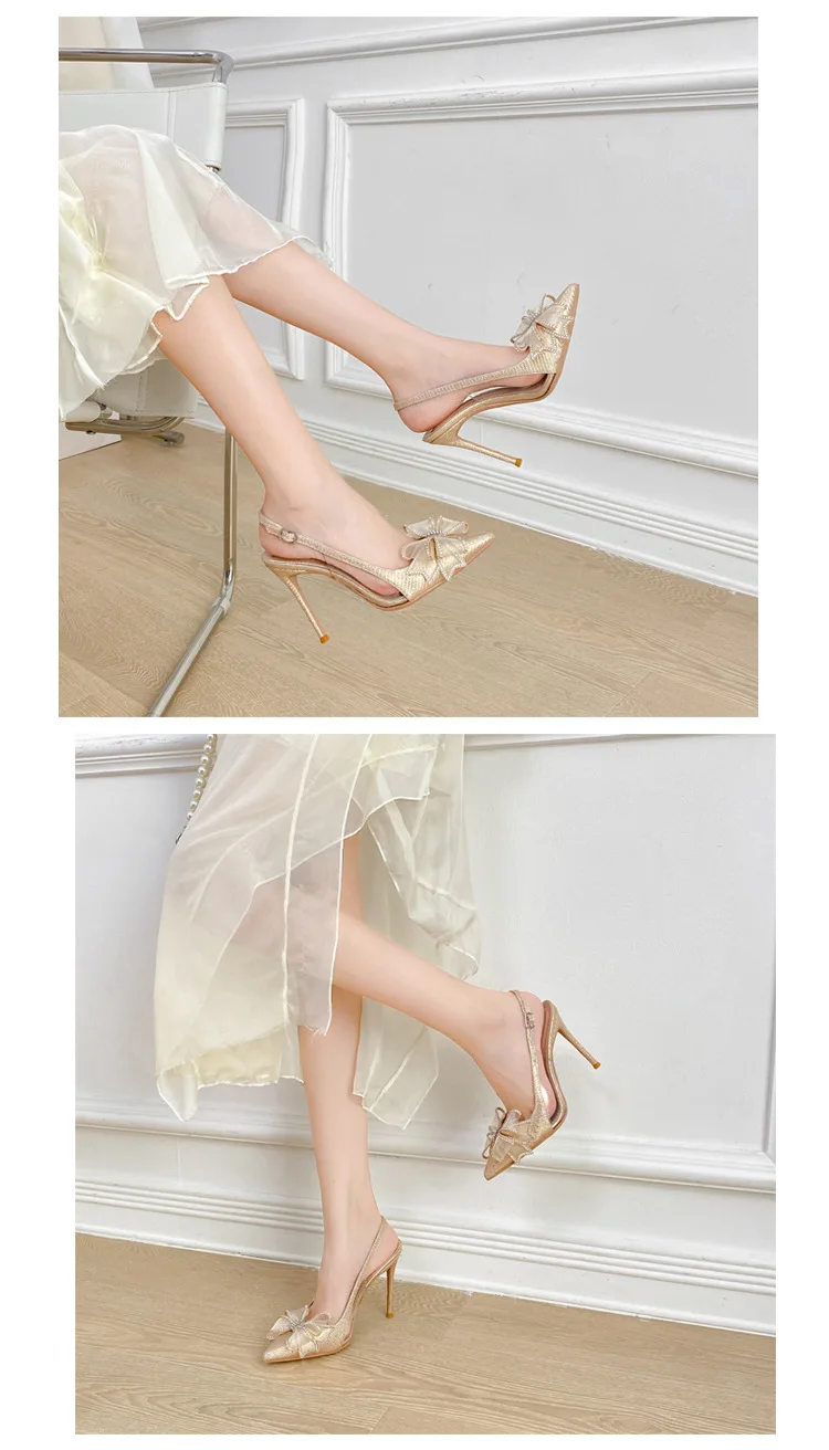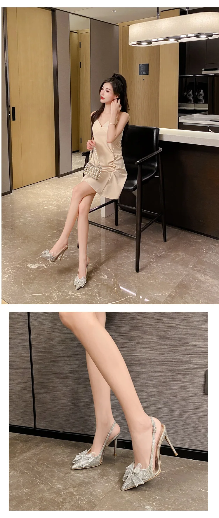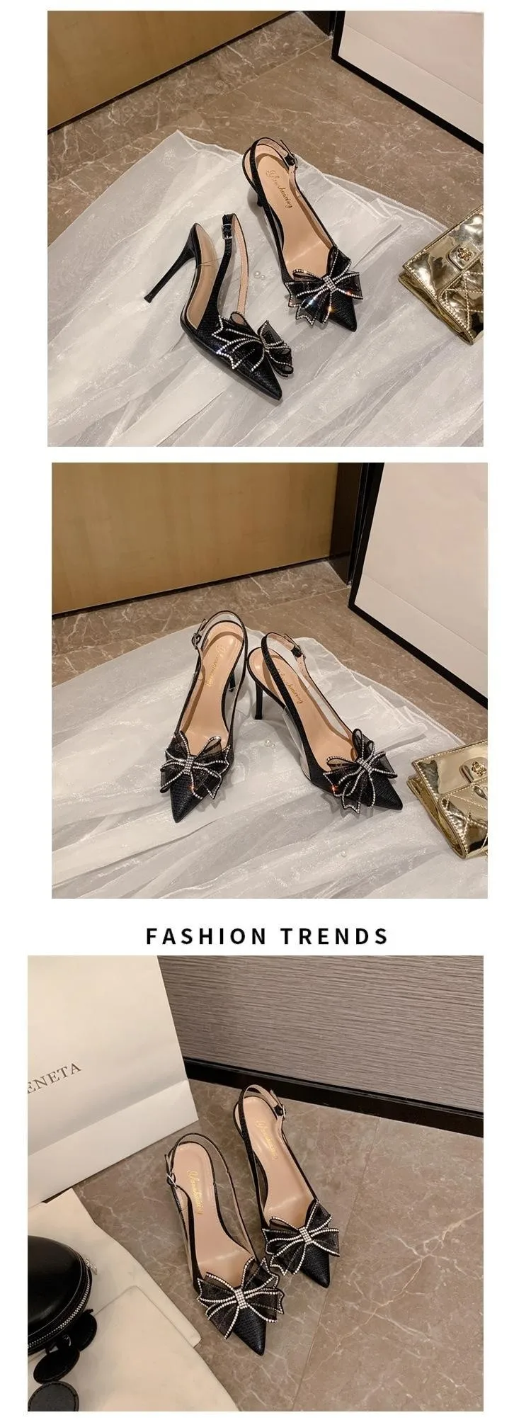 PDEP New stiletto point toe elegant bridal wedding shoes sling back rhinestone bow sexy ladies high heels shoes 2023