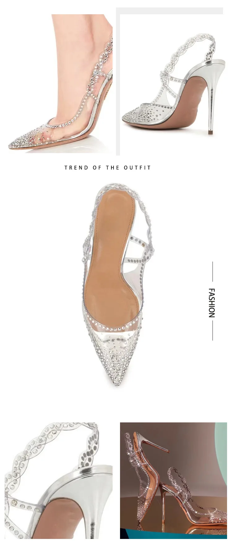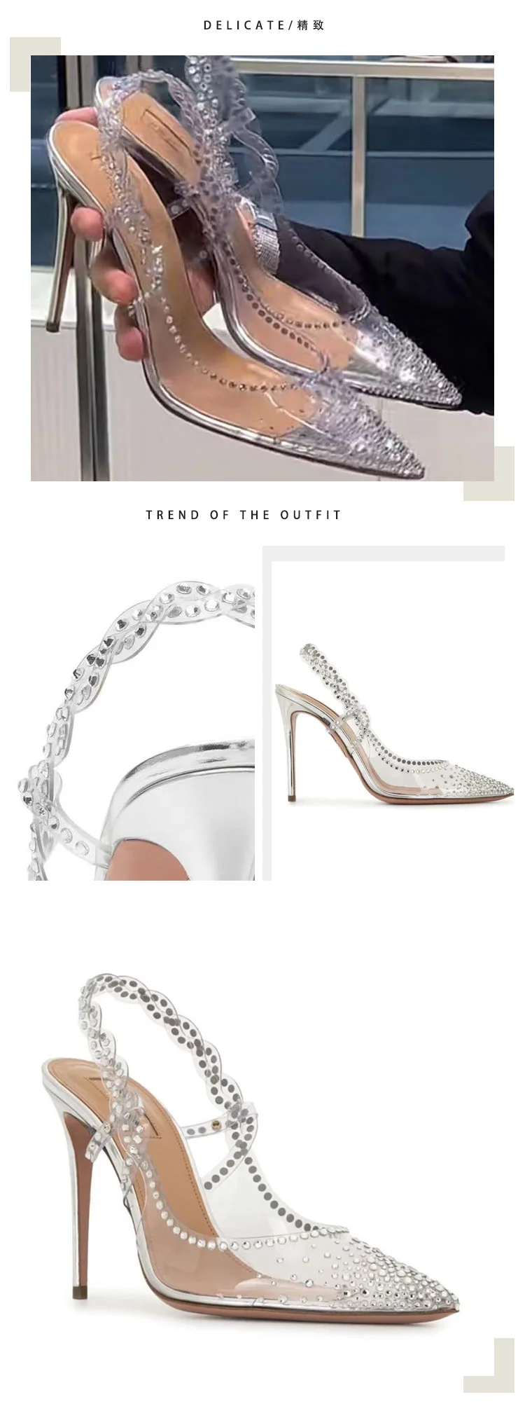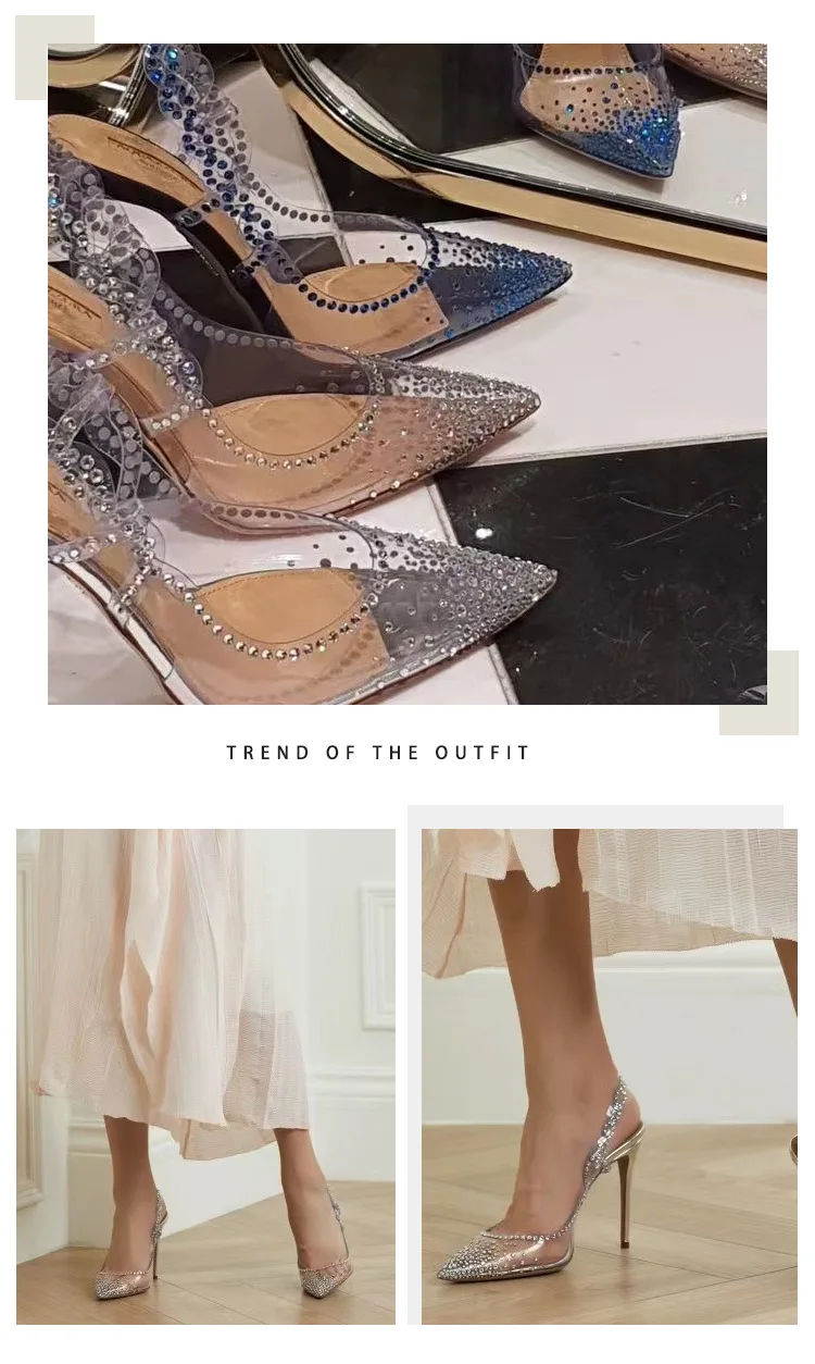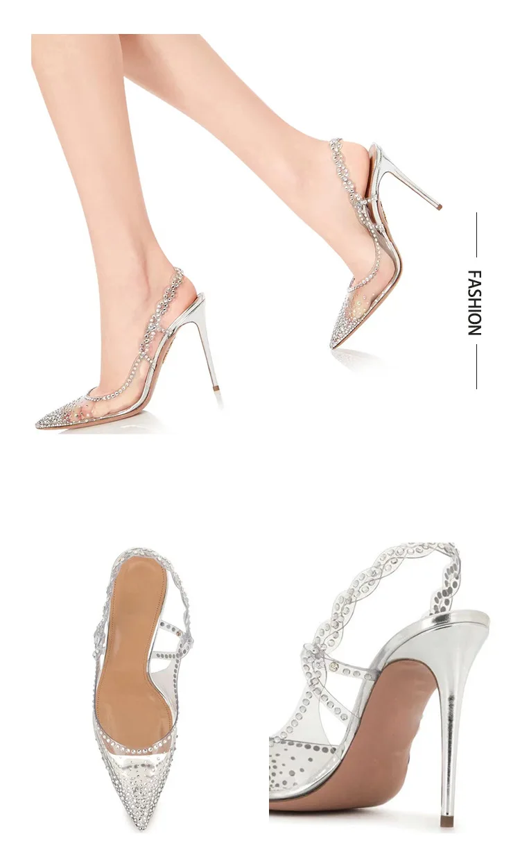 PDEP point toe elegant transparent rhinestone silver fashion trend heel for women new stiletto ladies wedding shoes for bride