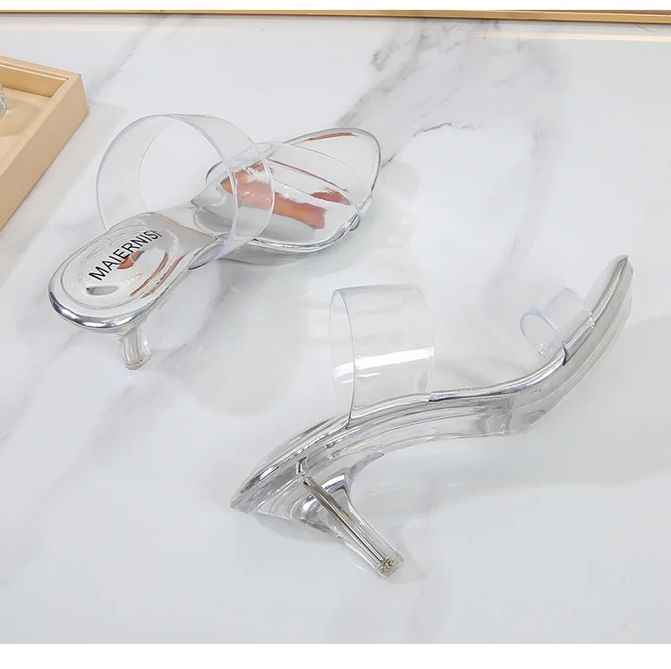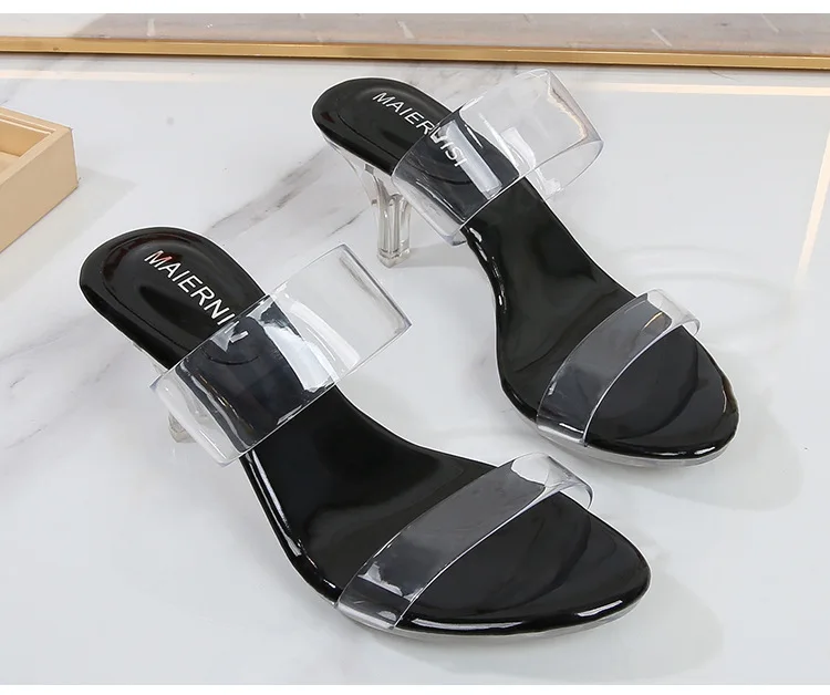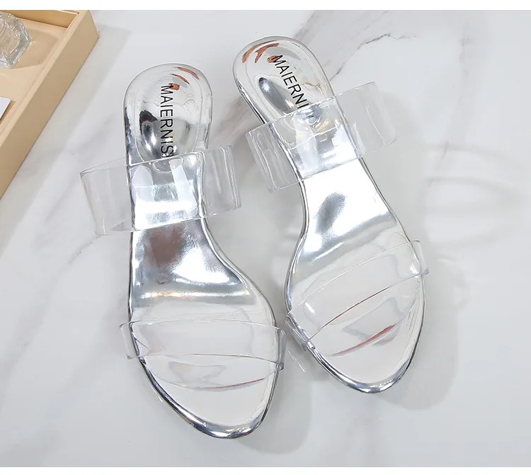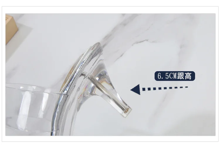 PDEP wholesale crystal PVC clear transparent high heel slippers 6.5cm summer sandals for women and ladies