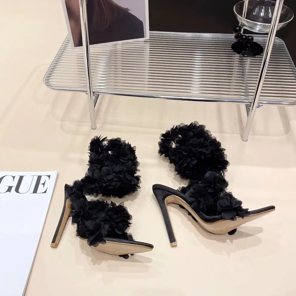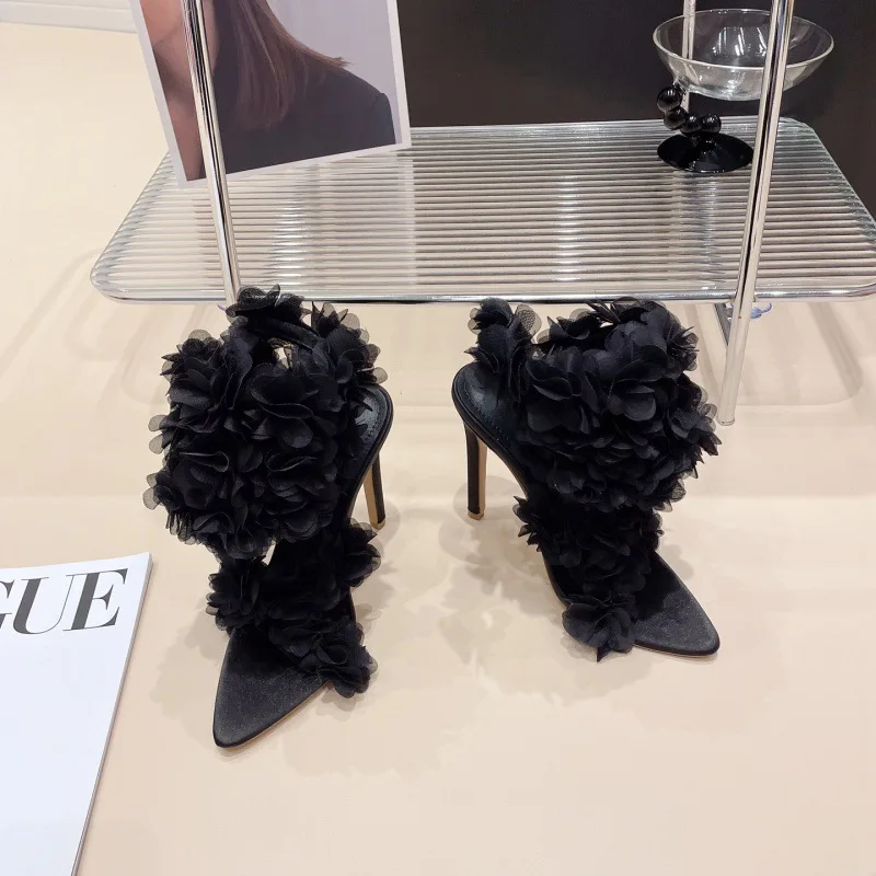 PDEP women's fashion flower stiletto heels new sexy pointed toe 2023 summer ladies high heels sandals size 42 shoes