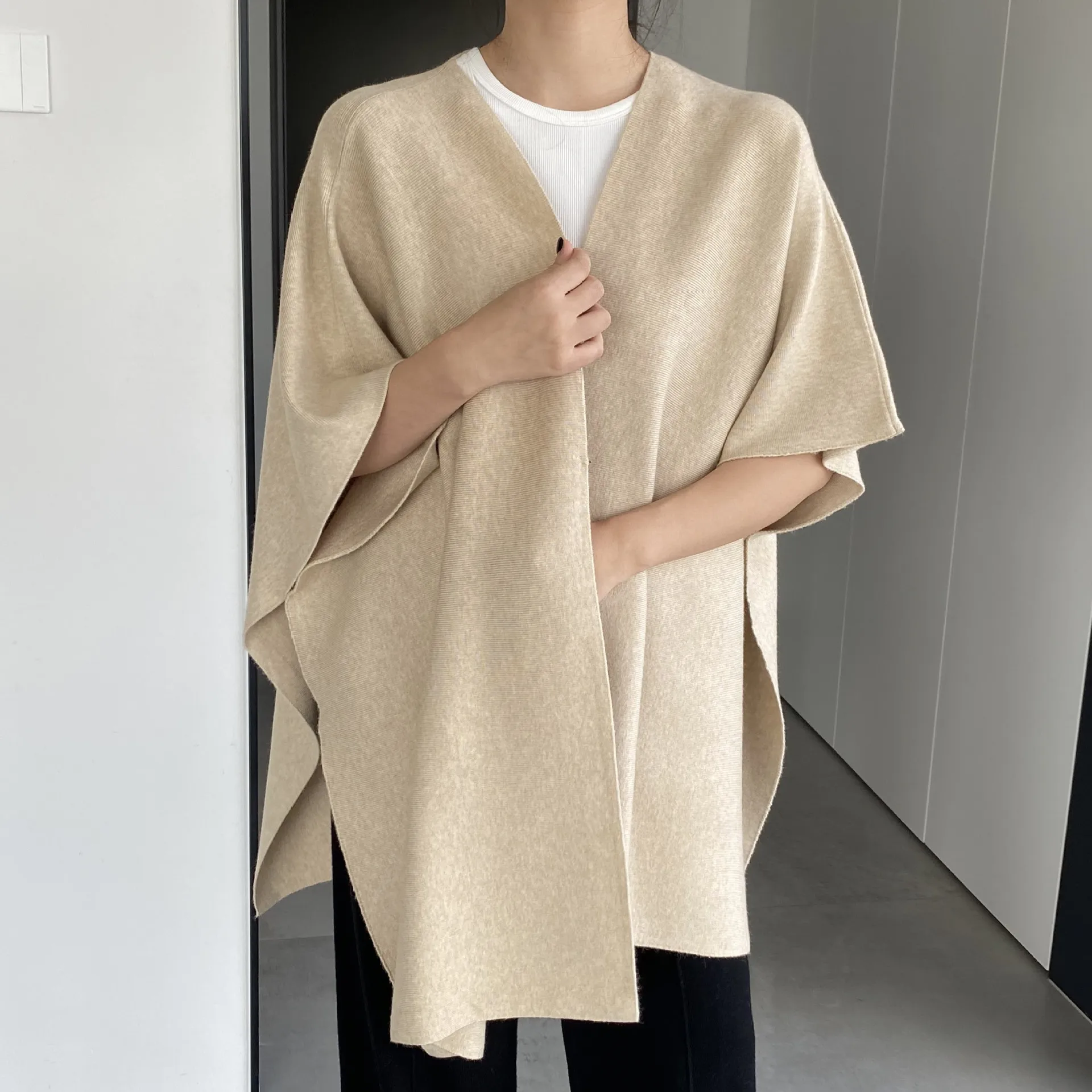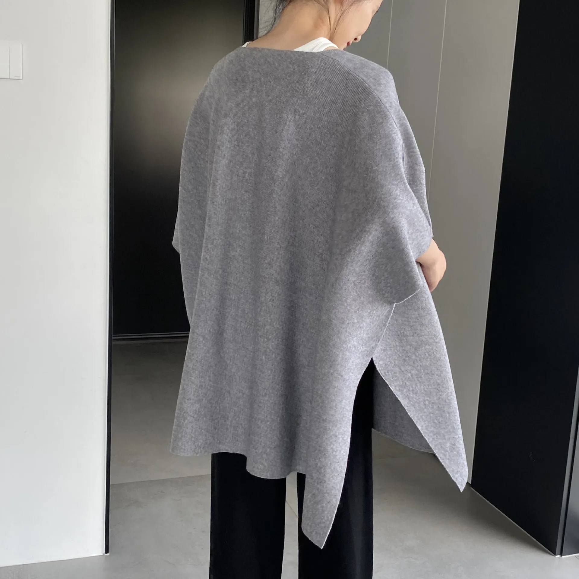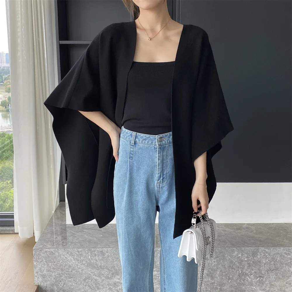 PDEP women's solid color shawl jacket autumn and winter new Korean version fashion loose knitted cardigan sweater top women