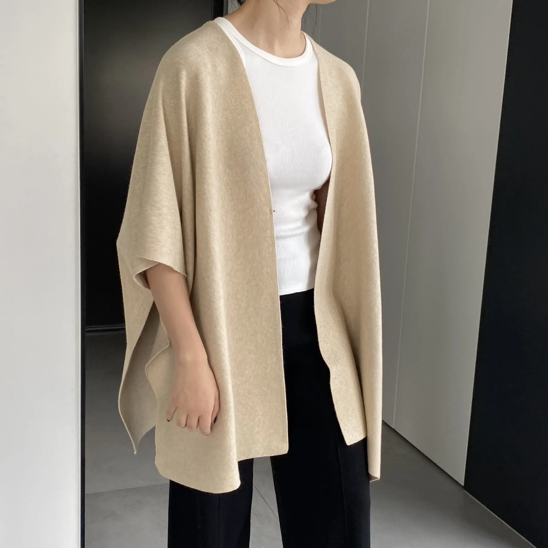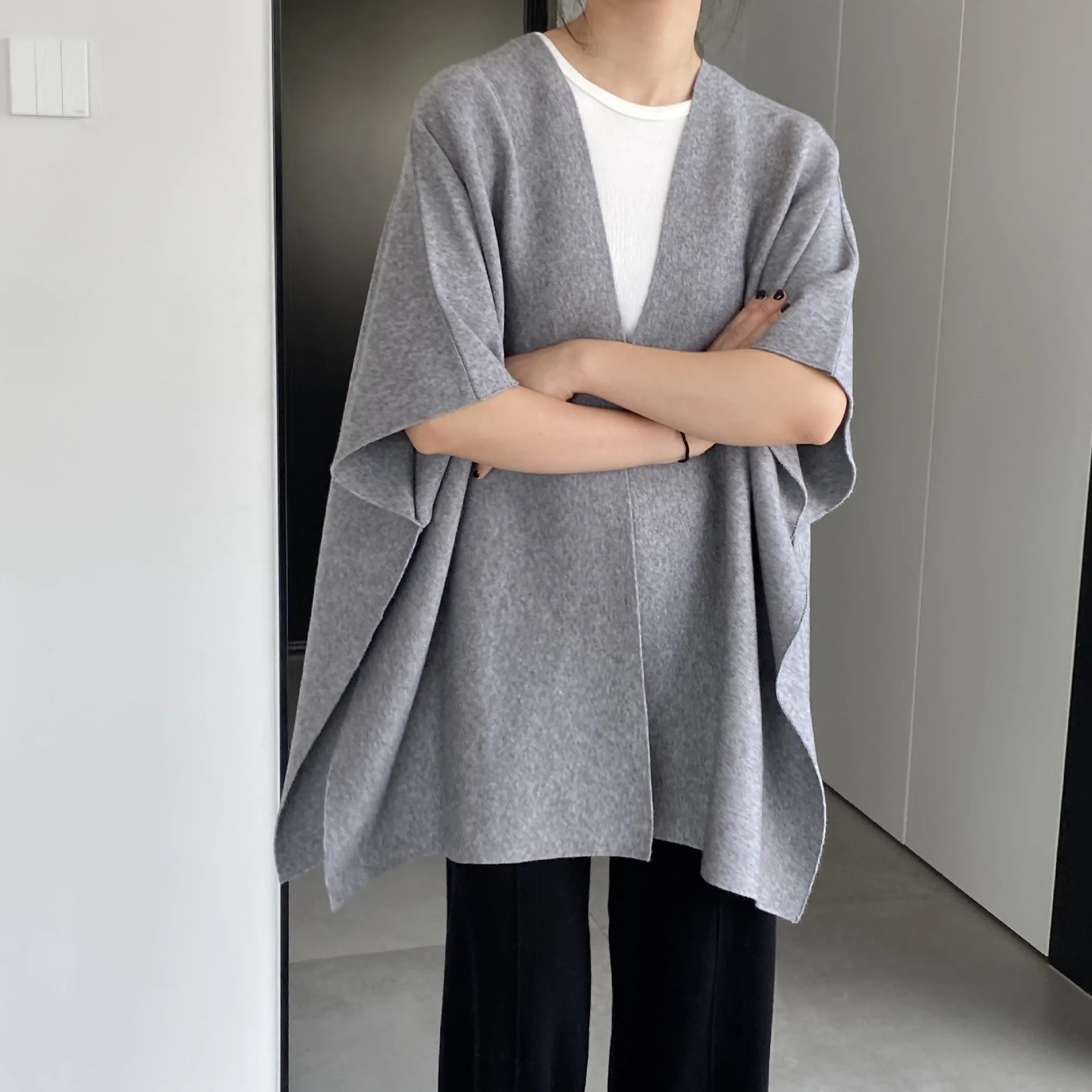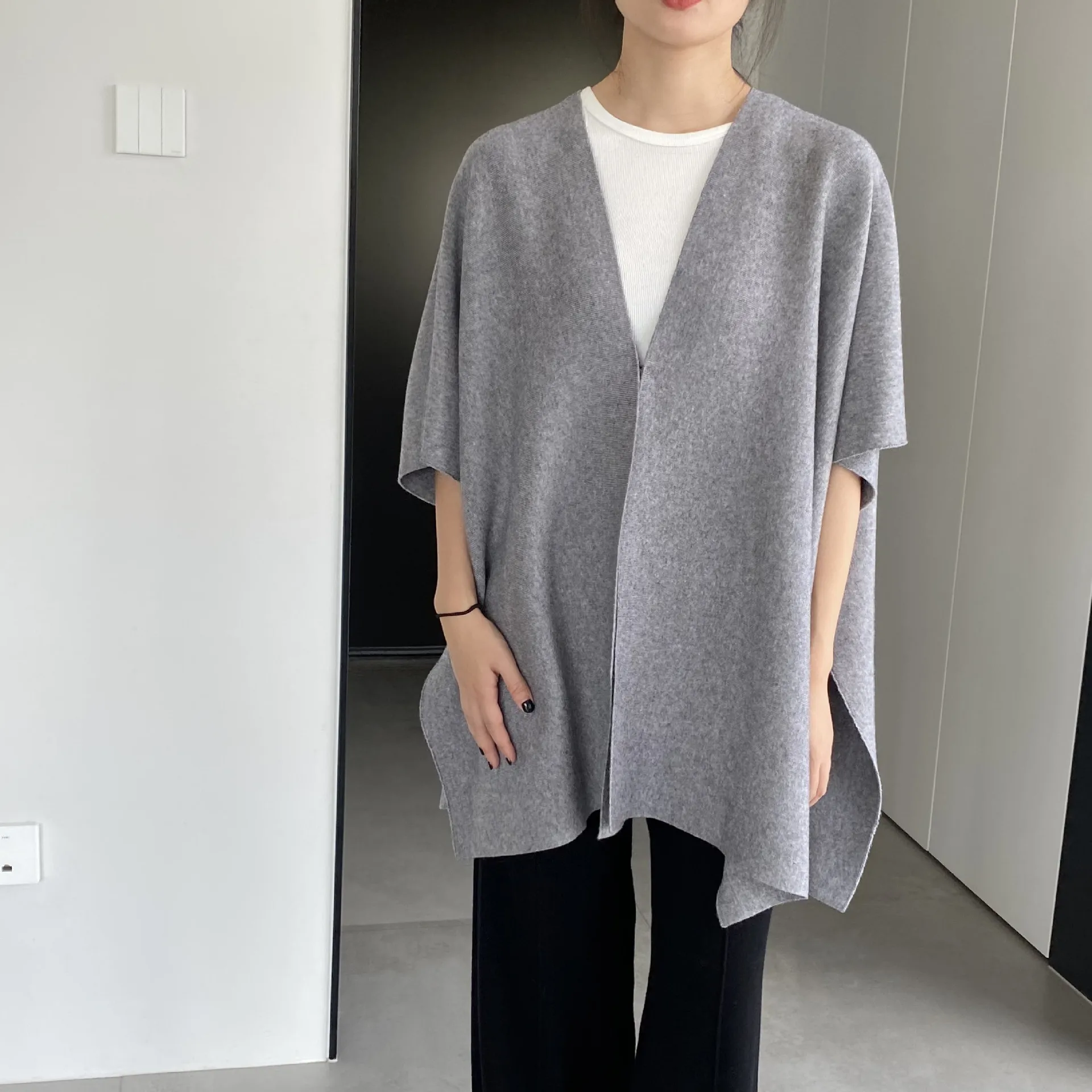 PDEP women's solid color shawl jacket autumn and winter new Korean version fashion loose knitted cardigan sweater top women