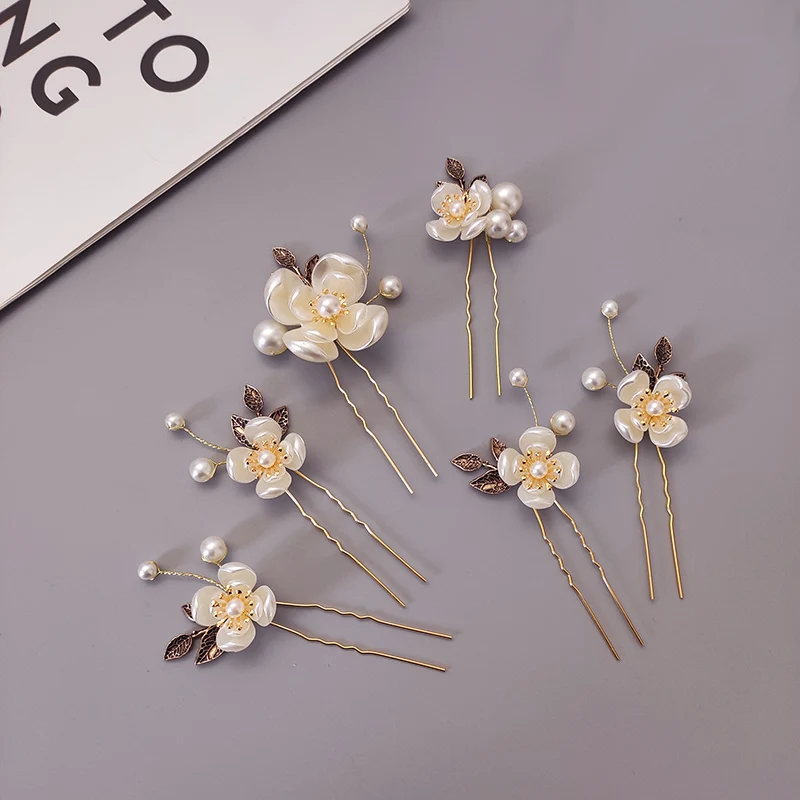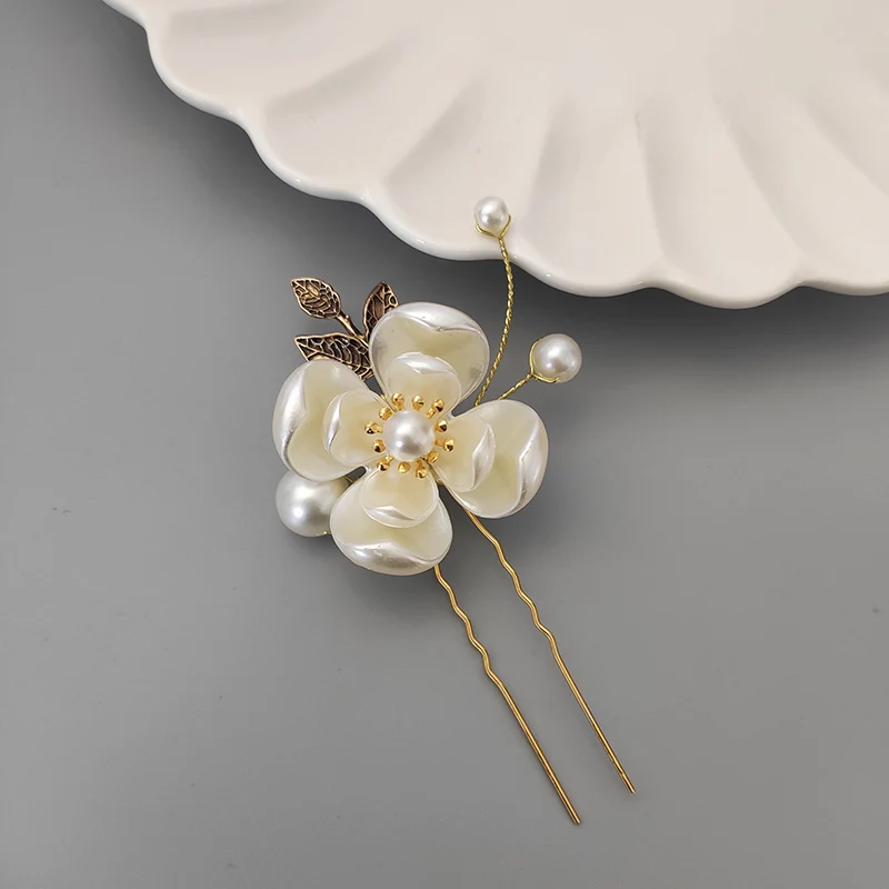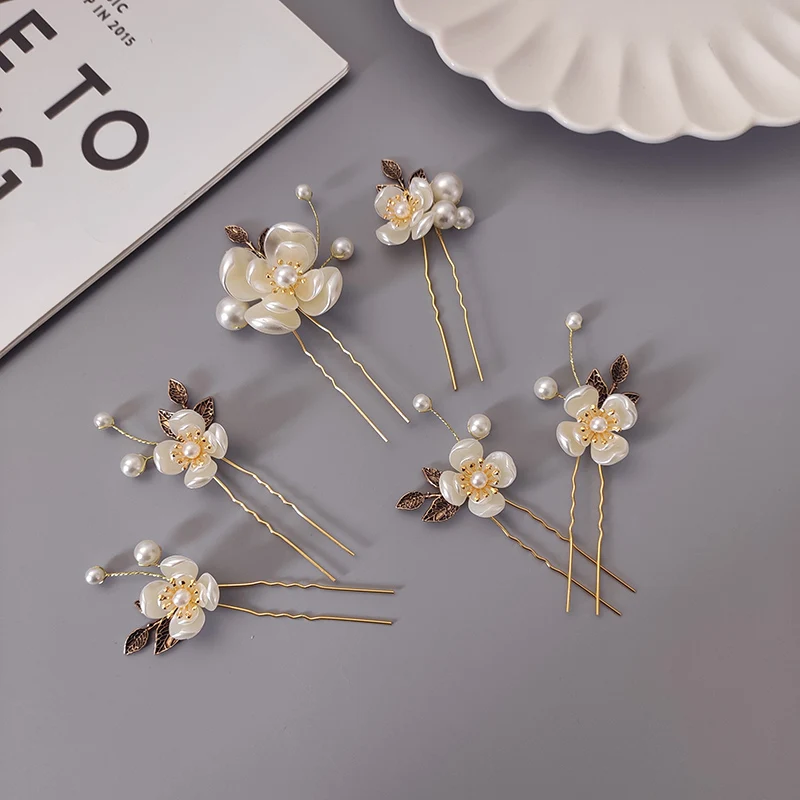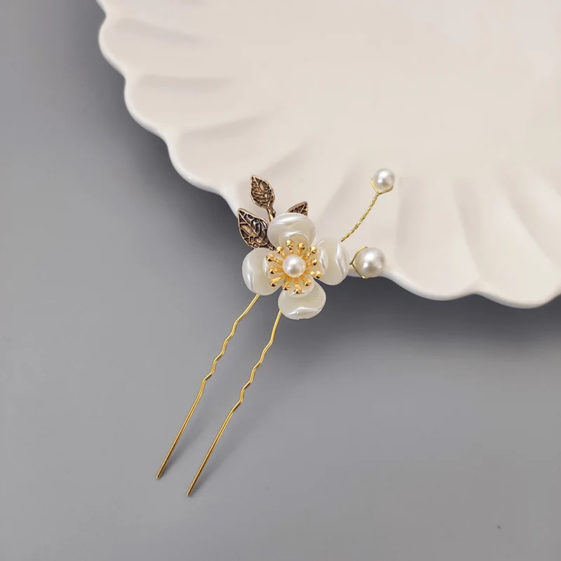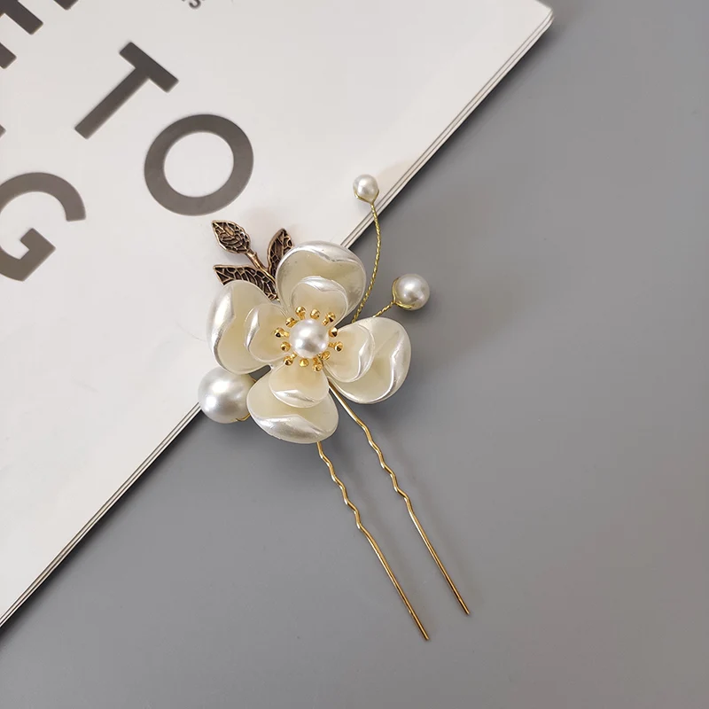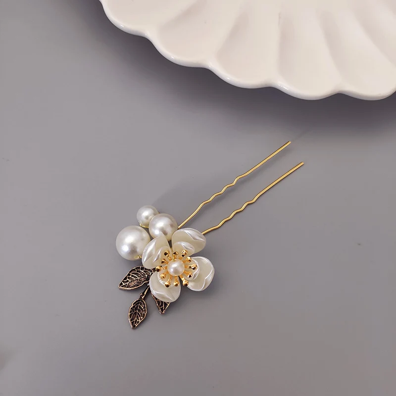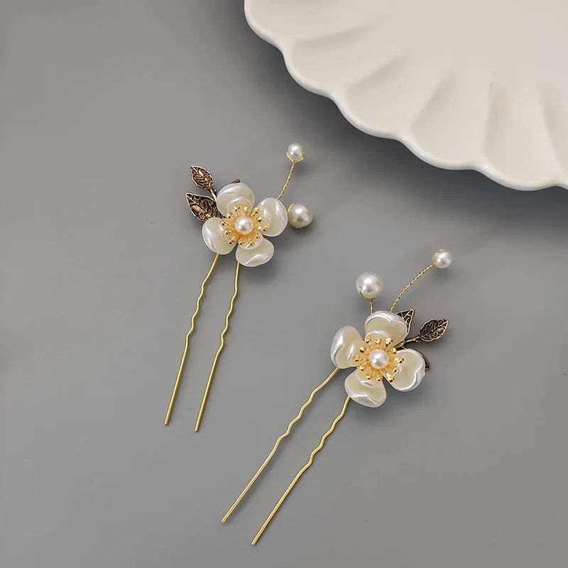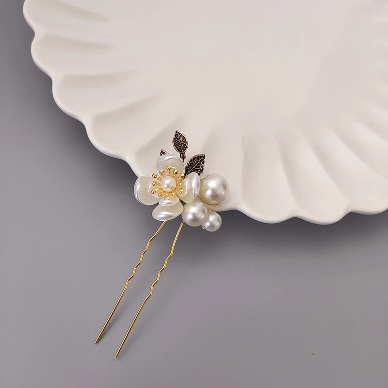 pearl bridal handmade chinese hair pin gold bead chain pearl hairpins wedding pins accessories