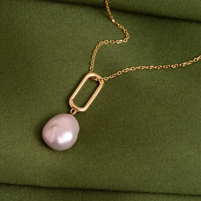 Pearl pendent necklace jewelry paperclip Link Chain Fresh water Baroque Big Pearl pendent Stainless Steel 14K Gold Necklaces