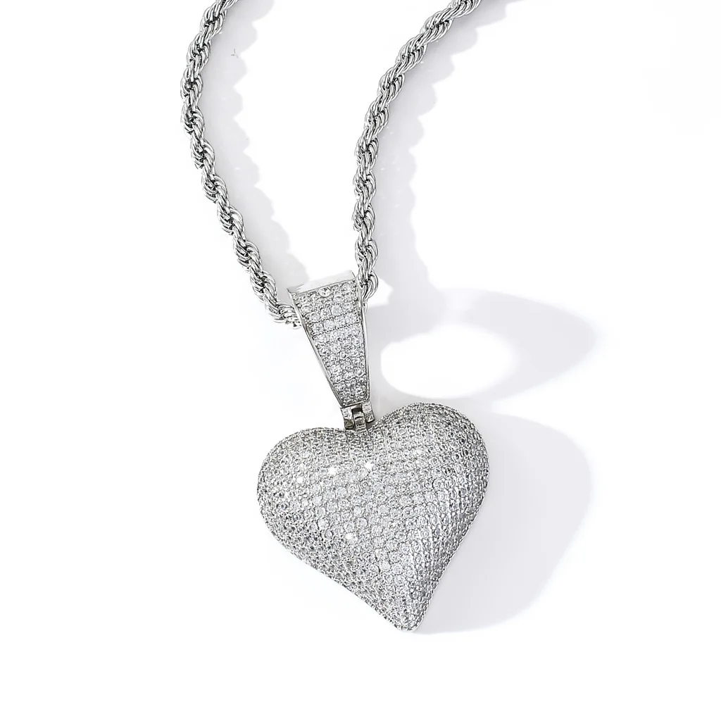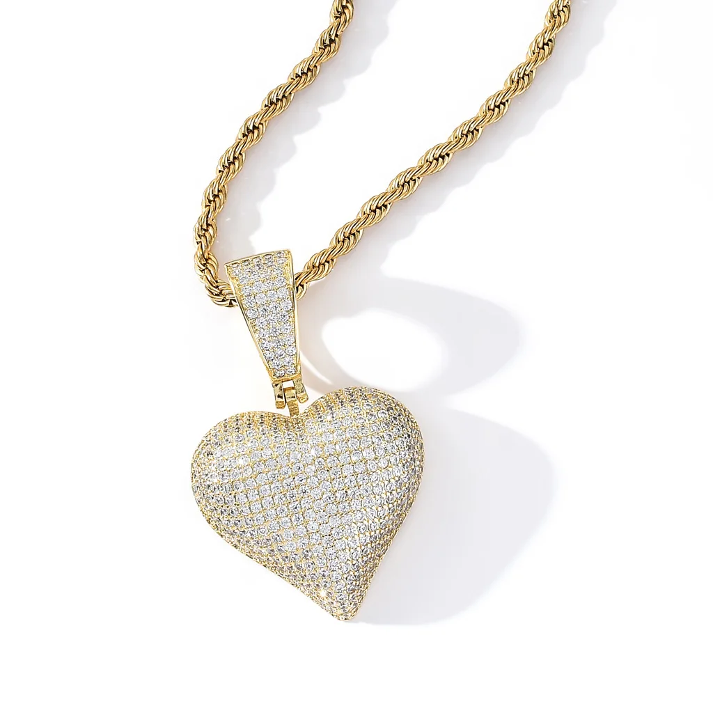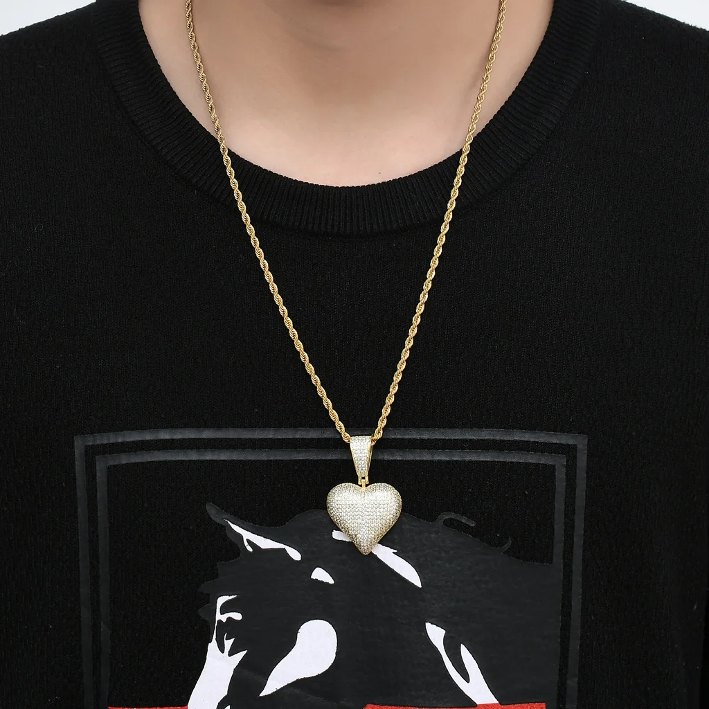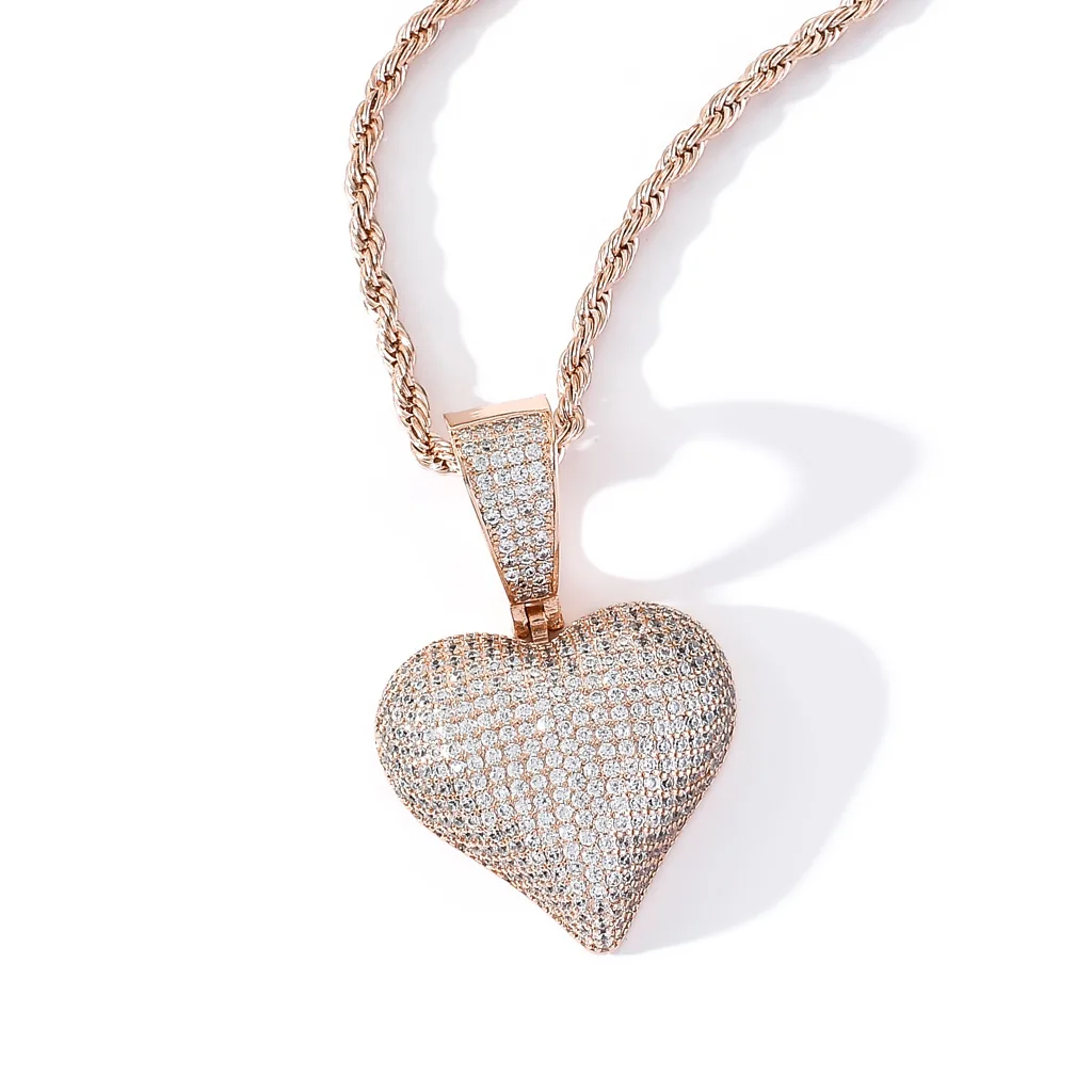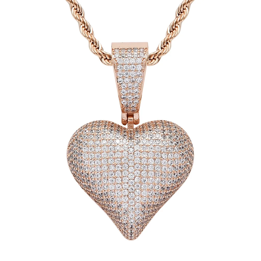 Pink CZ Heart Pendant Necklace 18K Gold Plated Ready to Ship Bling Rapper Necklace Women Jewelry