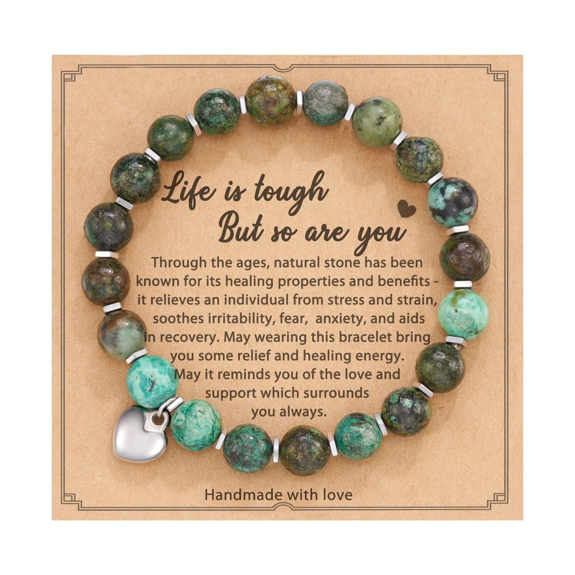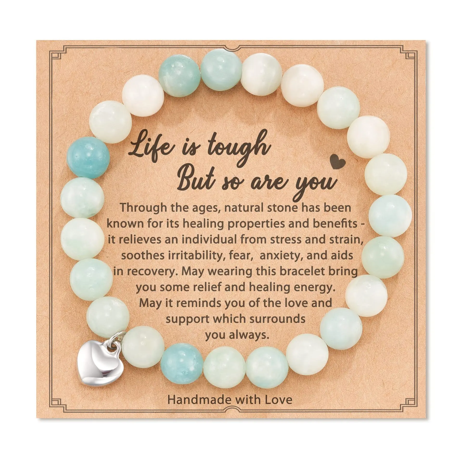 Pink natural stone heart bracelet Christmas birthday gift for Mom Gift mom grandmother Boyfriend mother