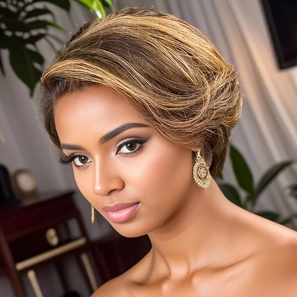 Pixie Cut Wig 13x1 Transparent Lace Human Hair Wigs Natural Color 4/27 For Women Short Bob Wig T Part Lace Wig