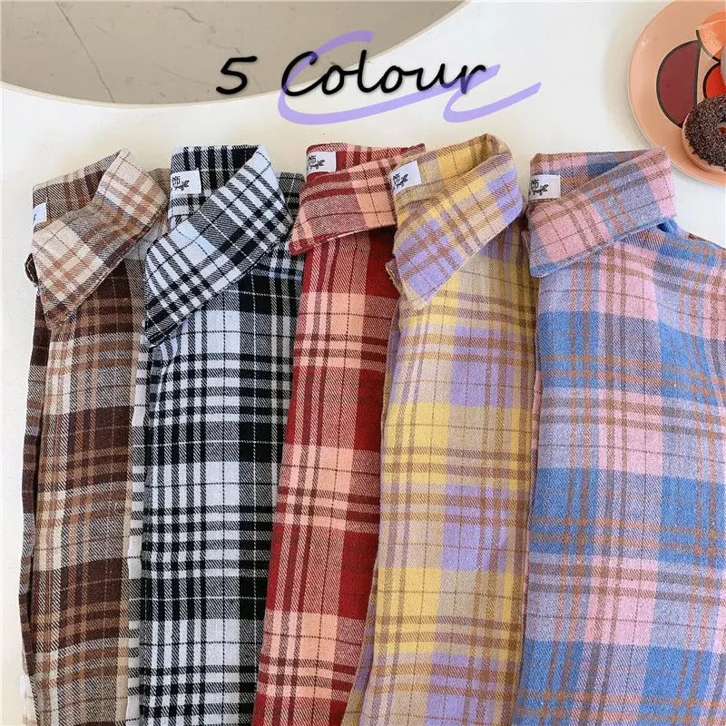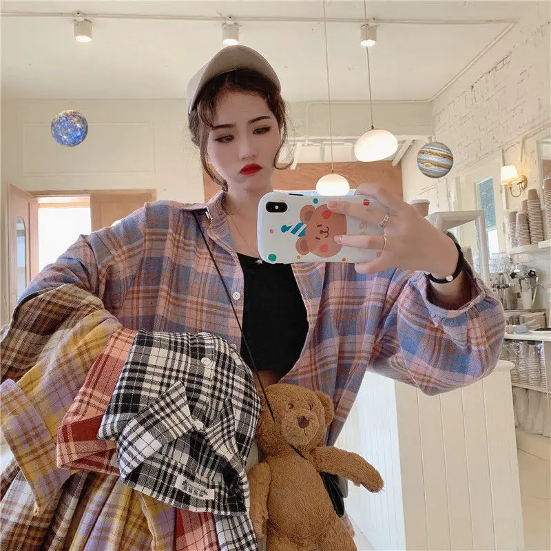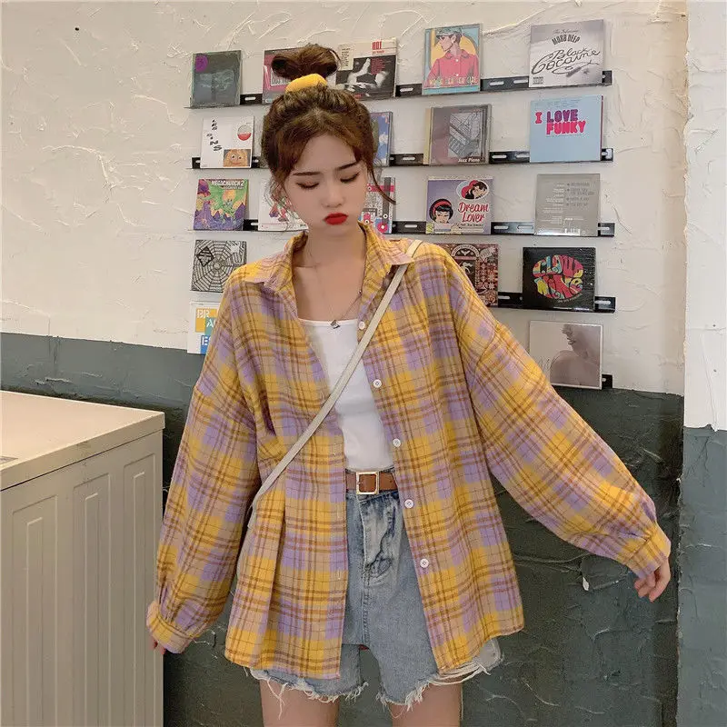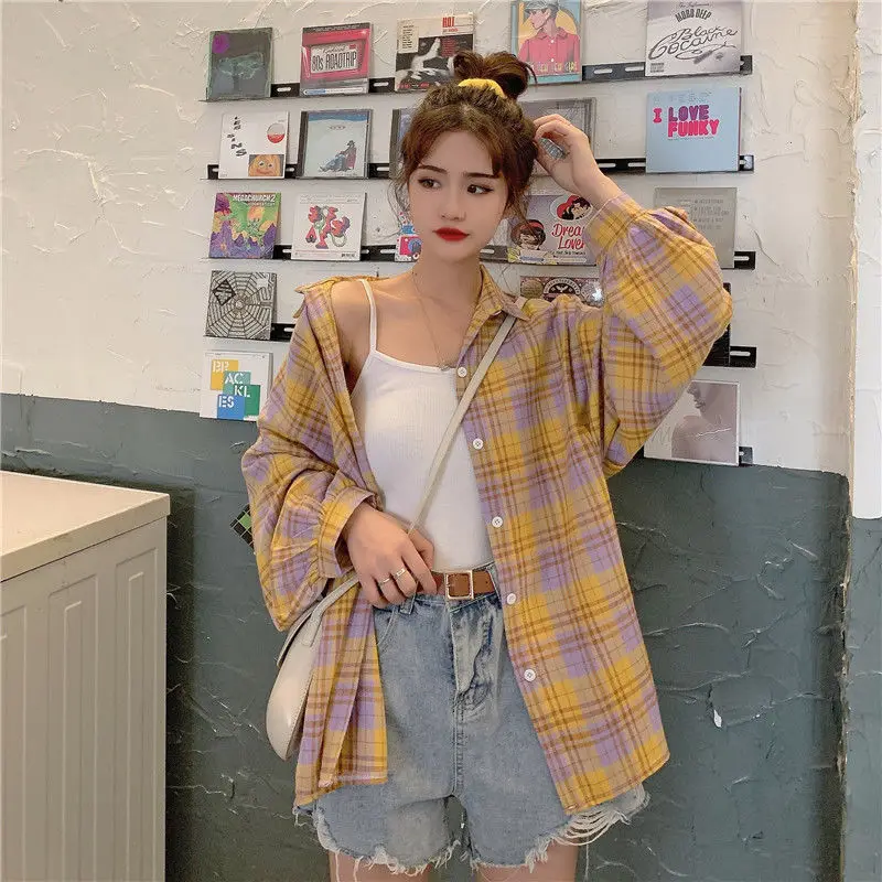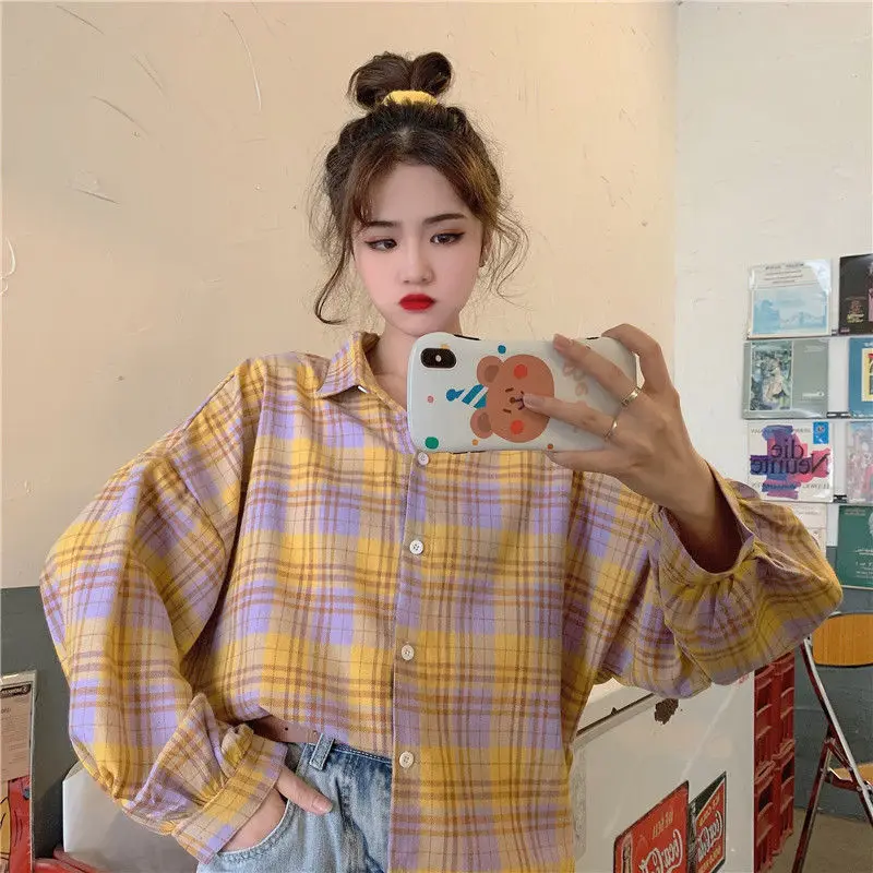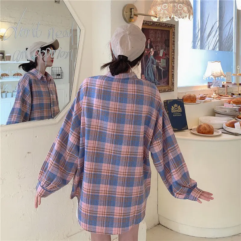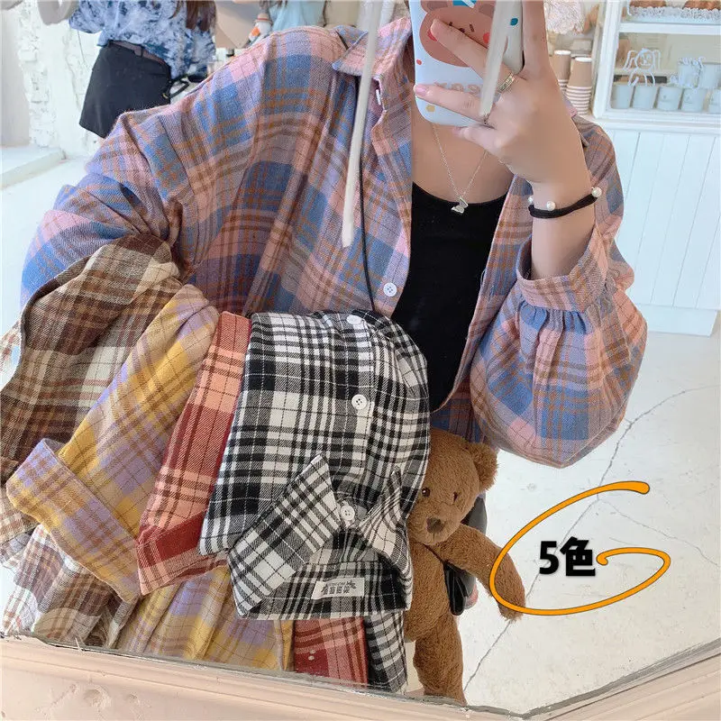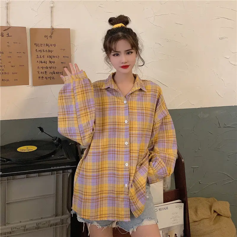 Plaid Shirts Women Beautiful Blouse with Lush Sleeves Cardigan Korean Style 2022 Fashion Oversized Streetwear Casual