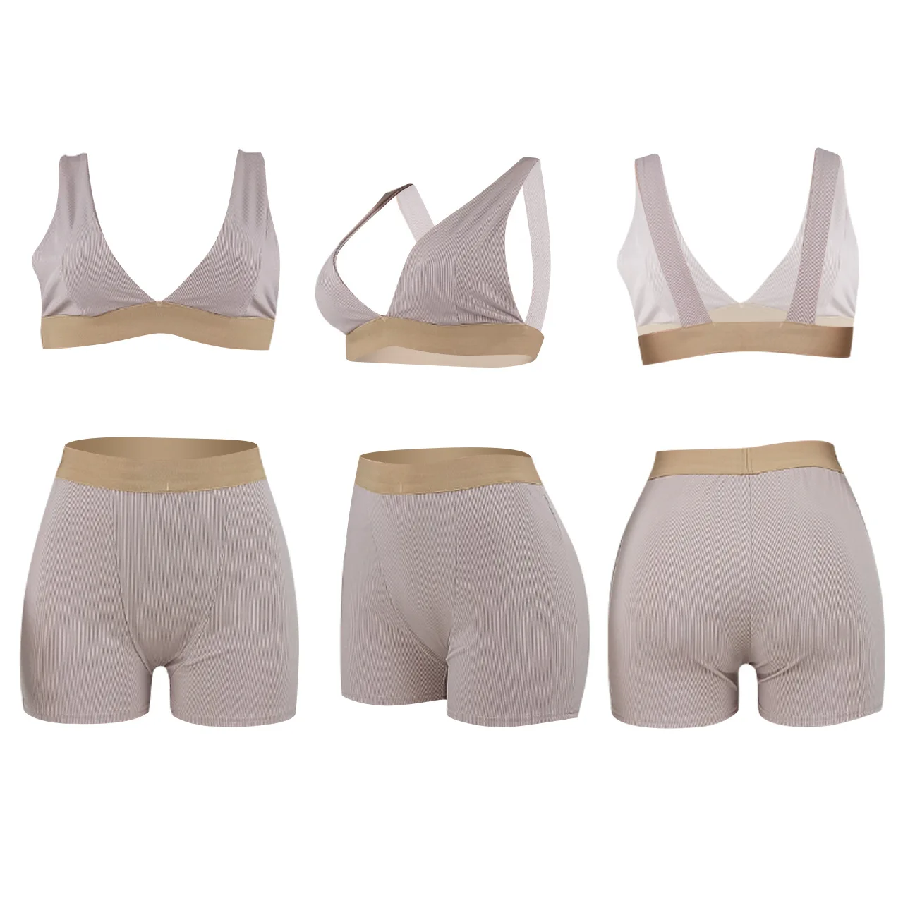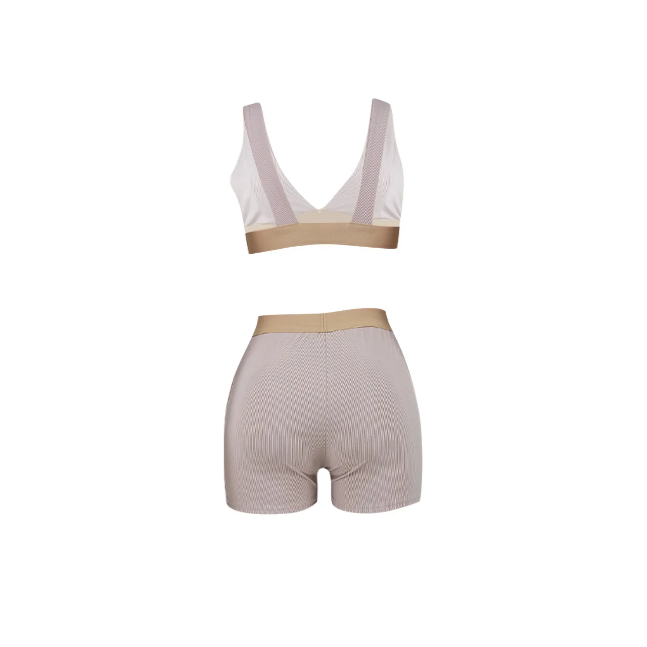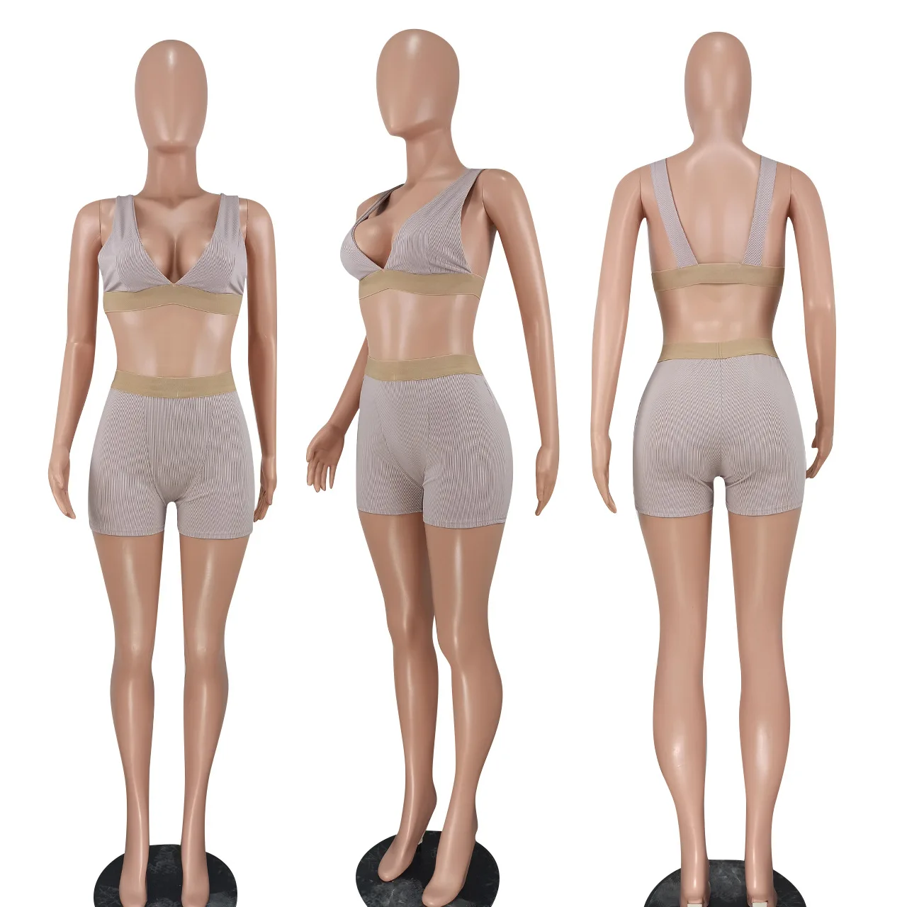 Plain Crop Top and Shorts Summer Set Women Matching Set Nude Two Pieces Top and Shorts Suit 2 Piece Womens Biker Shorts Set