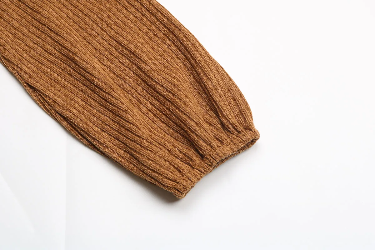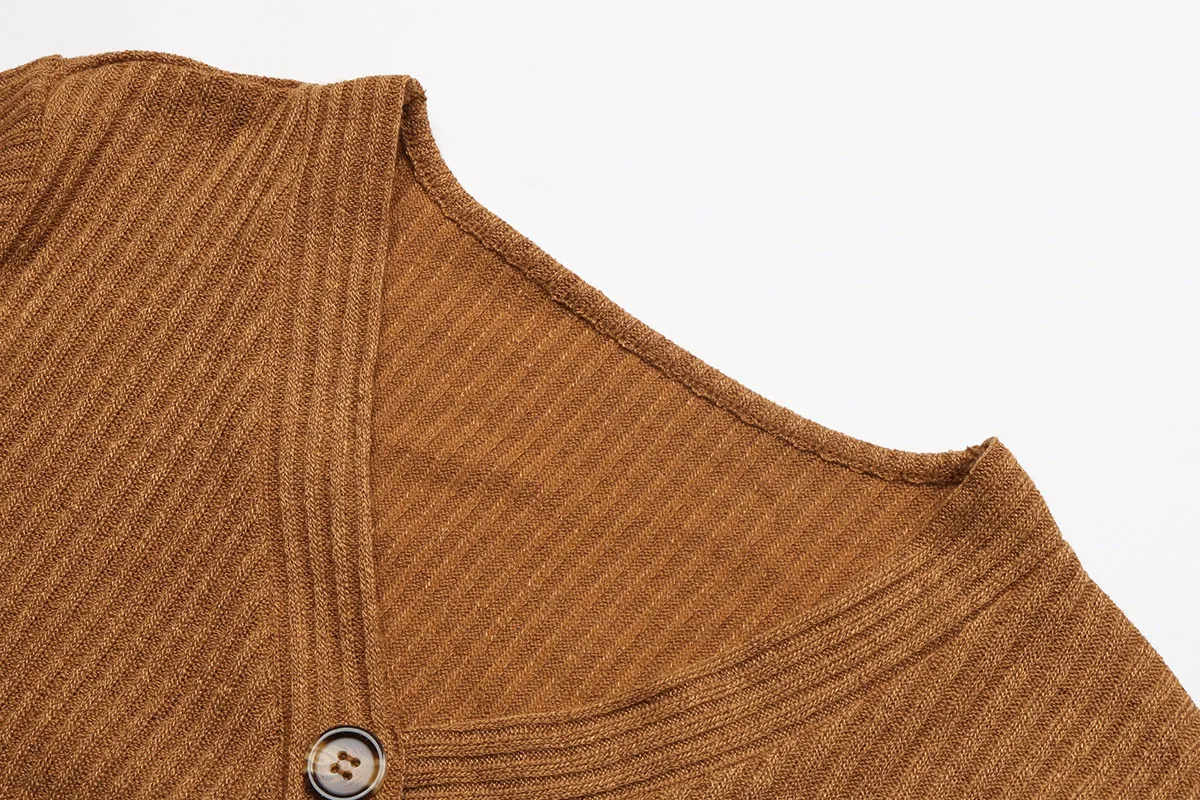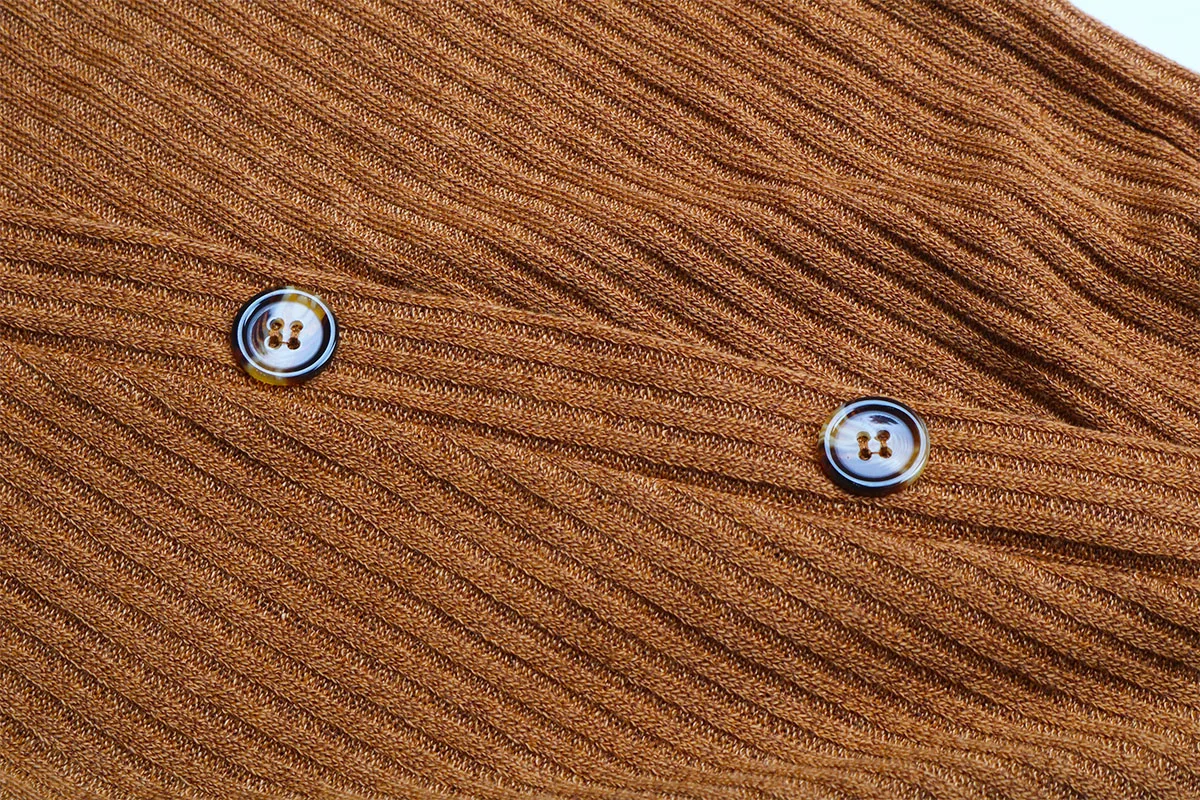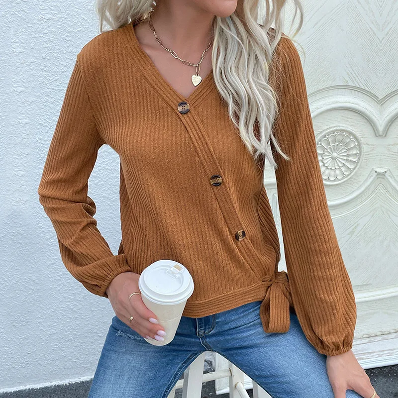 Plain Pullover Women's Sweater V Neck Buttons Solid Color Knitted Pullover Knitted Top