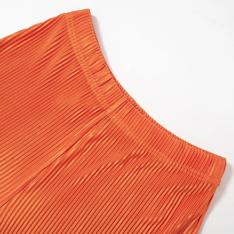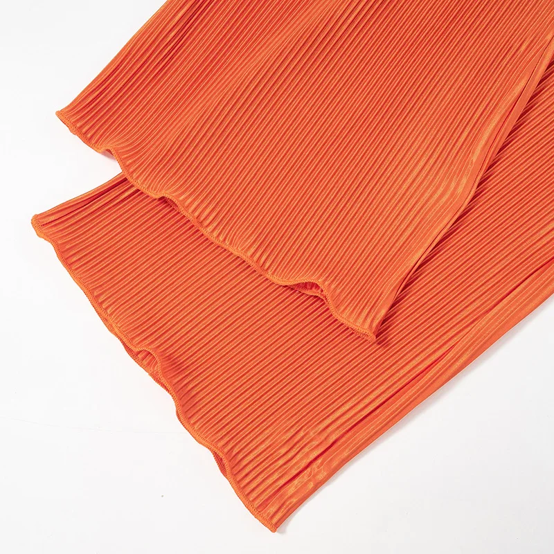 Pleated Set 2 Piece Woman Outfits Summer Solid Color Boho Flared Pants Set Women Two Piece Set Crop Top and Pants Pleated