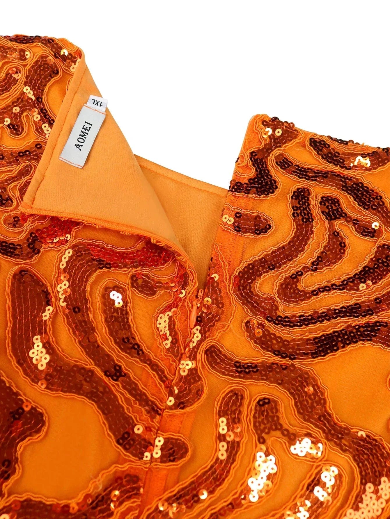 Plus Lantern Sleeves Cold Shoulder Slim Sequin Cocktail Dress Women