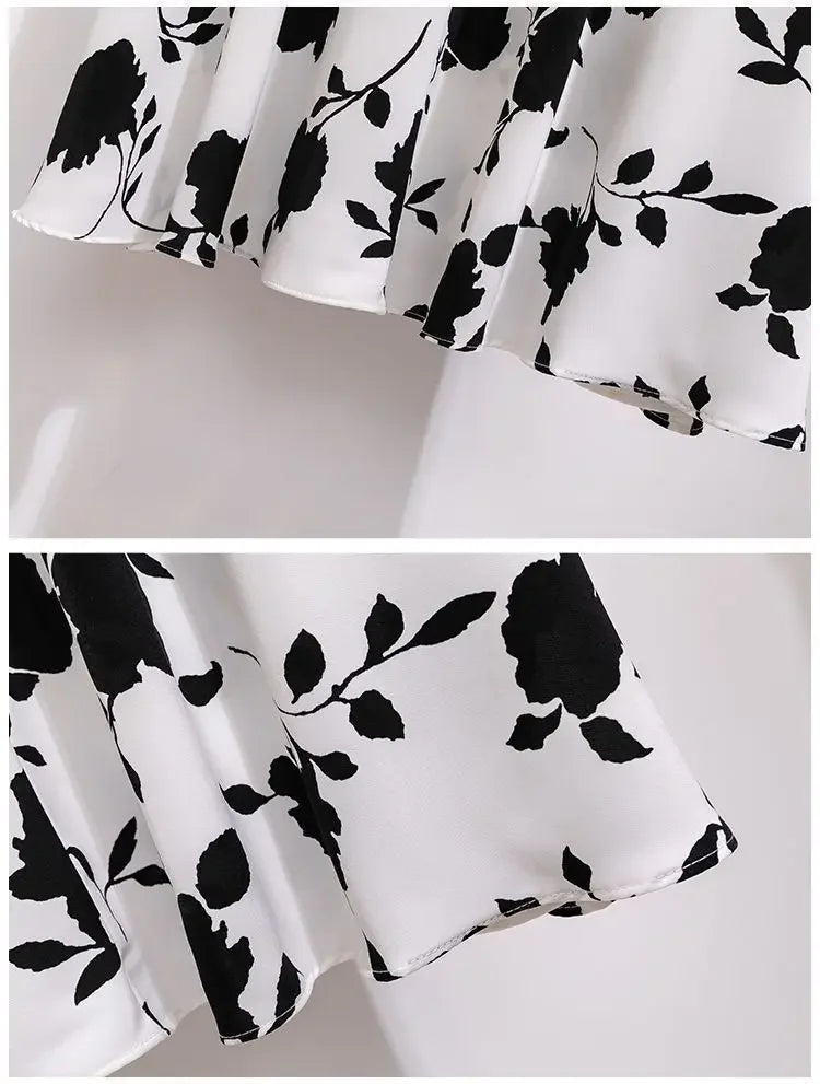 Plus Size High-Waisted Slimming Plus Size Women's Rose Skirt 2024 Summer Medium-Length Stylish BBQ Hip Covering Casual Dress