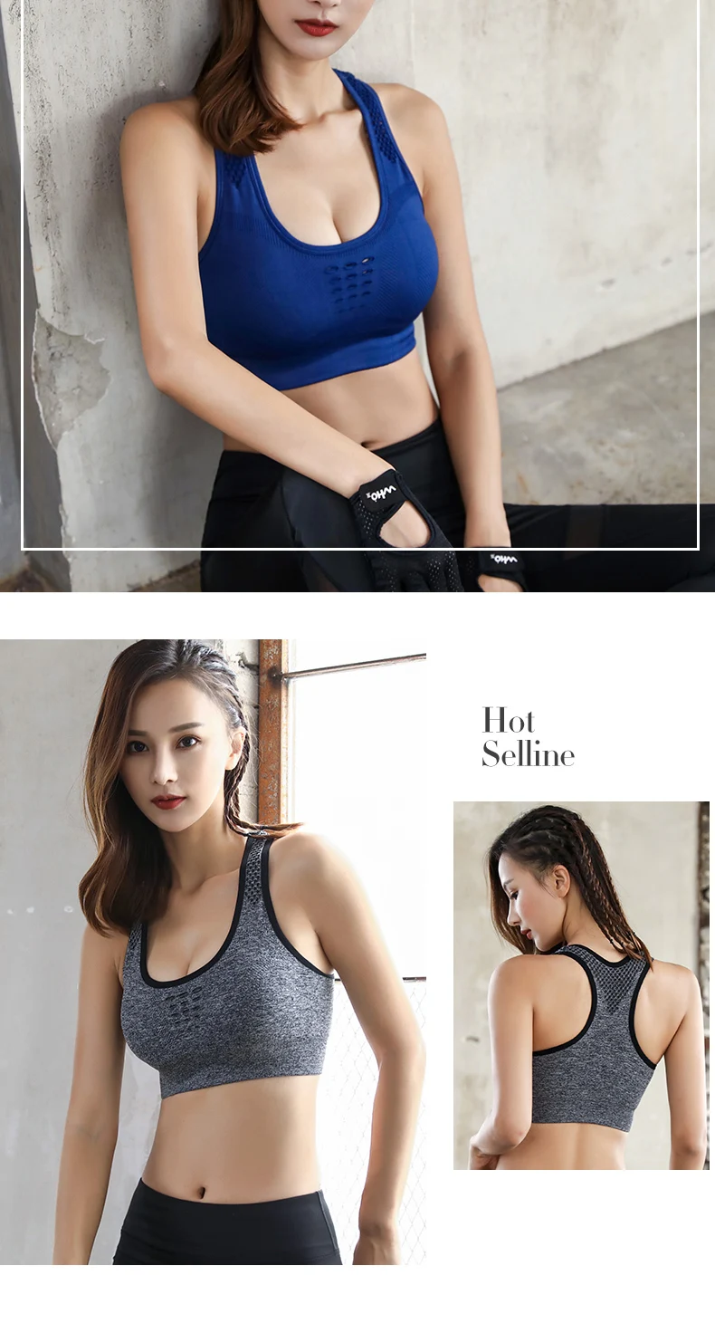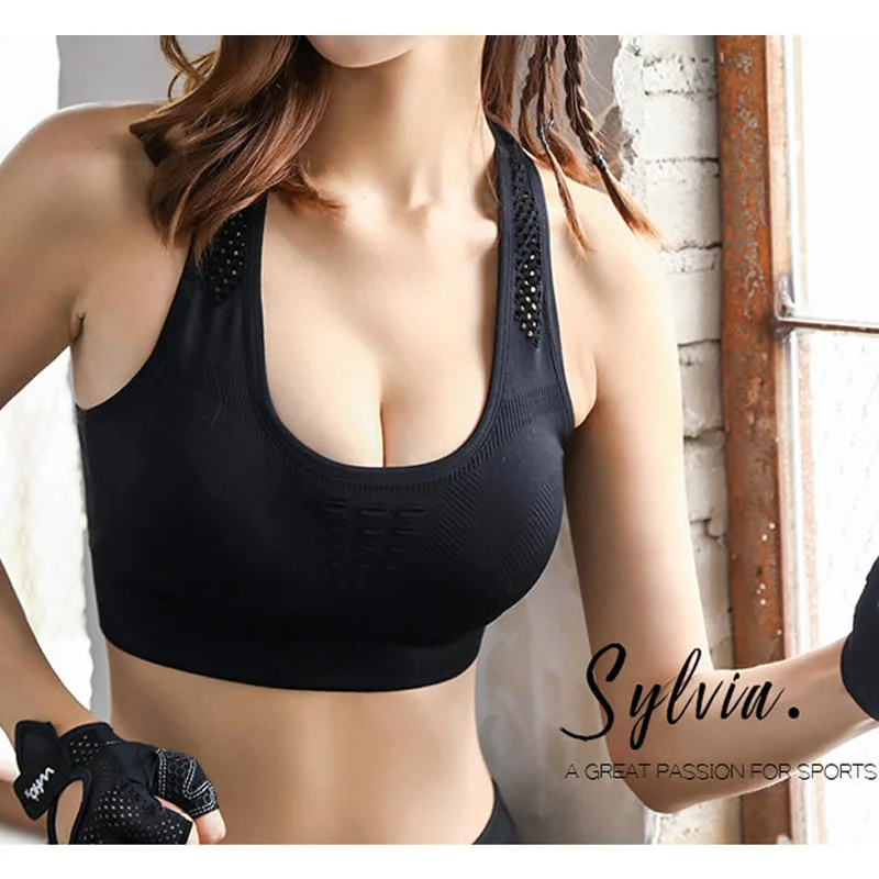 Plus Size Hollow Seamless Wireless Sujetador Deportivo Stretch Fitness Gym Yoga Bra High Impact Mesh Sports Bras For Womens