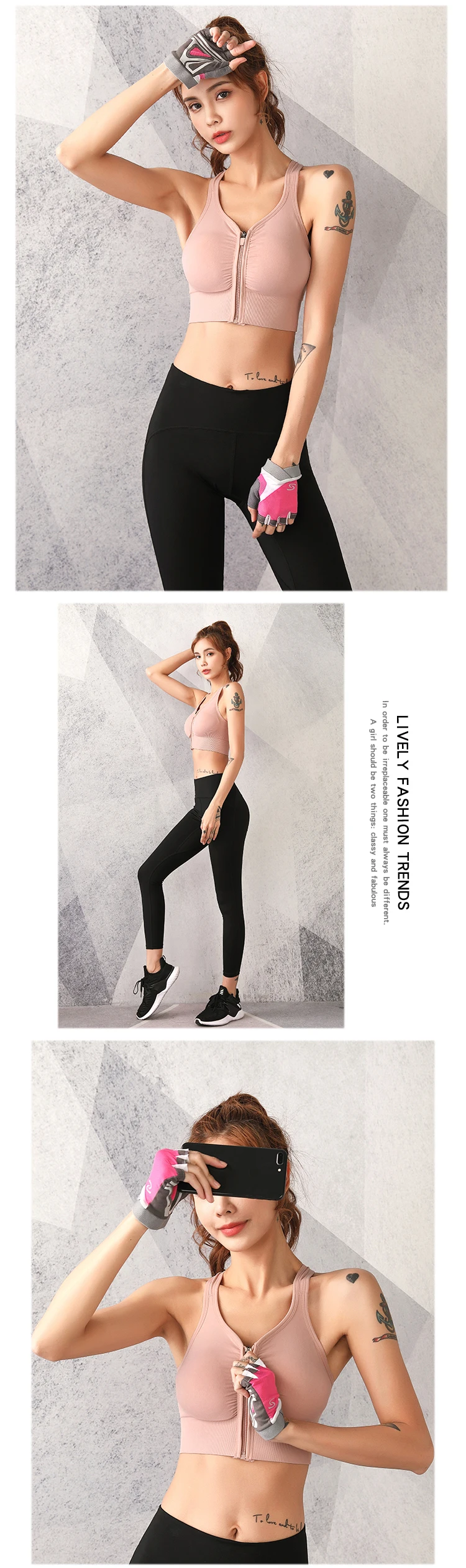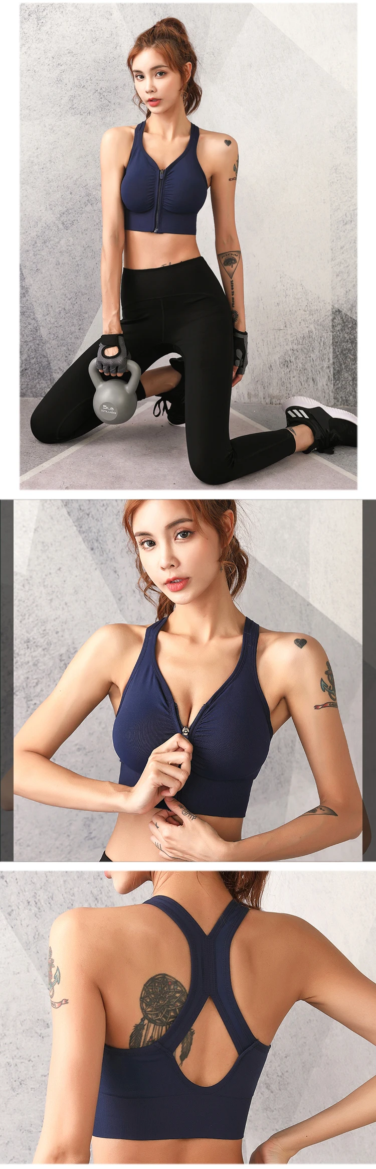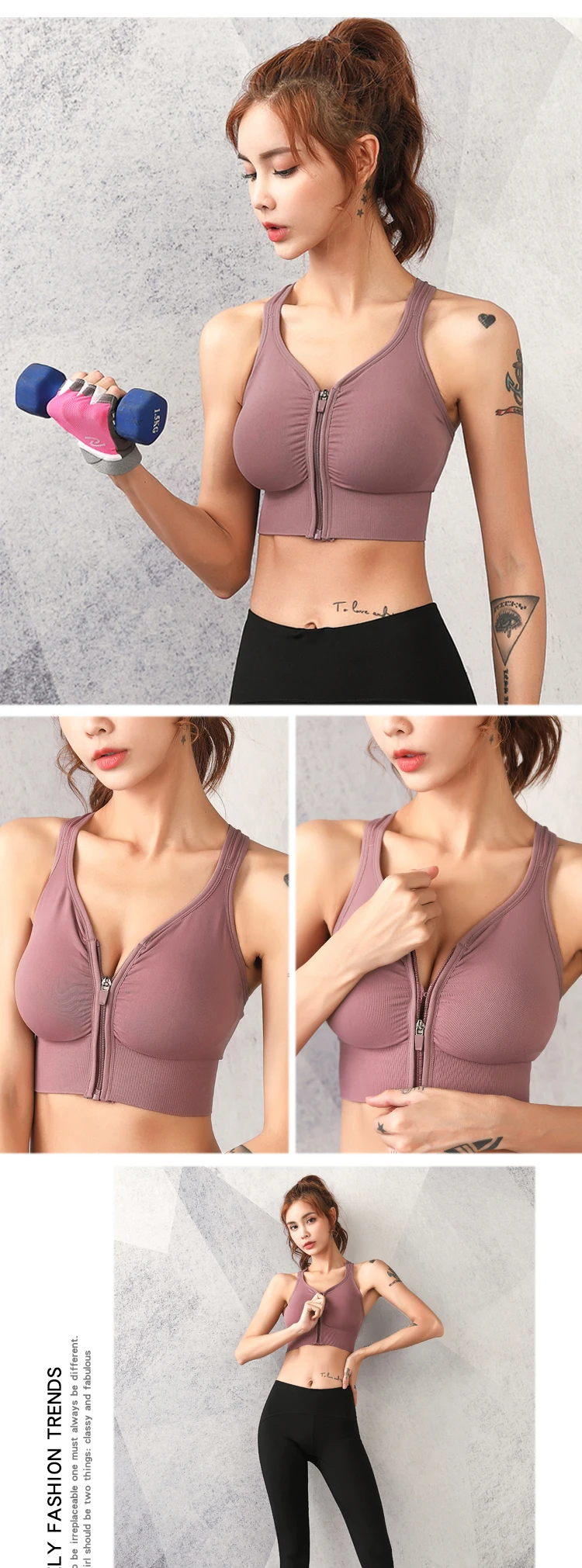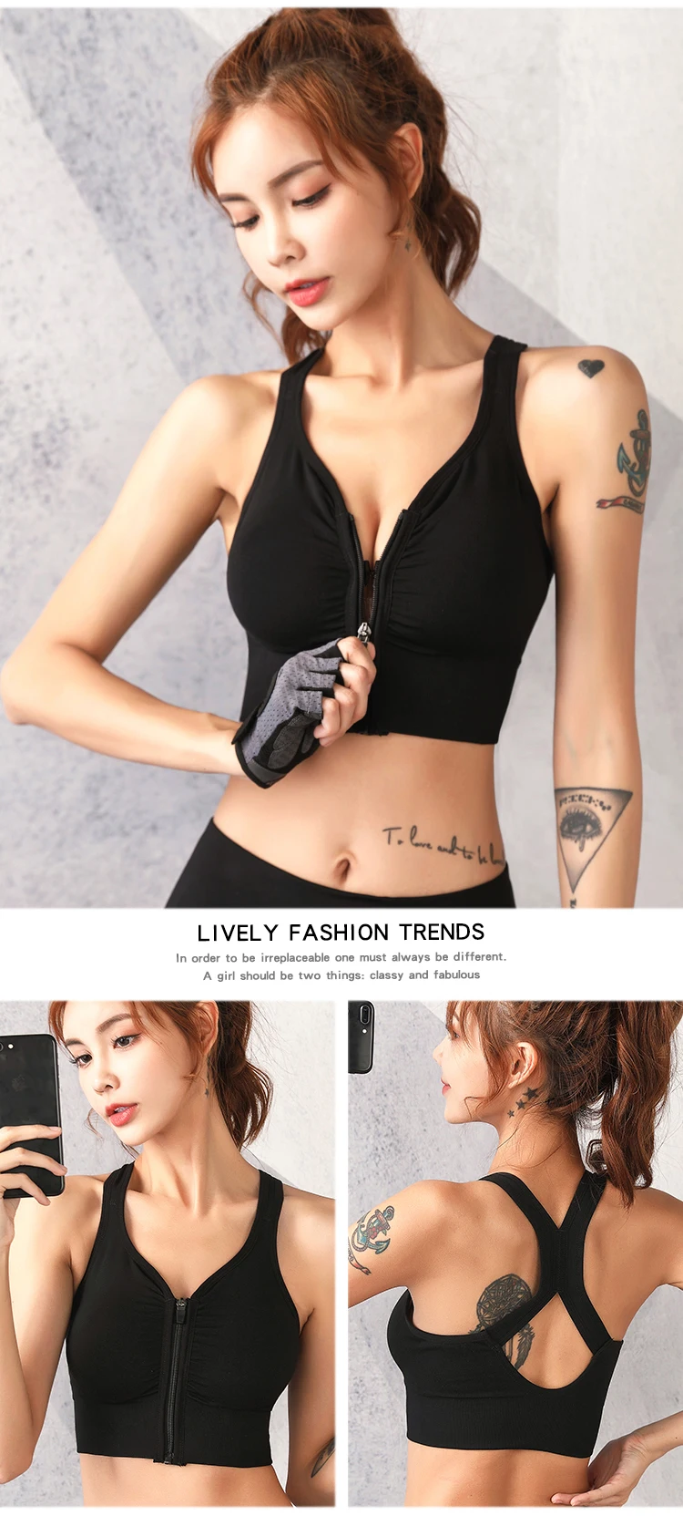 Plus Size Stretch Fit Wireless Sujetador Deportivo Running Workout Front Zipper Yoga Bra Seamless Sports Bra Crop Top For Womens