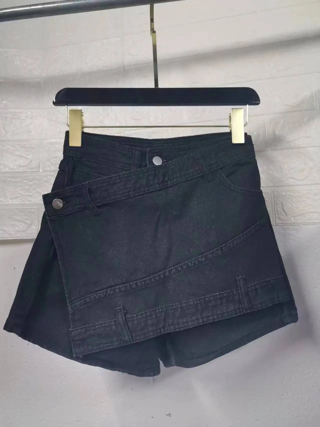Plus Size Women's A- line High Waist Irregular Wide-leg Pants Women's Summer Korean Style Slimming Denim Skirt Pants Shorts