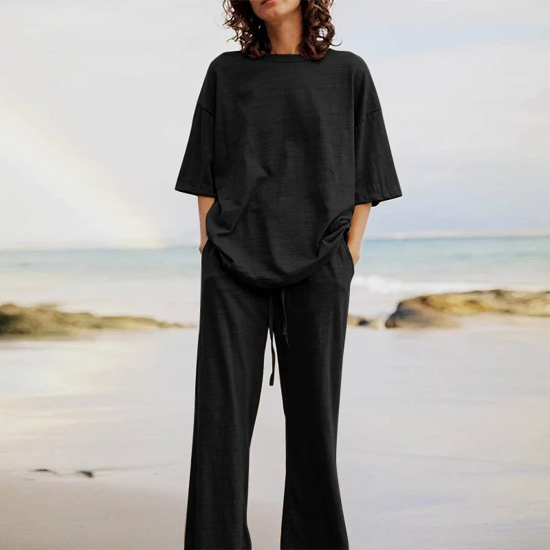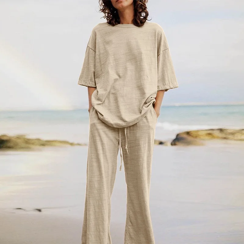 plus size women's clothes ladies 2 set t shirt pants loose fashion casual cotton linen suit top women two piece sets