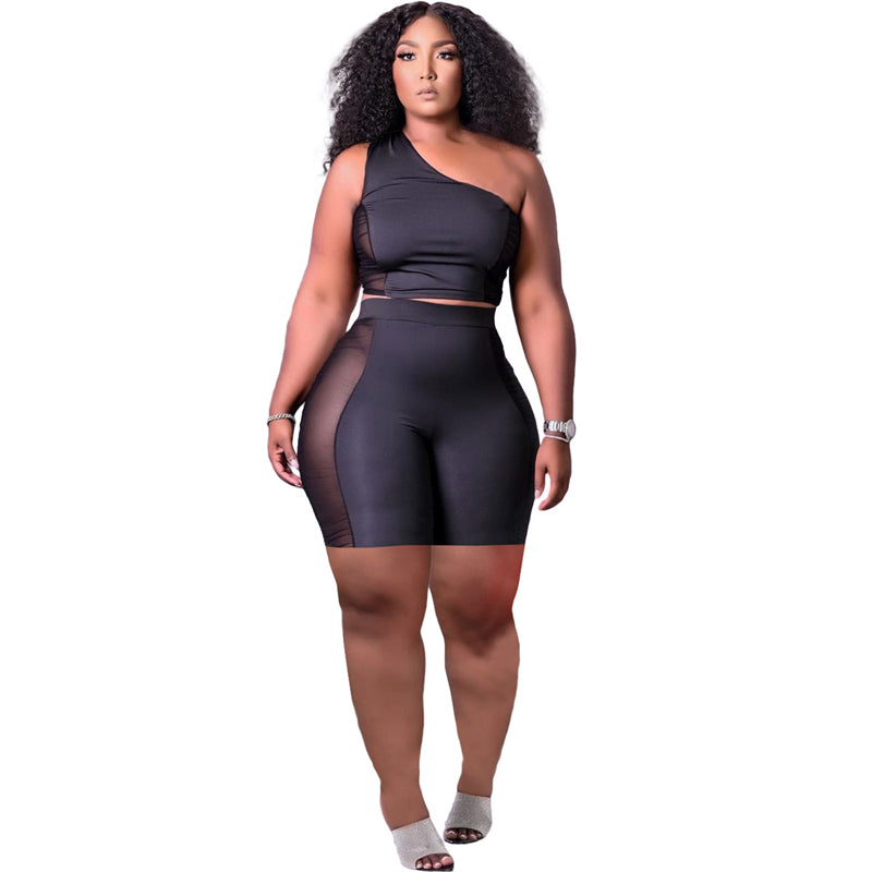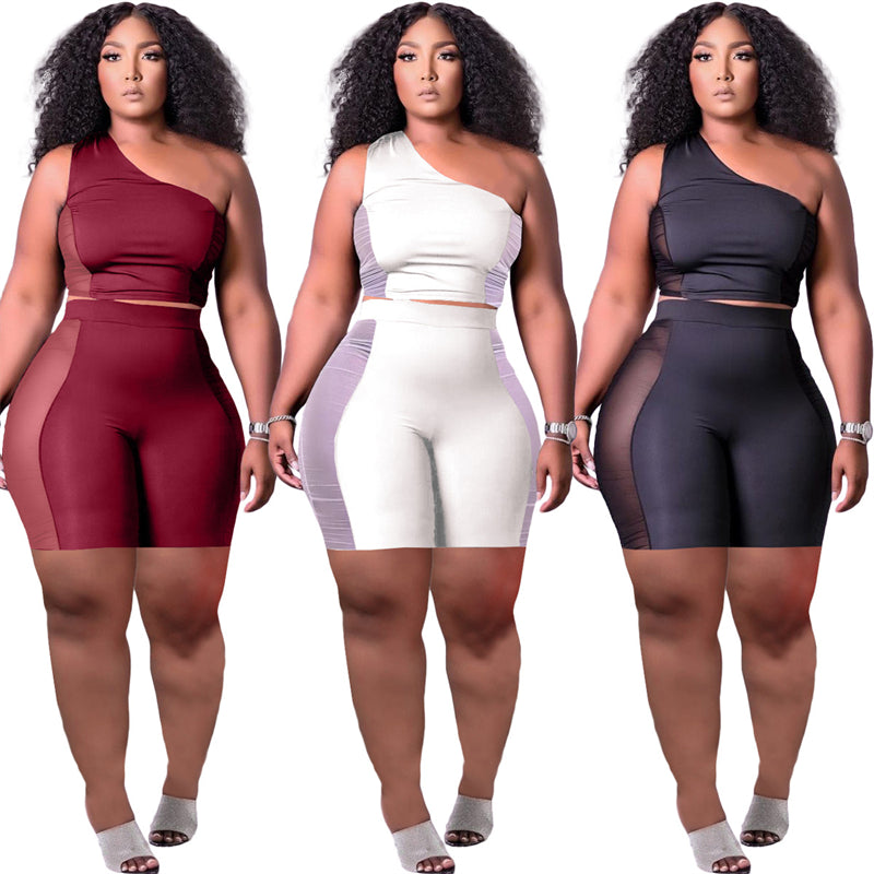 plus size women's trending clothing summer 2023 sleeveless one shoulder crop tank top 2 two piece shorts set women for women