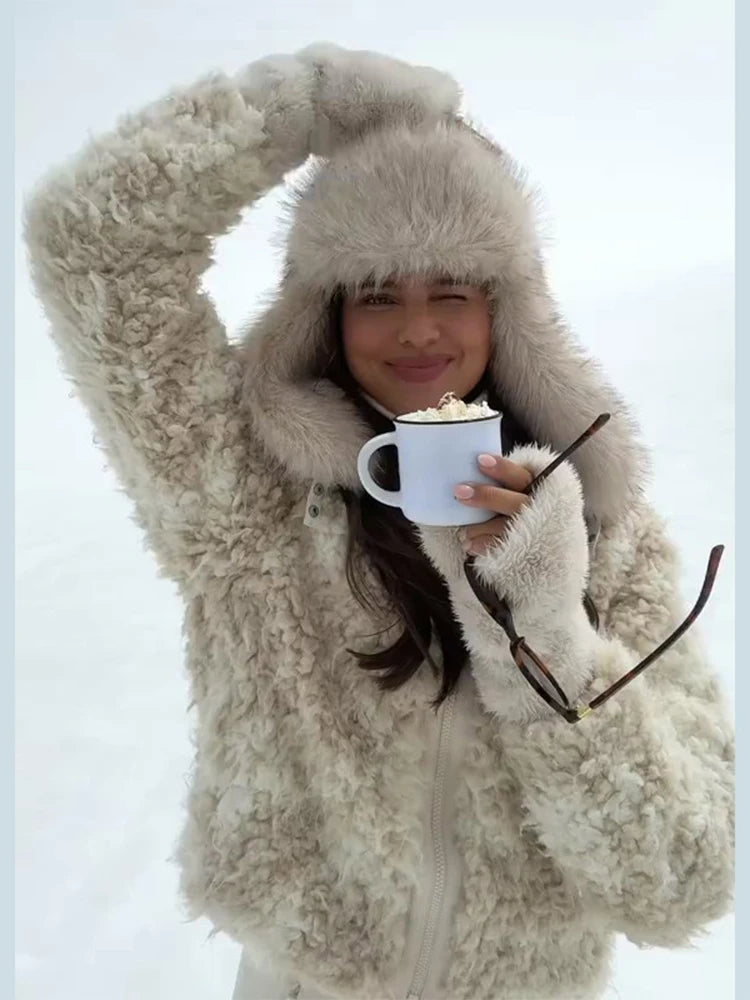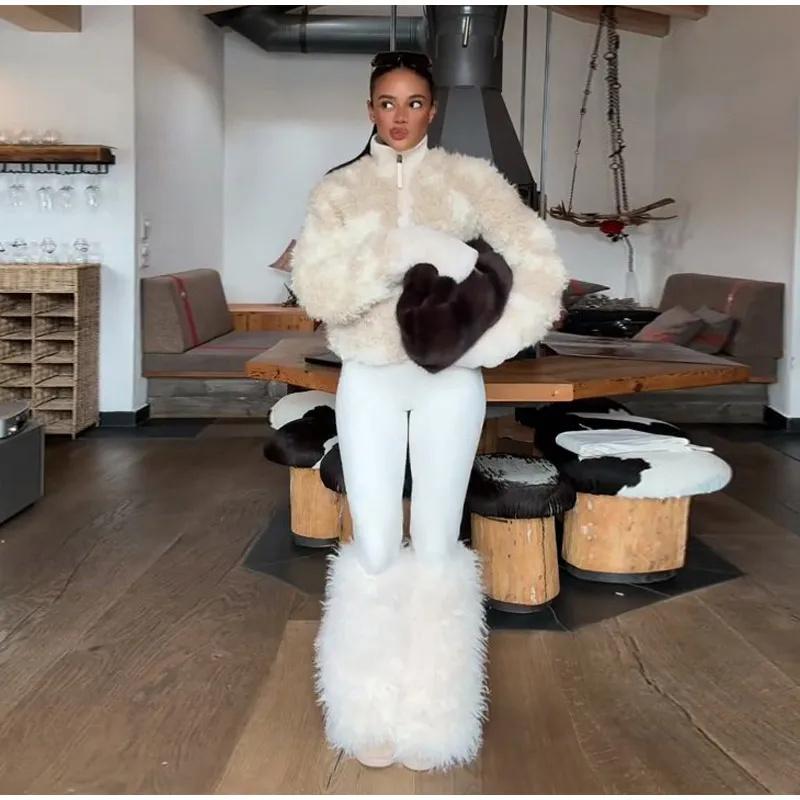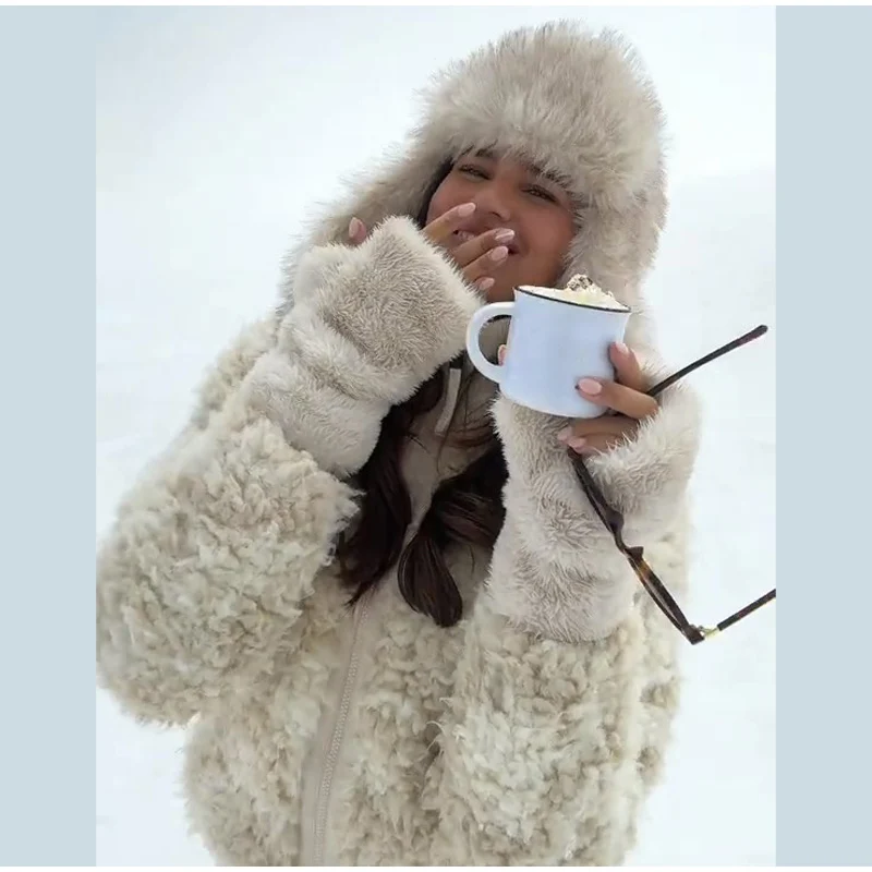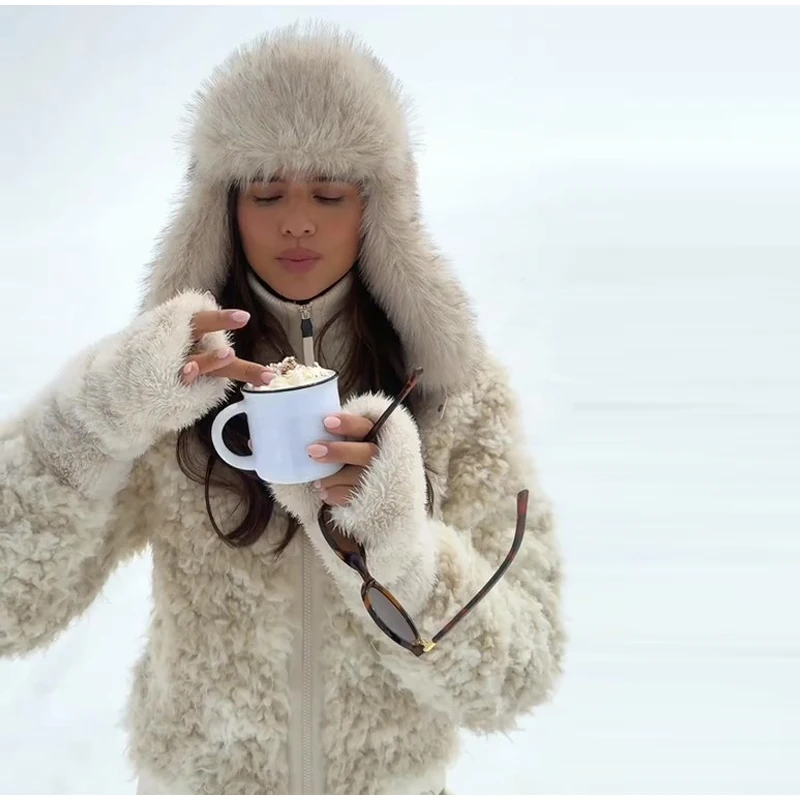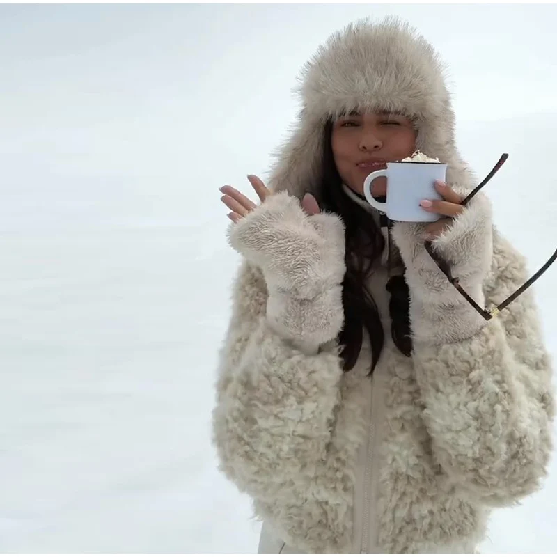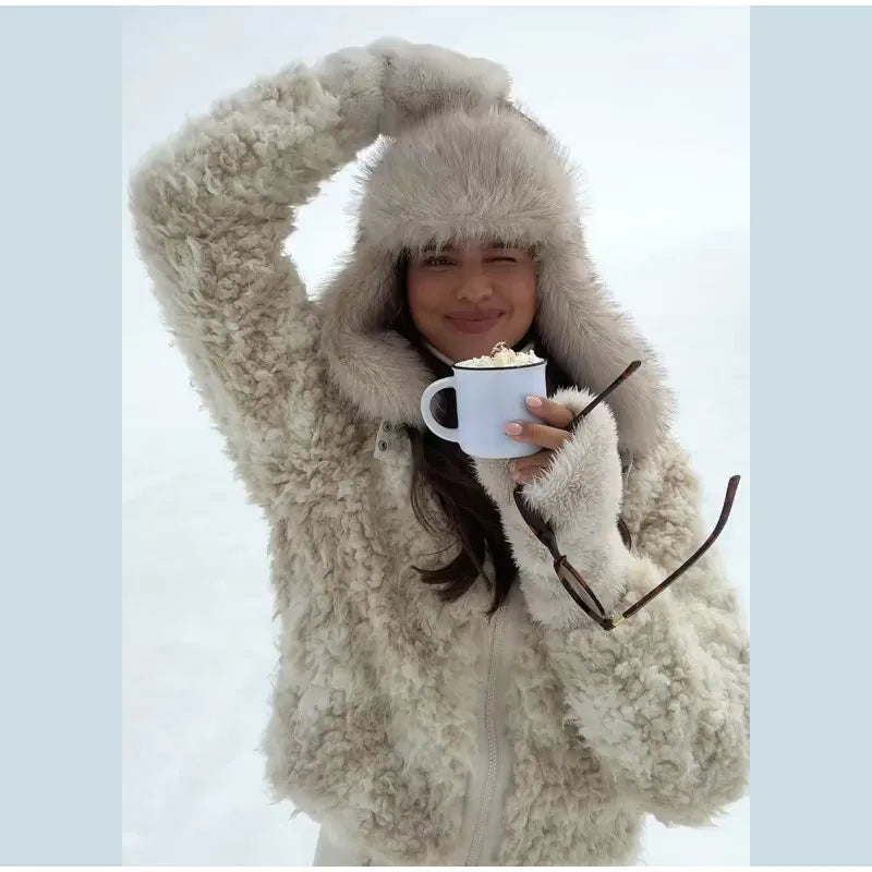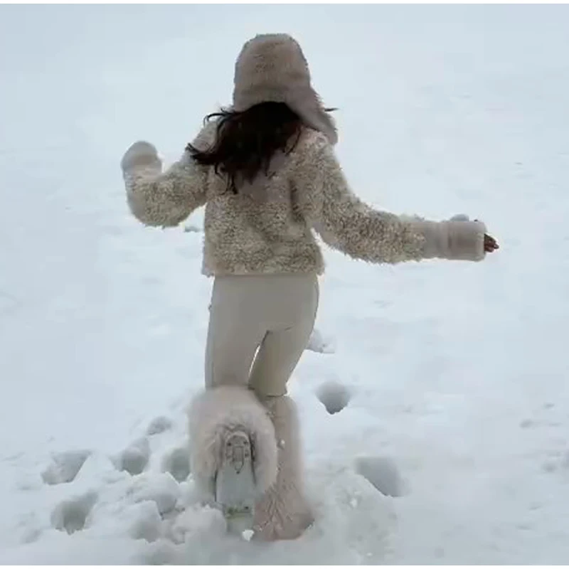 - 🧤 Coordinated Furry Accessories: Matching shearling gloves and hat (as seen) create a cohesive, glamorous winter look.
