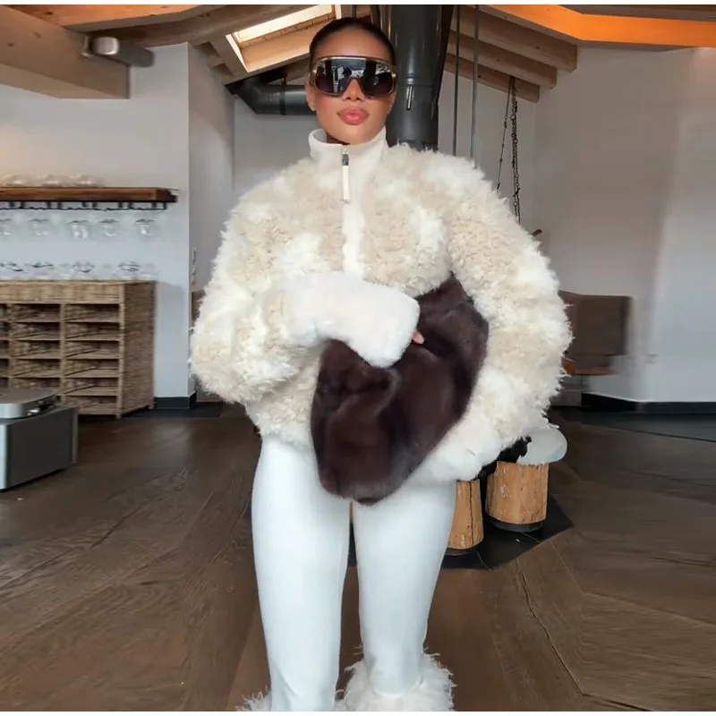 Plush Shearling Women 's Coats Stand Collar Full Sleeve Zipper Furry Jackets Female 2025 New Autumn Winter Woman Jacket Outwears