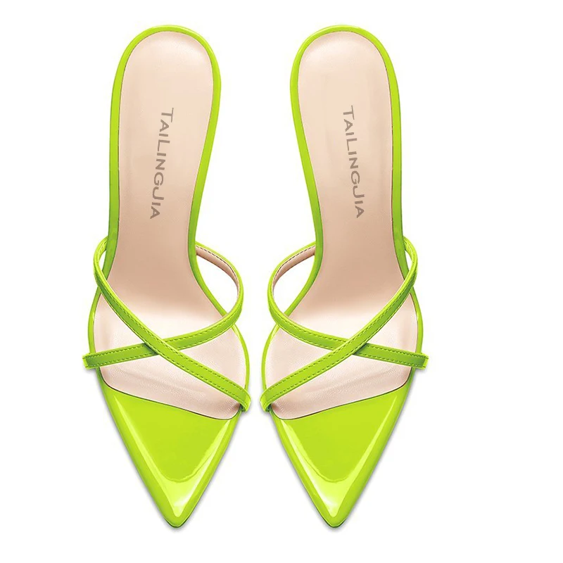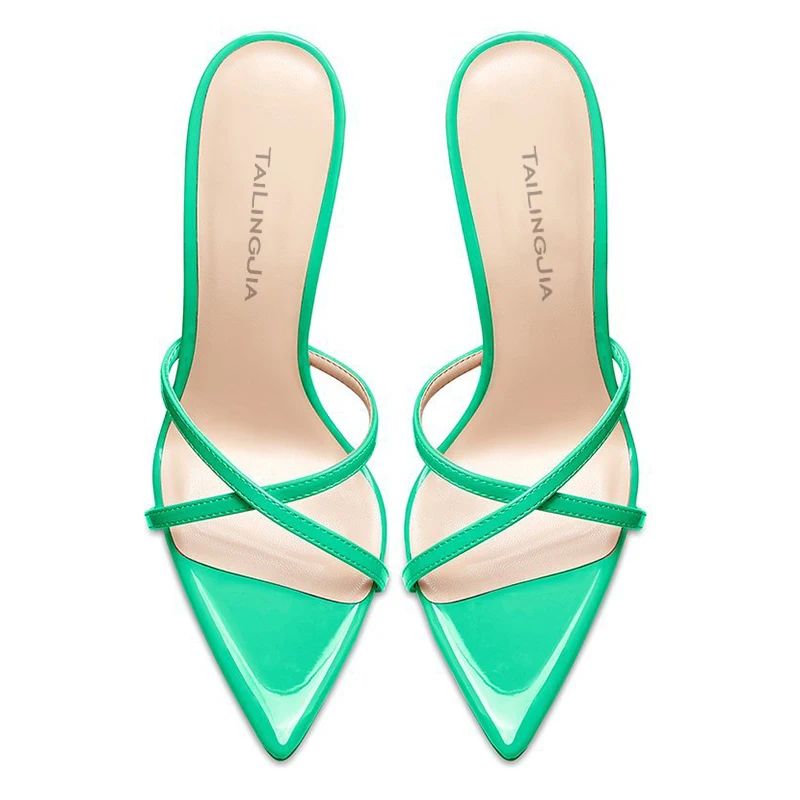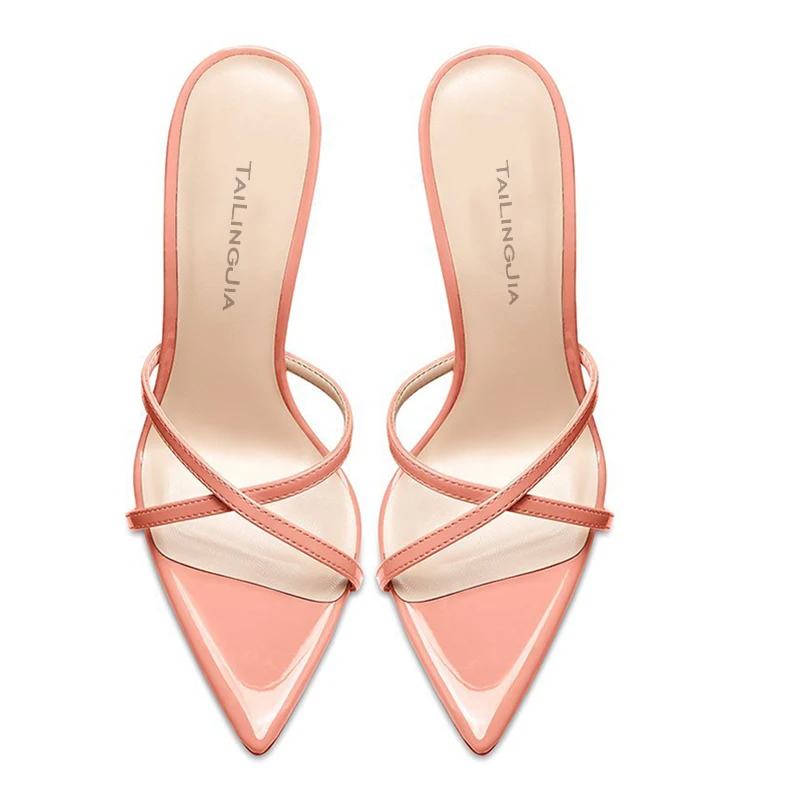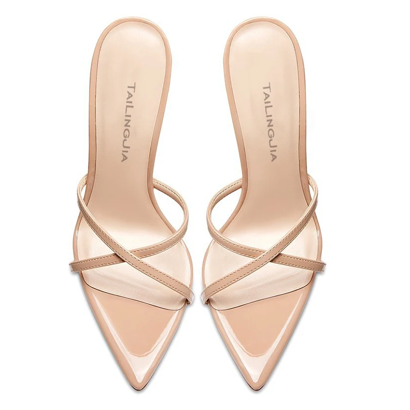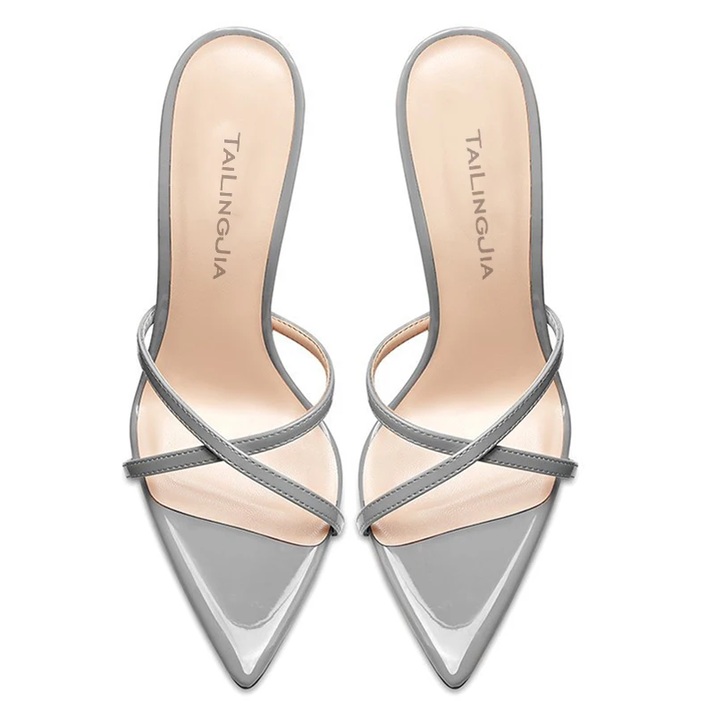 Pointed toe Stiletto High Heels Strappy Mules Large Size Heeled Sandals for Women