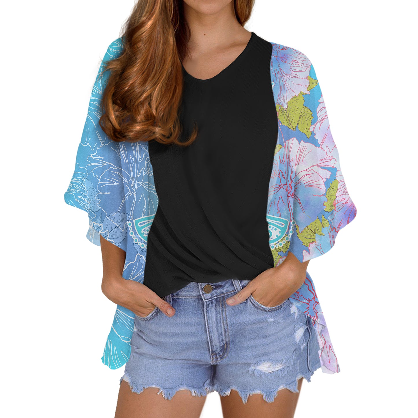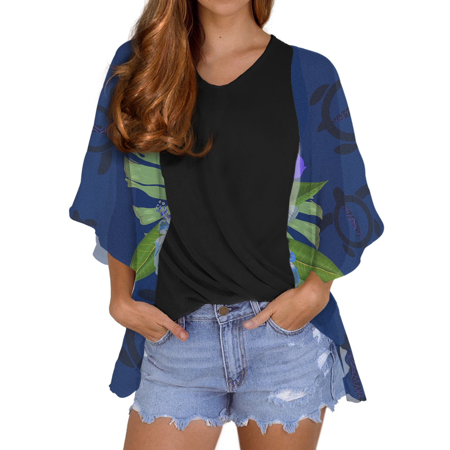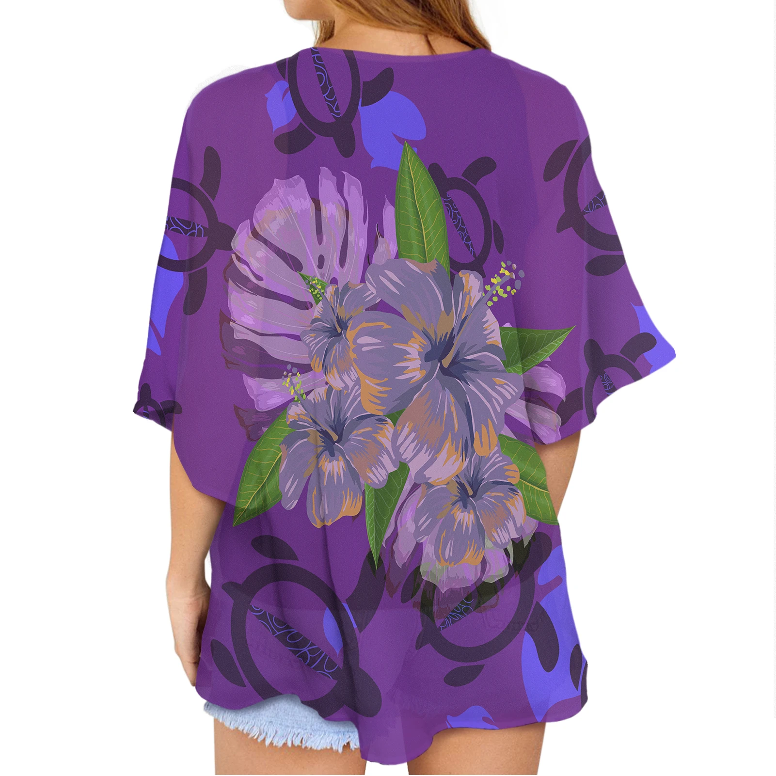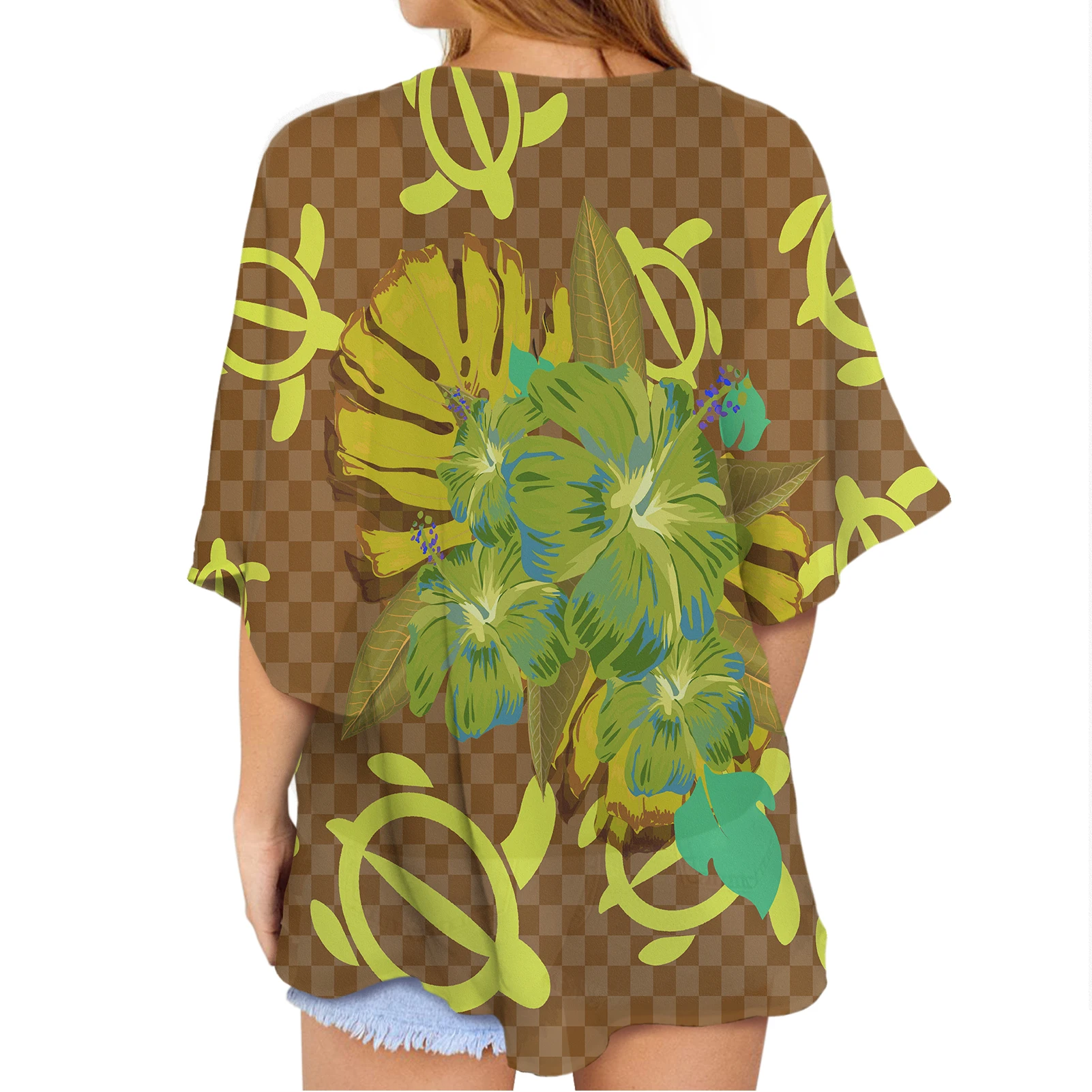 Polynesian Hibiscus Flower Printed Custom LOGO Wholesale Chiffon Plus Size Hot Tops Women Cheap Cardigans Women Bloudses Elegant