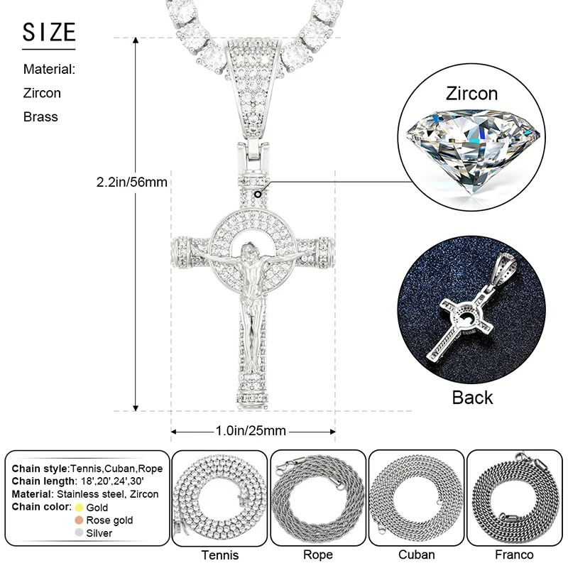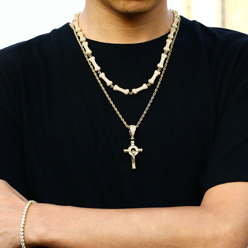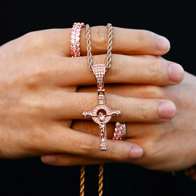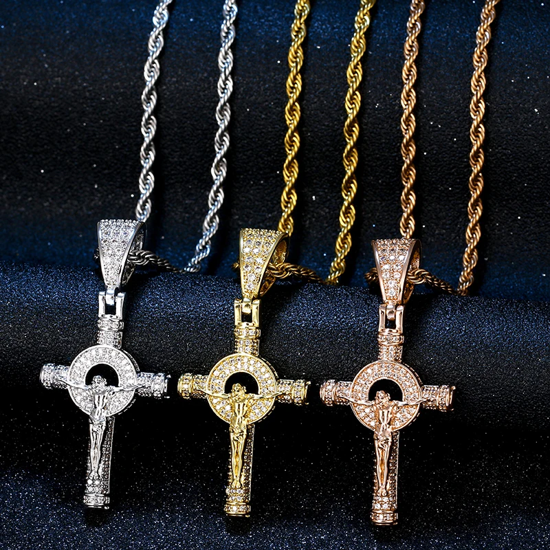 Popular Hip Hop Cross Pendant Iced Out Crucifix Jesus Pendant 18K Gold Plated Charm Necklace