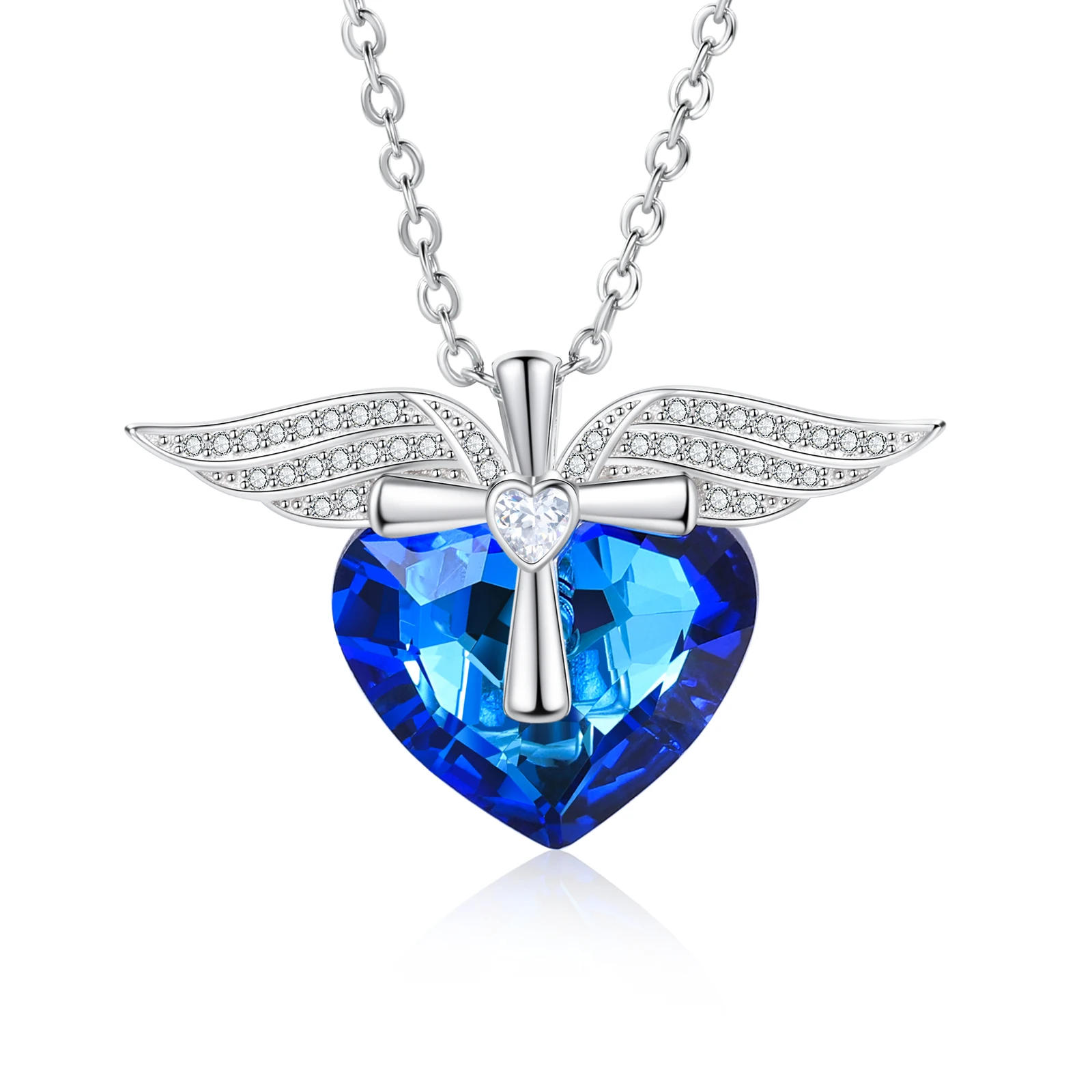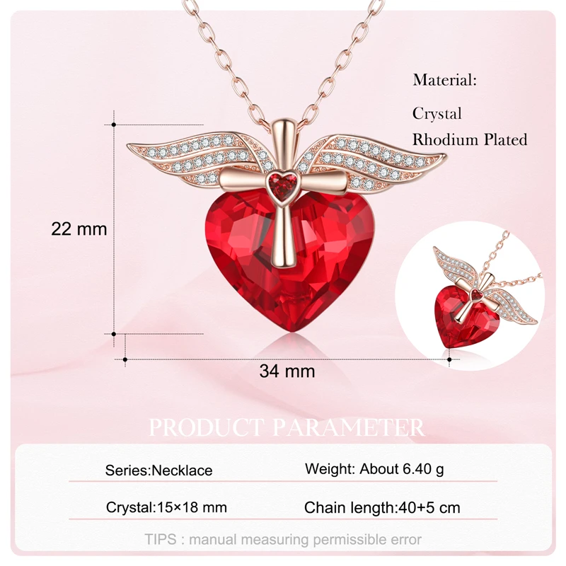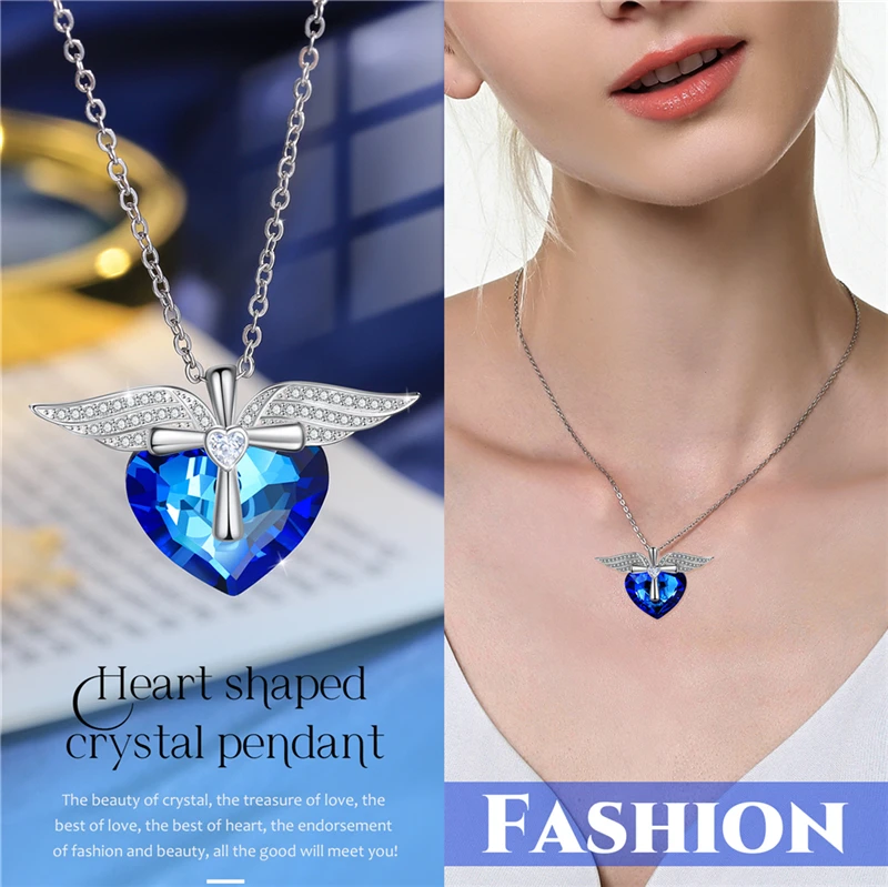 Popular Jewelry Crystal Necklace Pendant Kolye Fashion Angel Wing Necklace Heart Necklace
