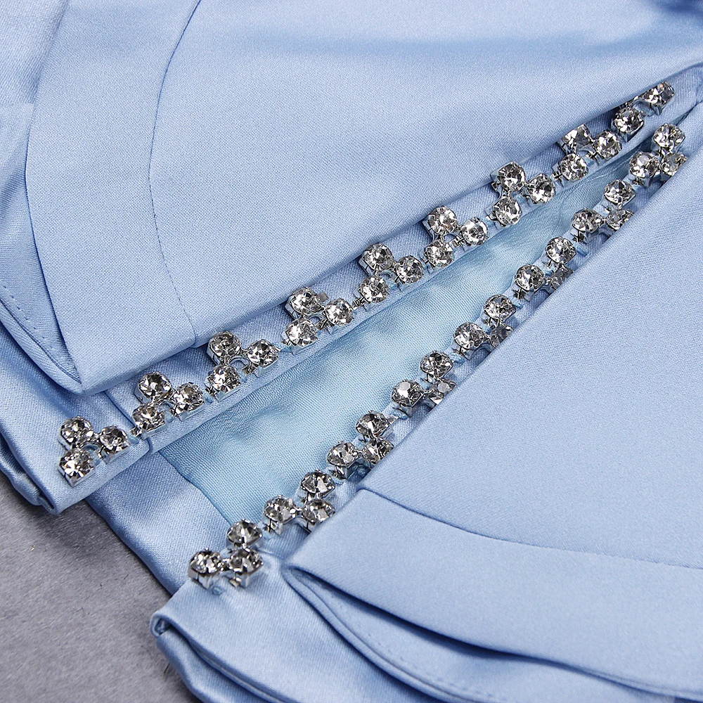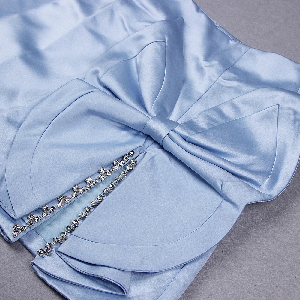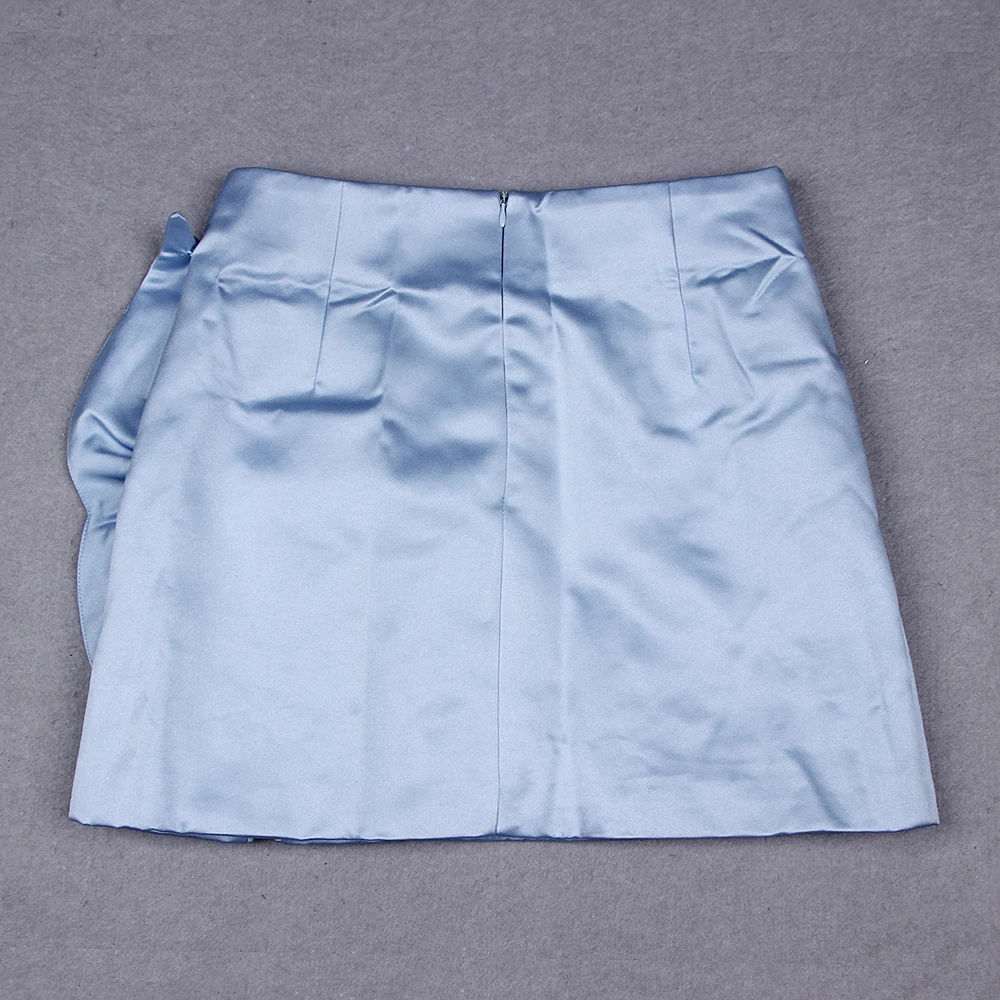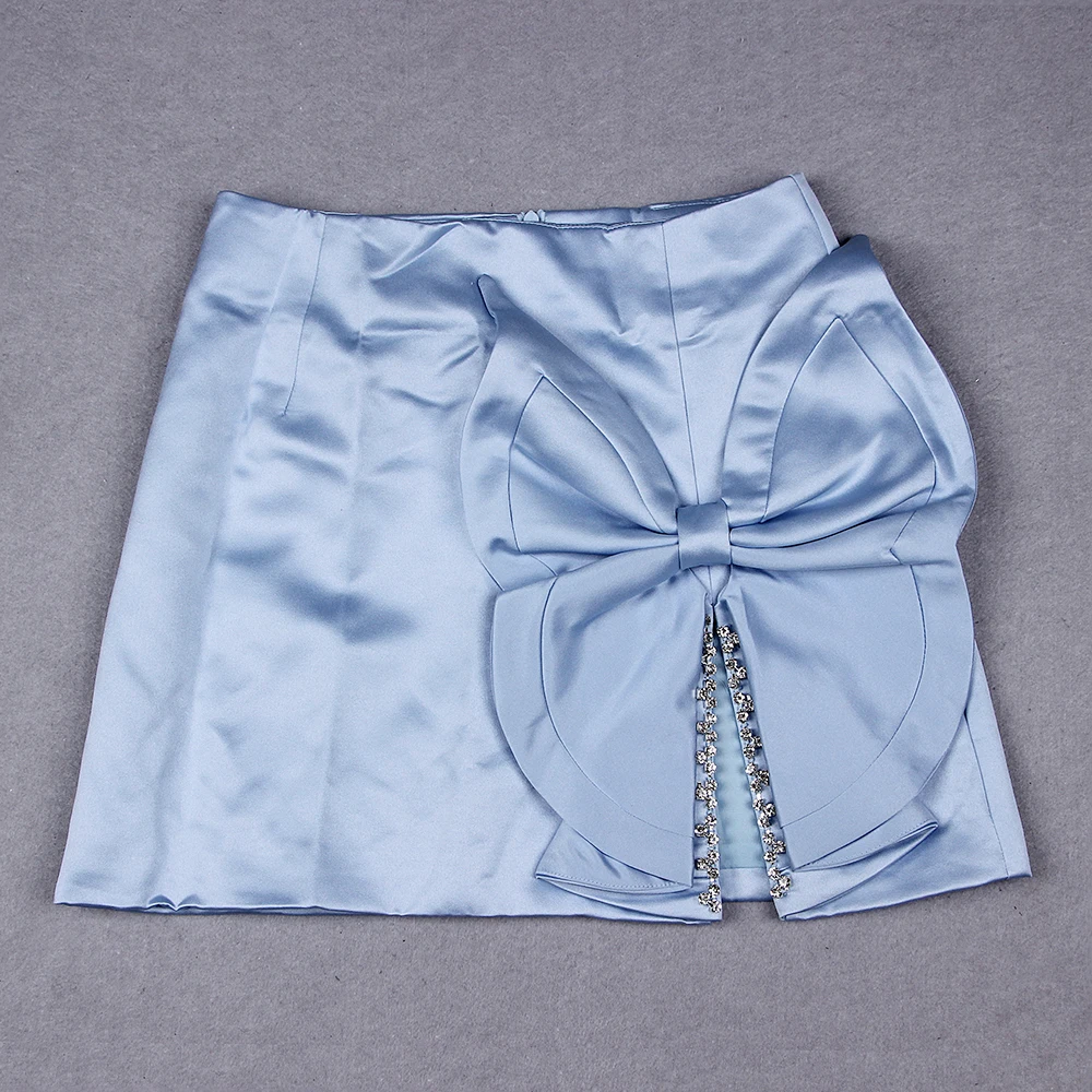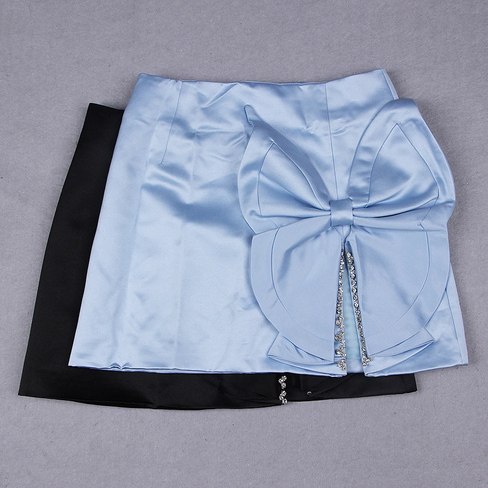 Popular Sky Blue Black Micro Bow-knot Decoration Satin Split Womens Mini Skirt