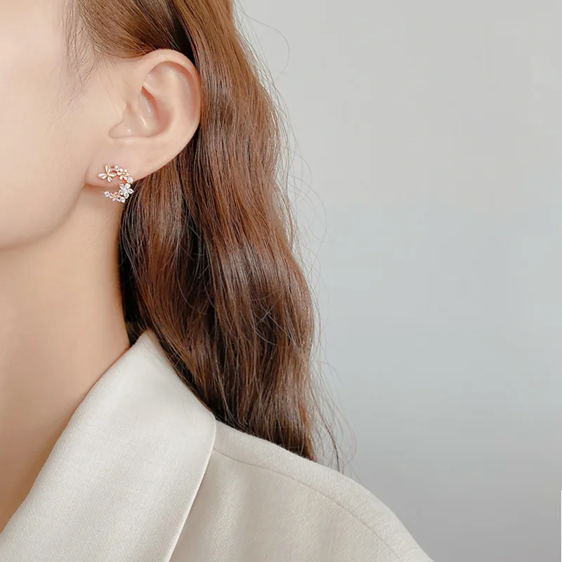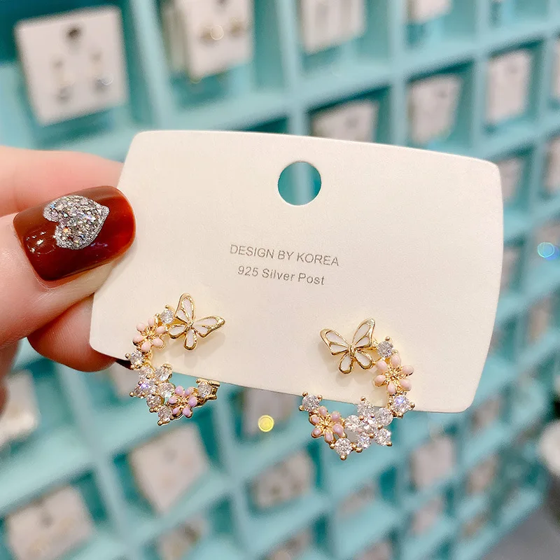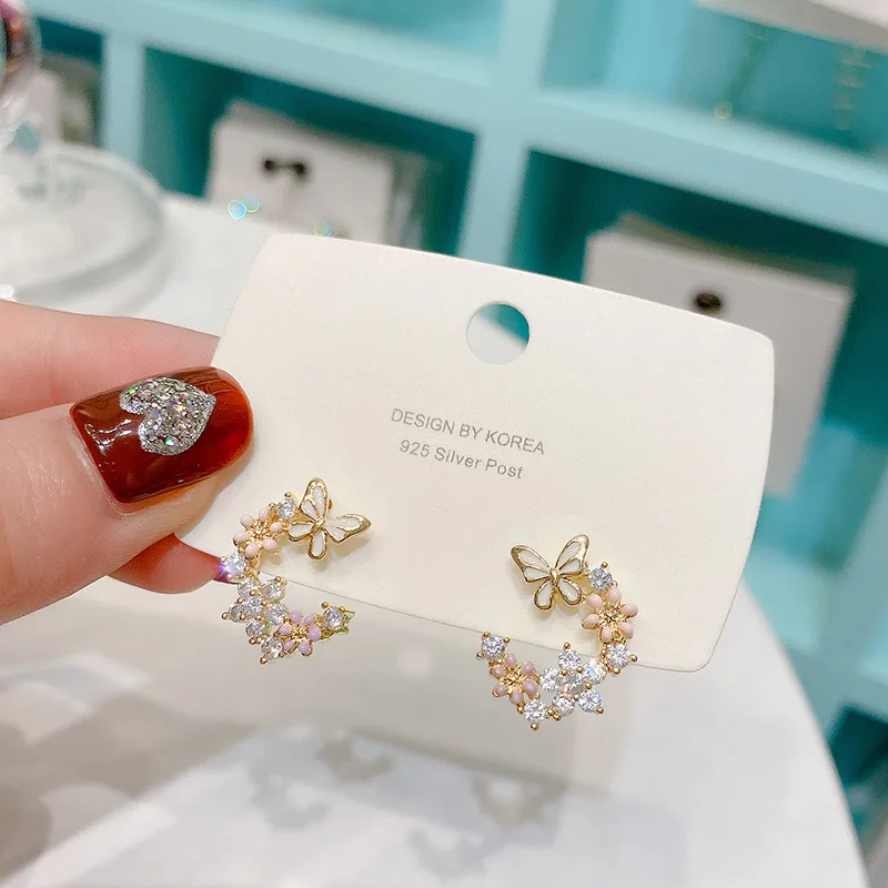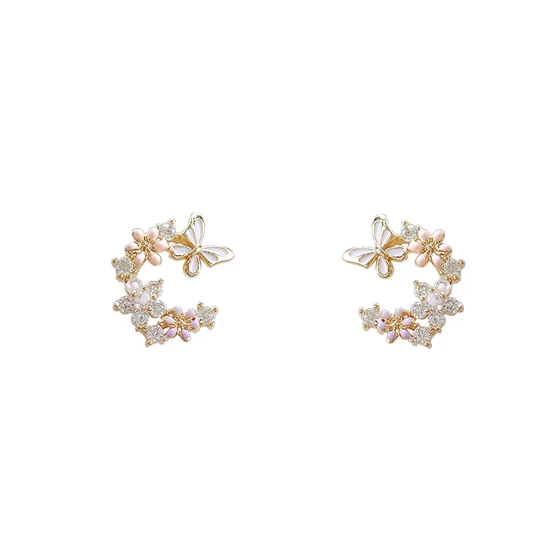 Pretty Butterfly Colorful Flowers White Peal Cubic Zirconia Crystal Jewelry for Women Earring