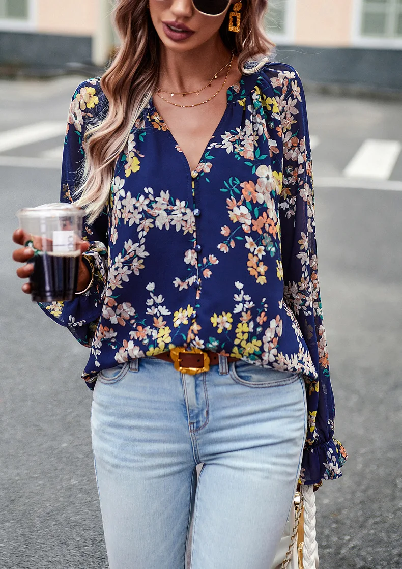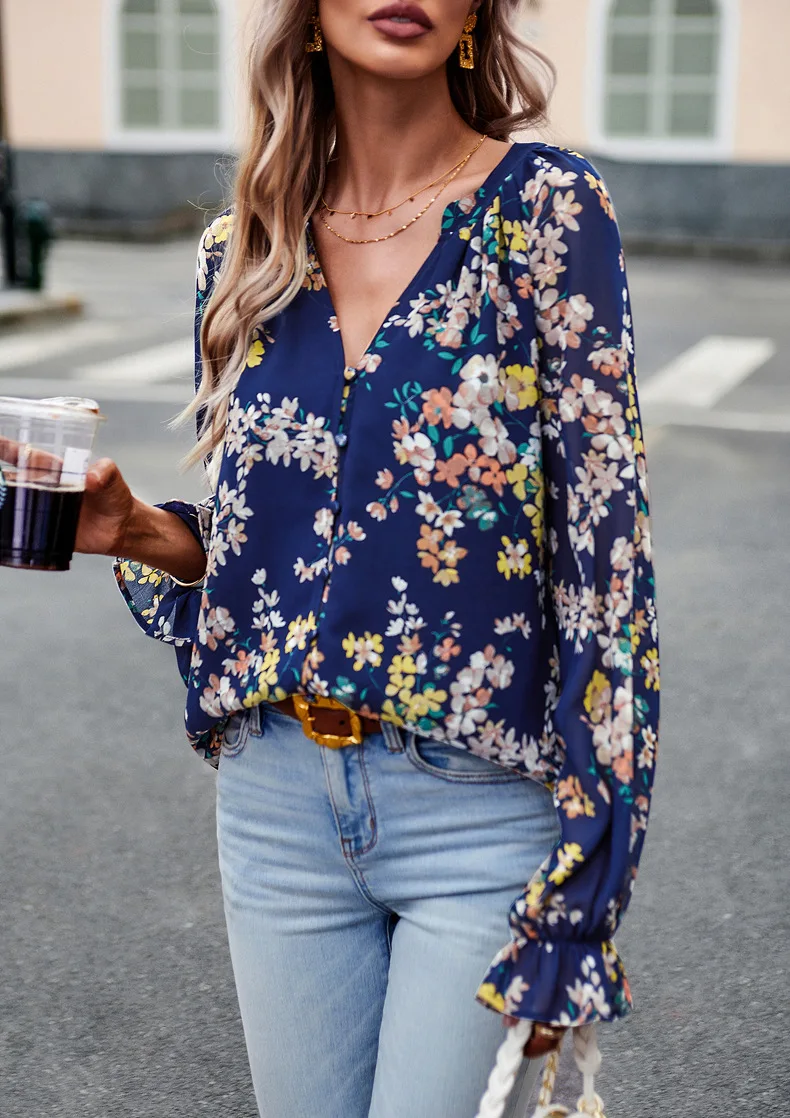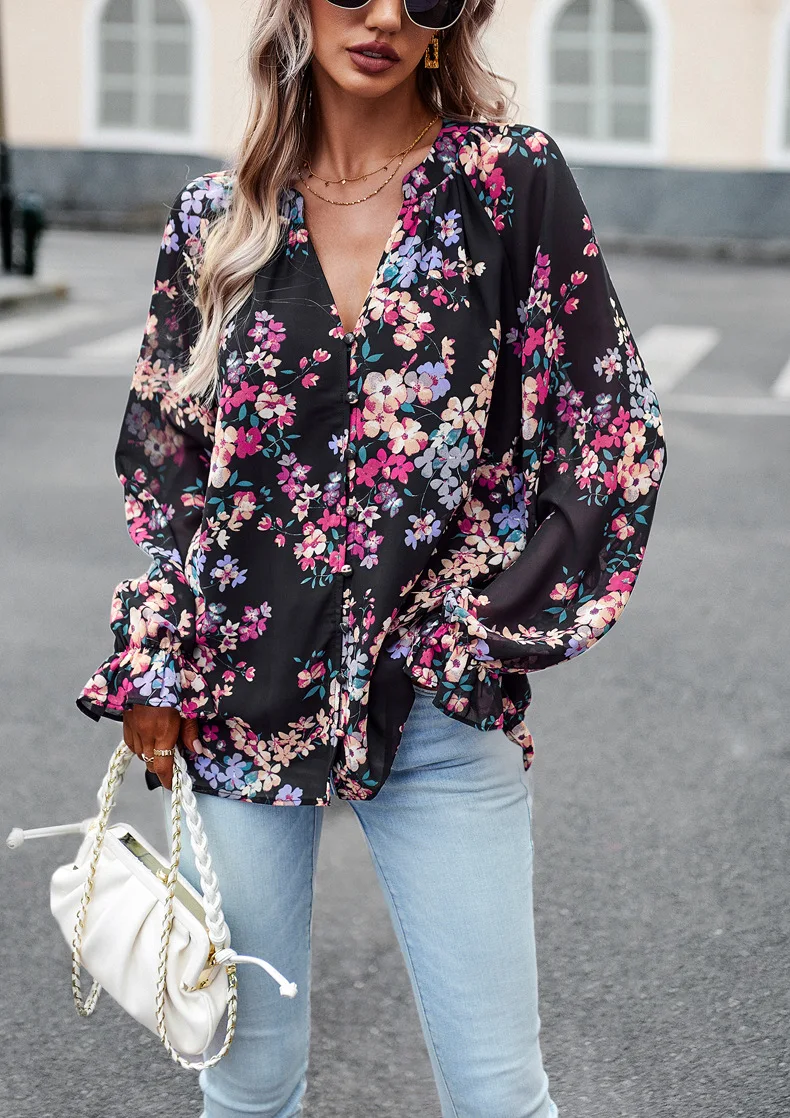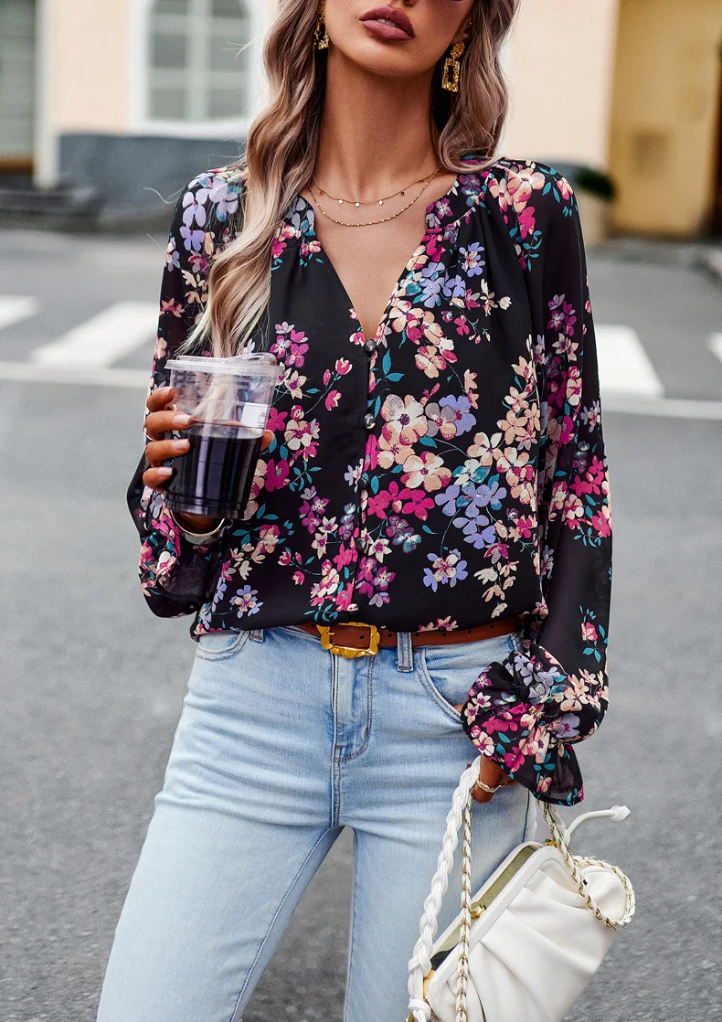PRETTY STEPS Long sleeve shirt woman 2023 autumn temperament elegant floral shirt