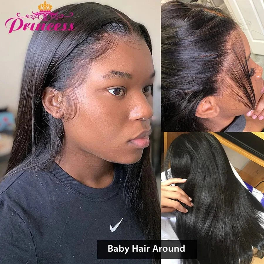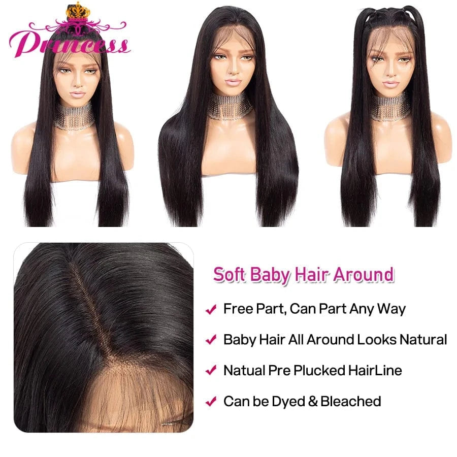 Princess 13x4/13x6 HD Transparent Lace Front Human Hair Wigs PrePlucked 4x4 Closure Wig Brazilian Straight Lace Frontal Wig