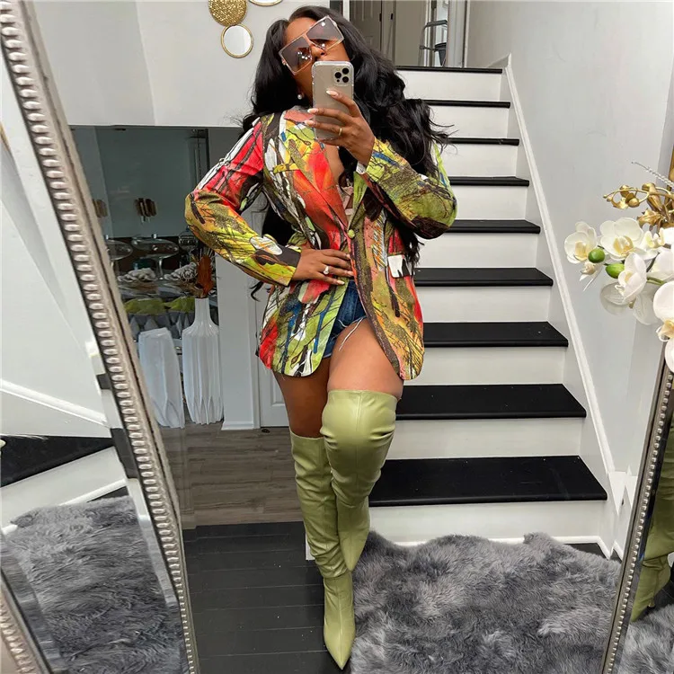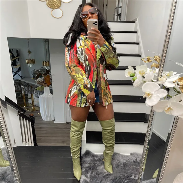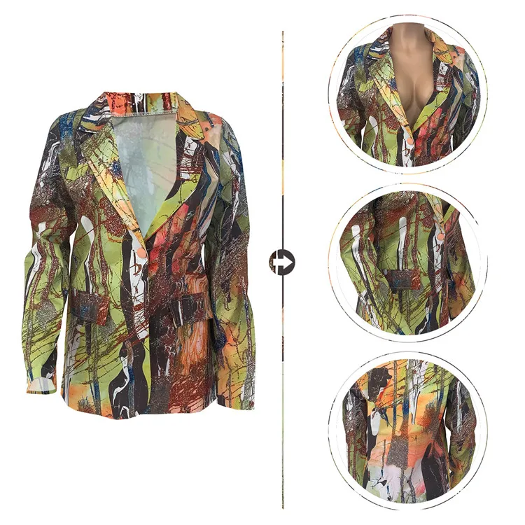 Print Colorblock Blazer For Female Lapel Long Sleeve Casual Coats Women 2023 Autumn Korean Fashion Clothing