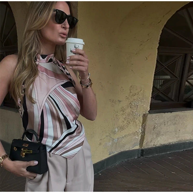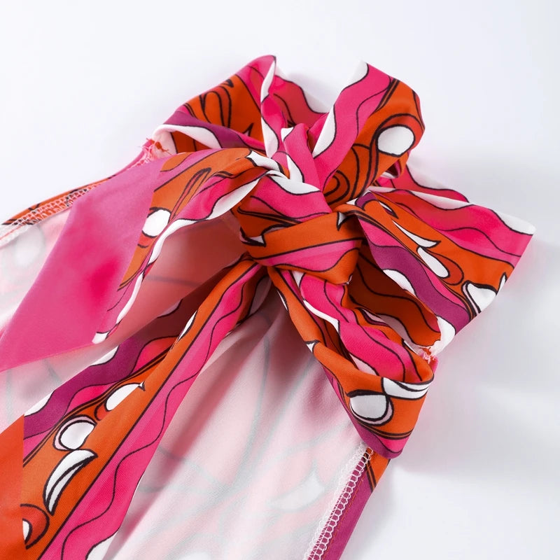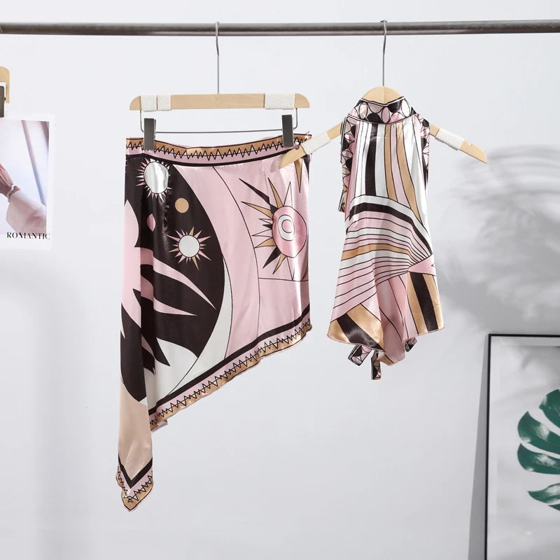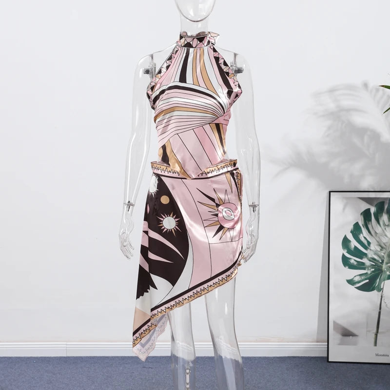 Print Irregular Women's Short Skirt Suits Halter Lace Up Backless Sleeveless Tank Top High Waist Sets Summer Lady Beach Outfits