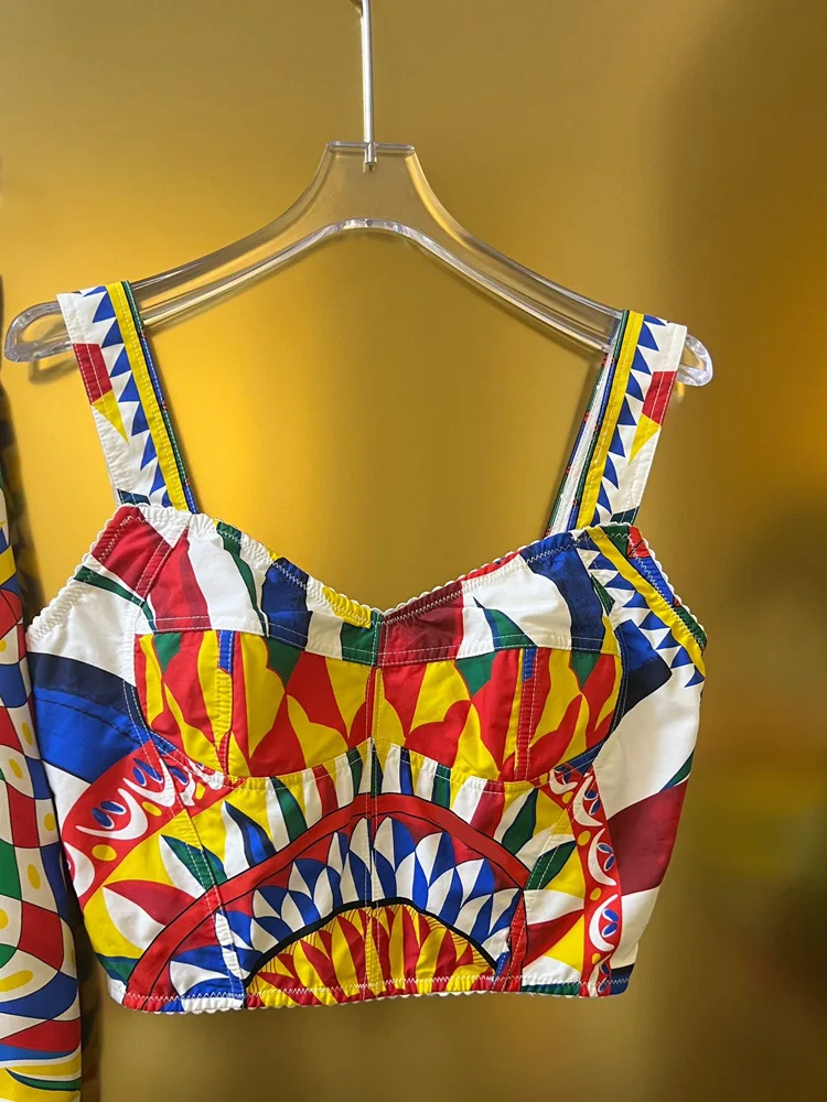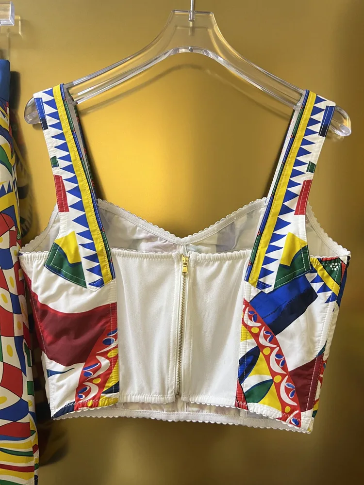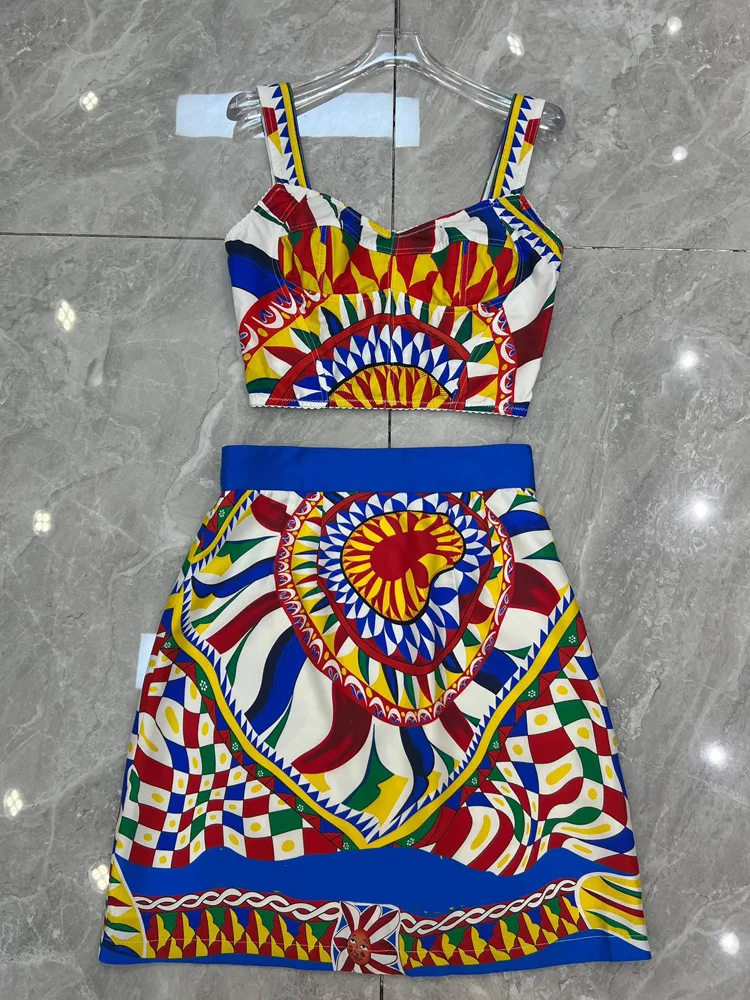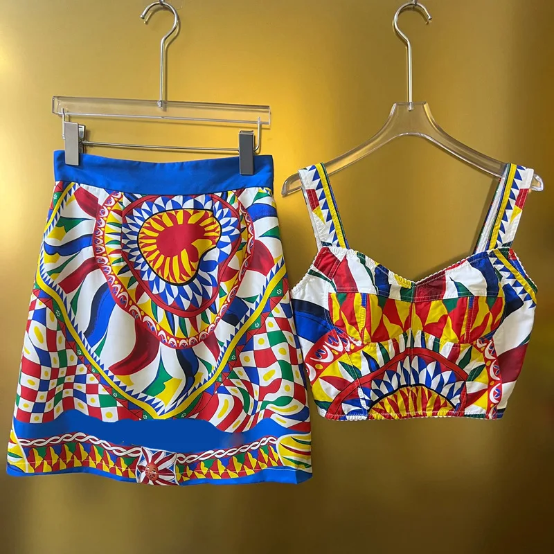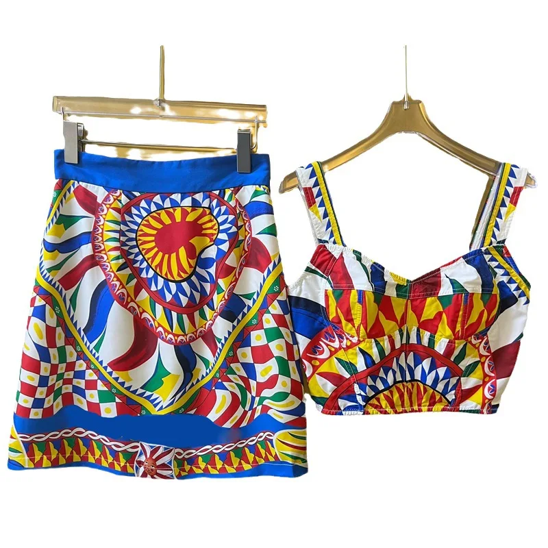 Print Sleeveless Halter Tops Skirt Set Casual Dresses 2023 Autumn Women's Clothing New Design Personality Sexy Elegant Dress