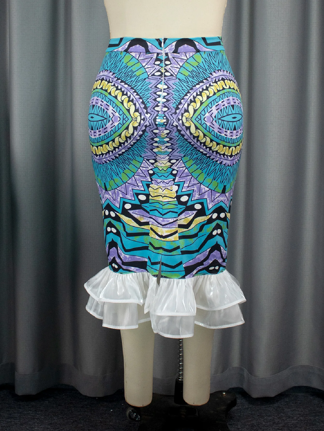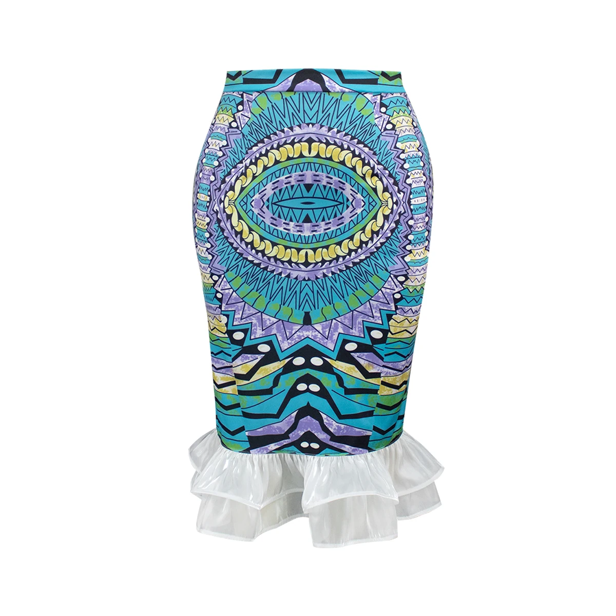 Producrt Name:Print Tulle Ruffles Classy Patchwork Package Hip Female Autumn Skirts