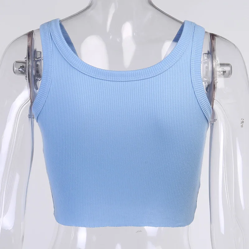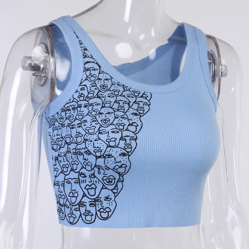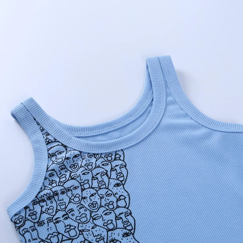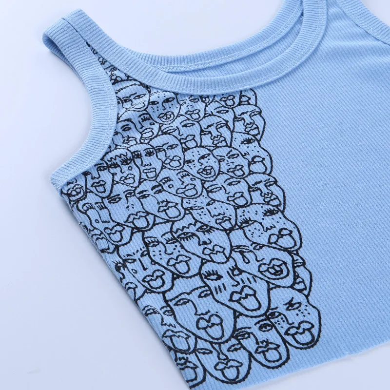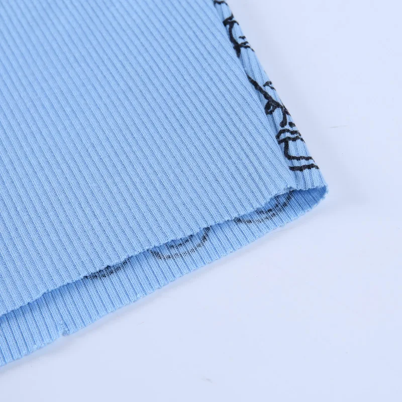 Printed knitted short vest rib round neck summer new women sexy casual navel tops