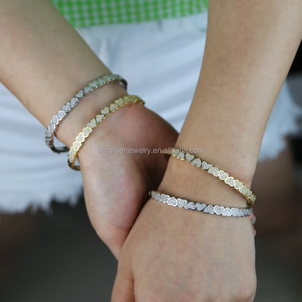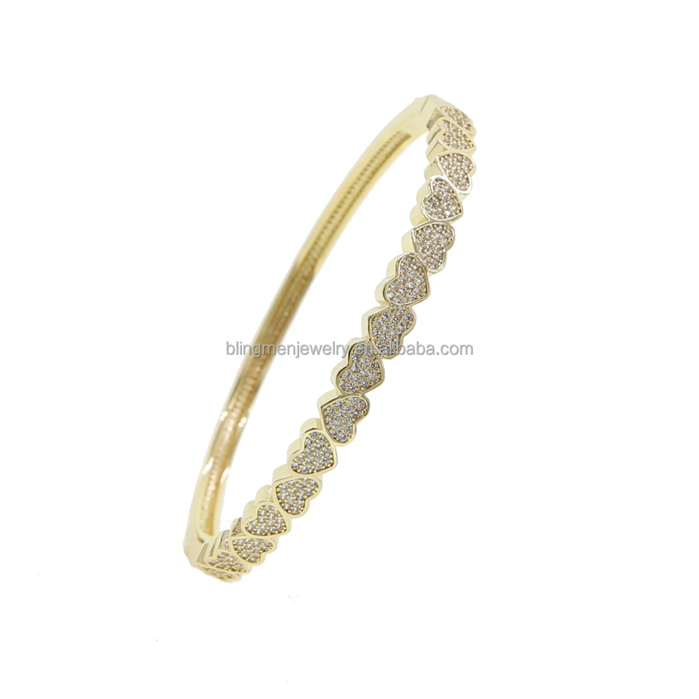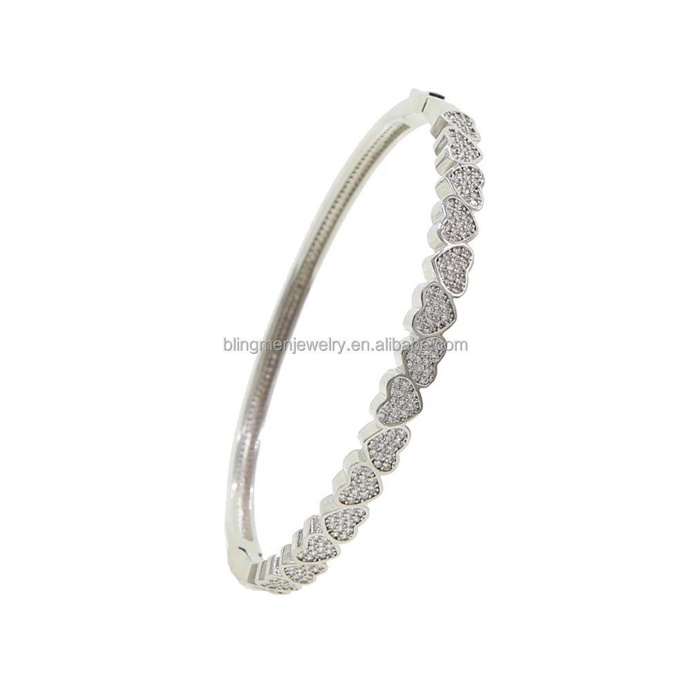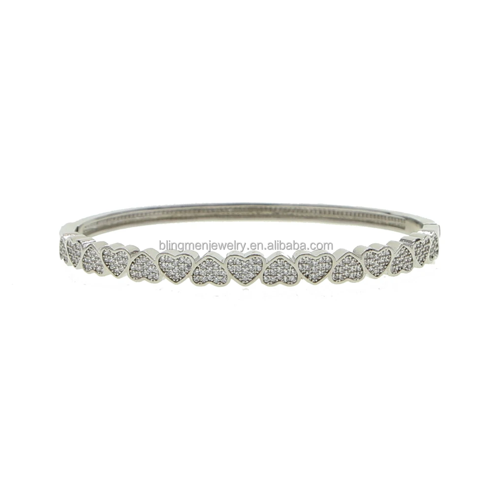 Promotion Individuality Valentine's Day Gift Heart Shape Bangle Bracelet Micro Pave 5A Cz Bling Diamond Women Jewelry