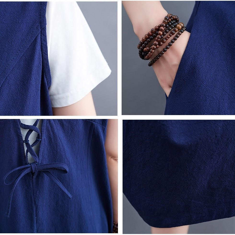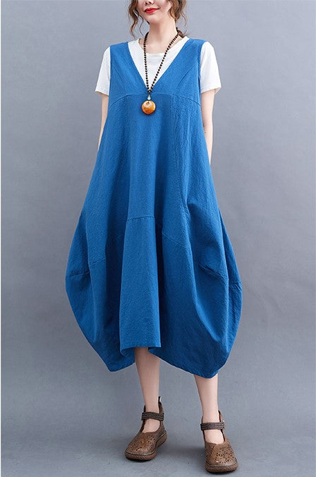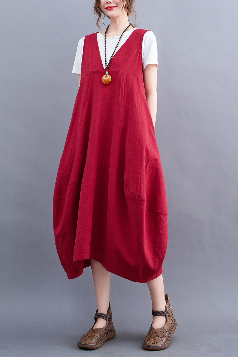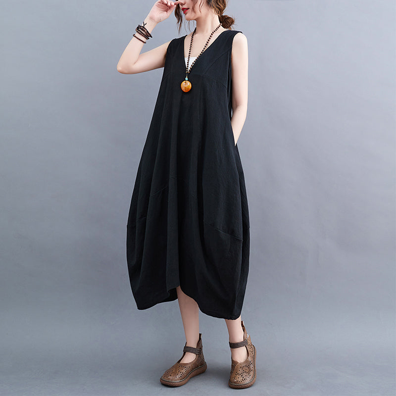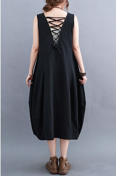 Purple Cotton Linen Loose Midi Dress V Neck Sleeveless Vest Plus Size Summer Korean Fashion Vestidos Verano Dresses For Women