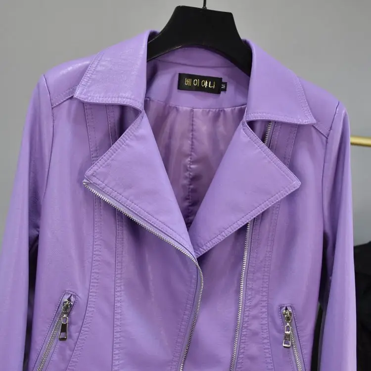 Purple Leather Jacket Women's Short Coat Slim Spring and Autumn Short Clothing