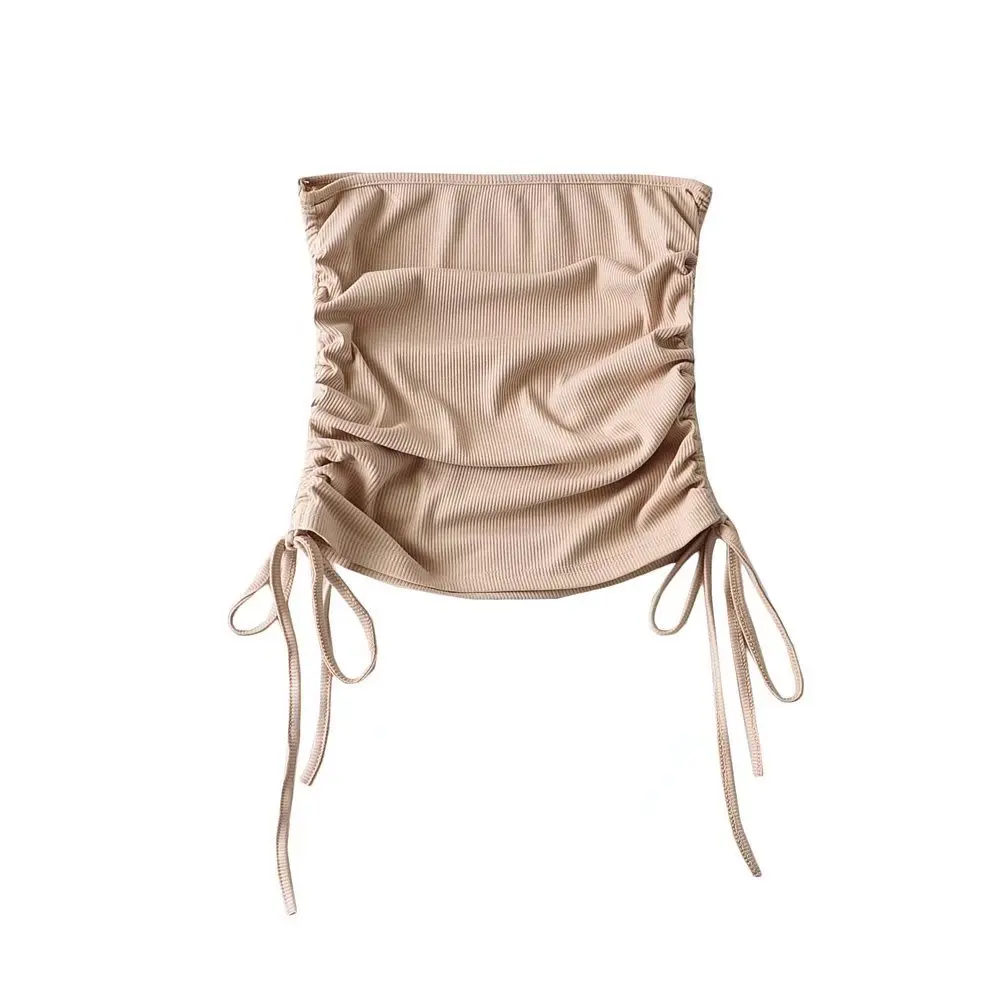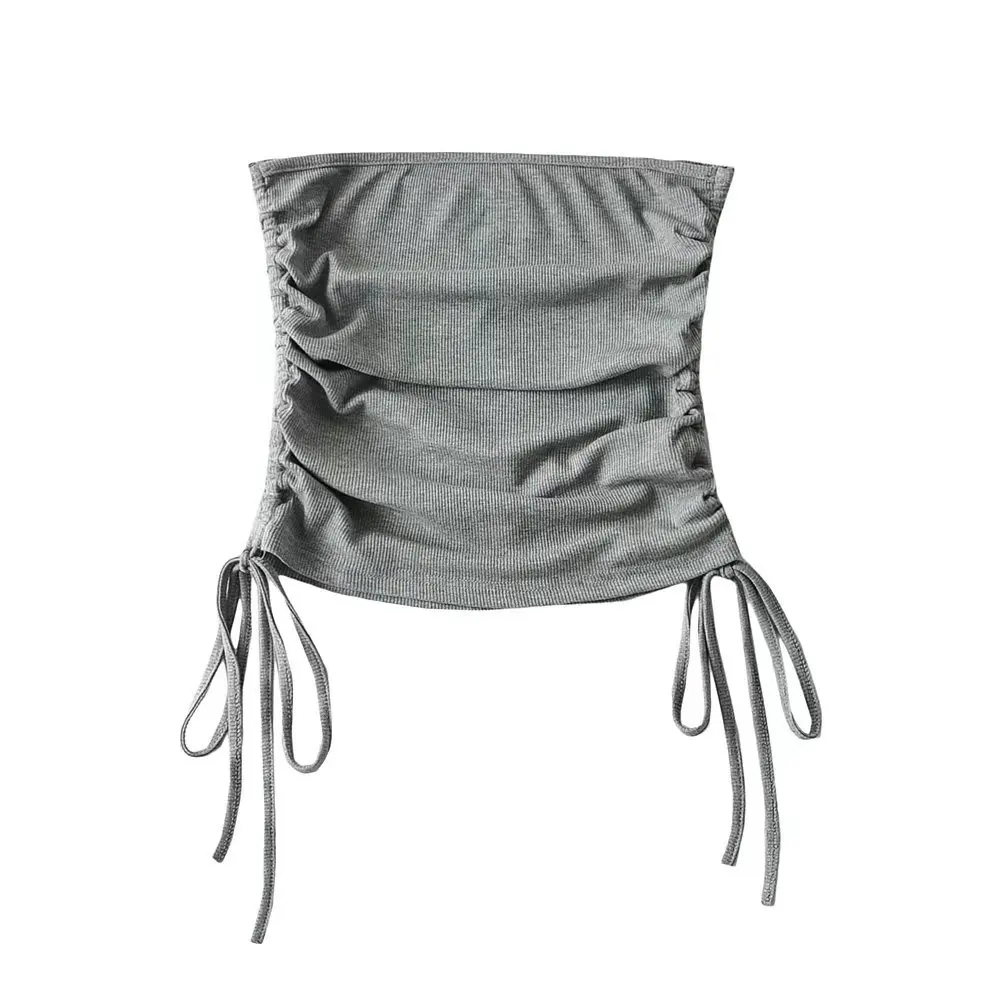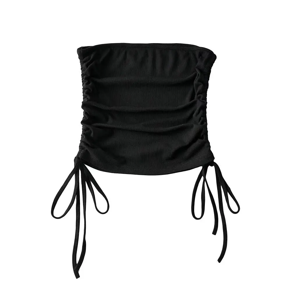 Women's spring new European and American fashion side drawstring tube slim tank top