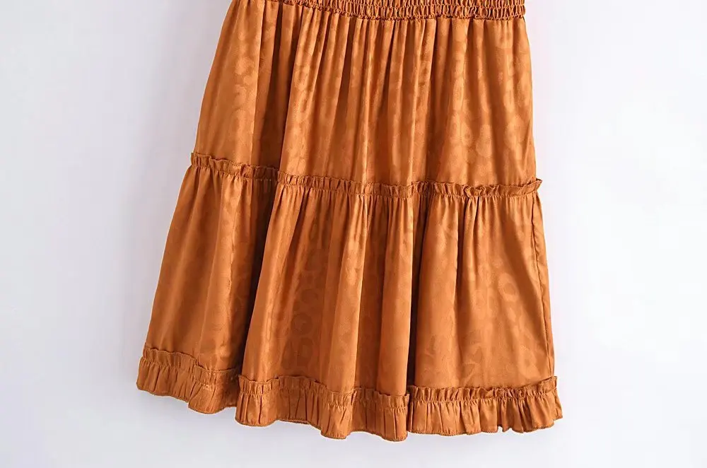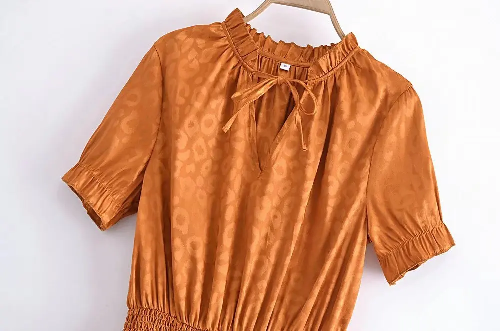 R13633S Women's spring new hot sale fashion satin V-neck elastic waist short dress
