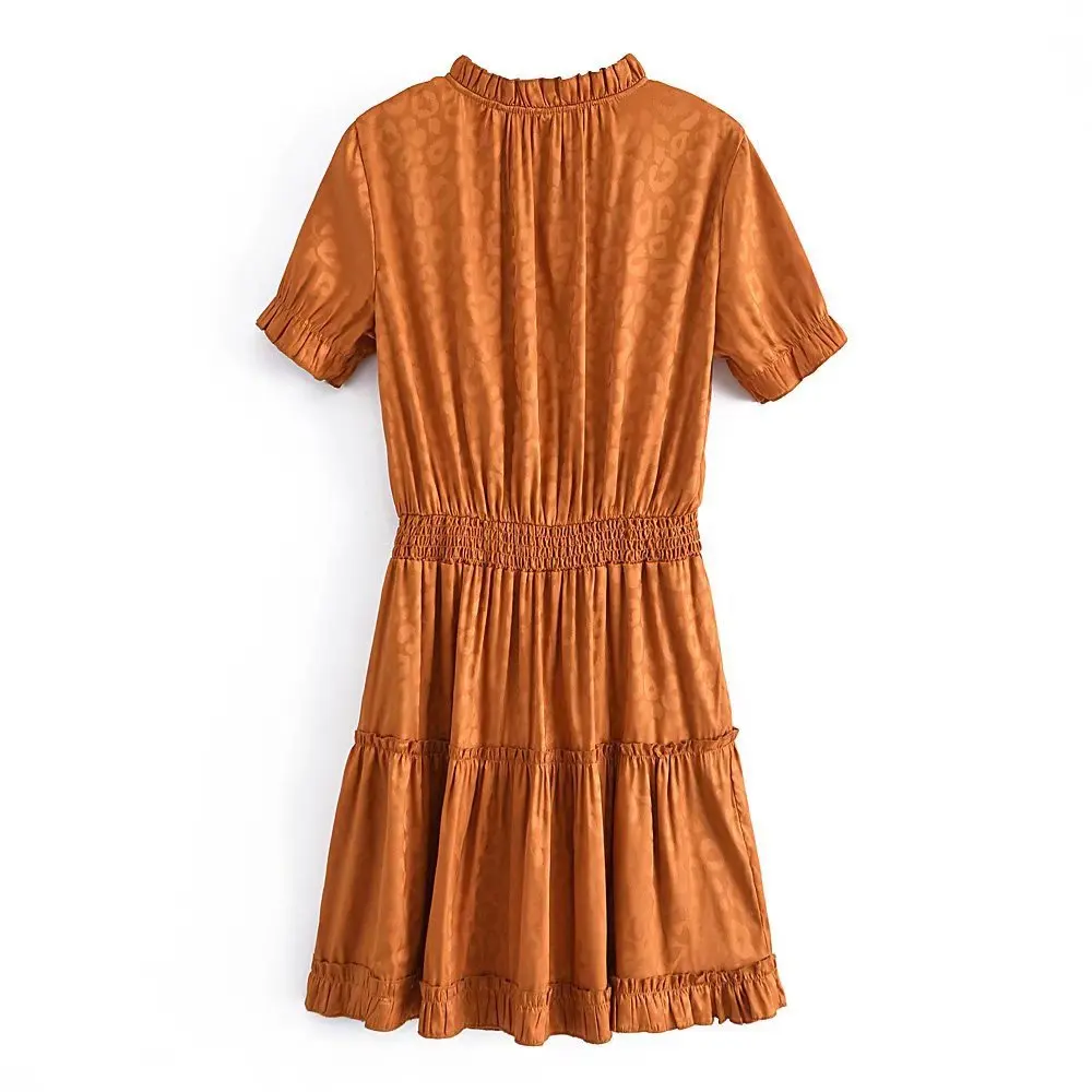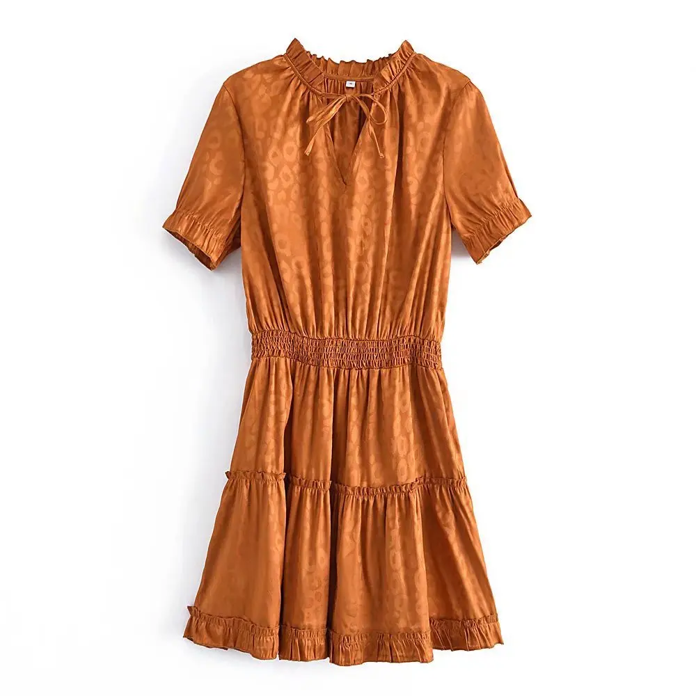 Women's spring new hot sale fashion satin V-neck elastic waist short dress