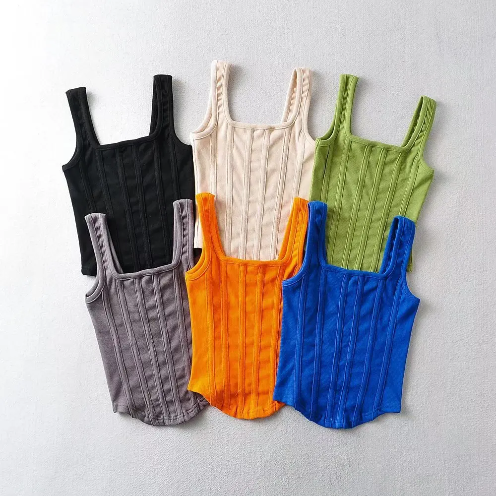 R13643S Women's spring new European and American fashion solid color fishbone suspenders slim tank top