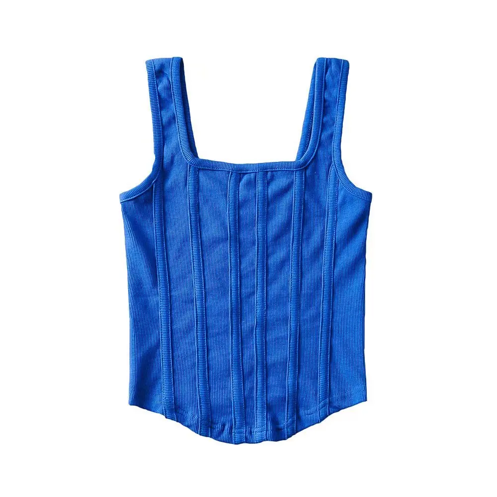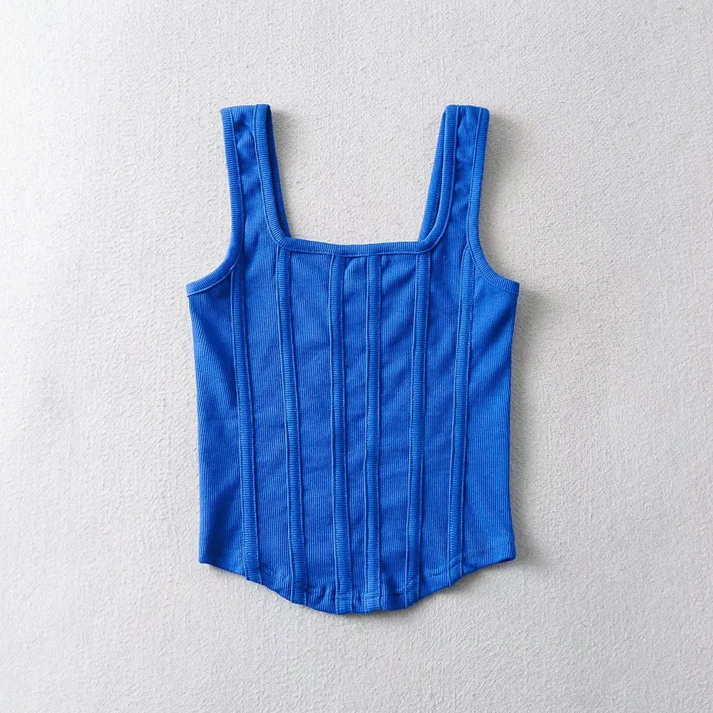Women's spring new European and American fashion solid color fishbone suspenders slim tank top