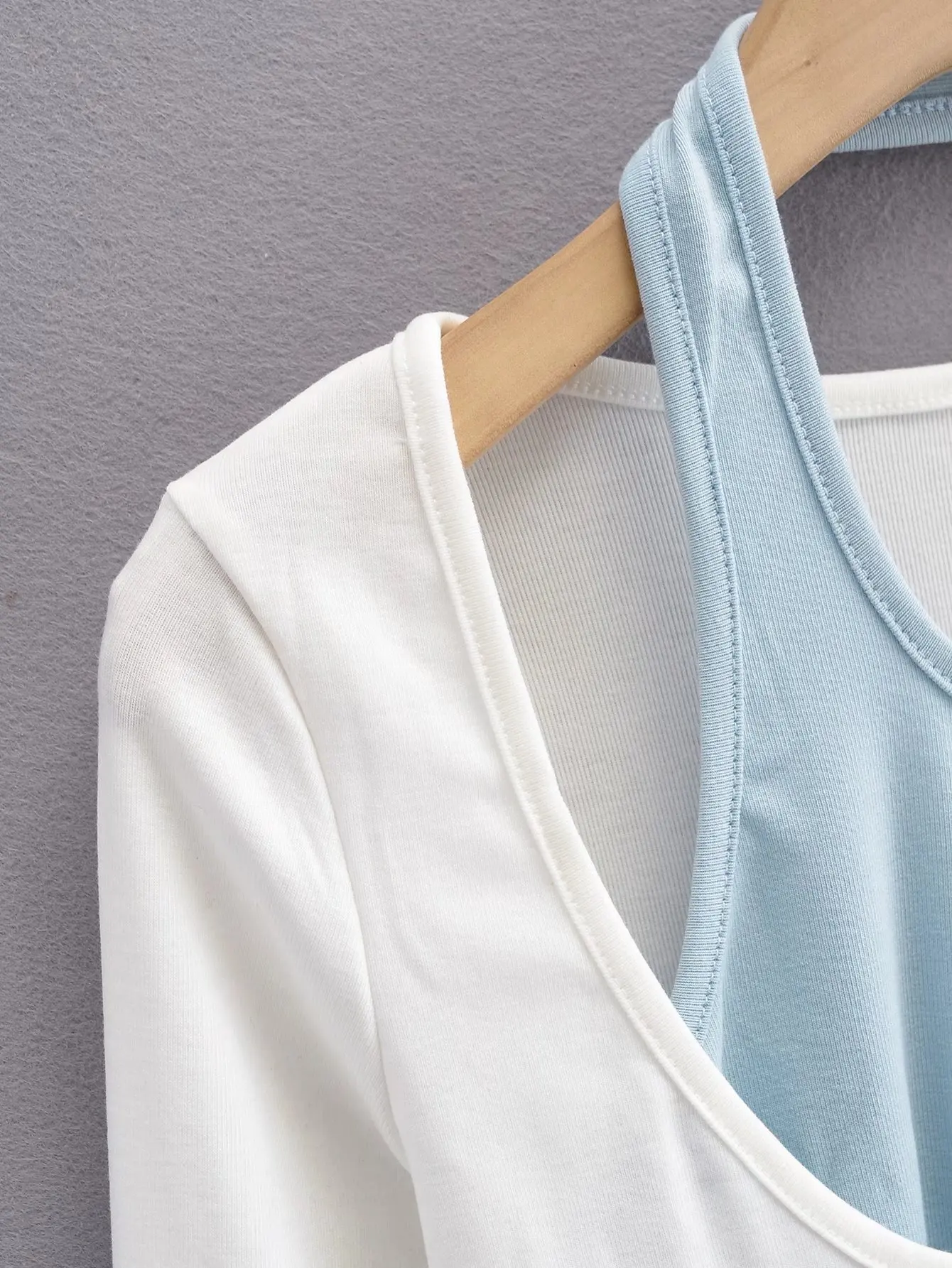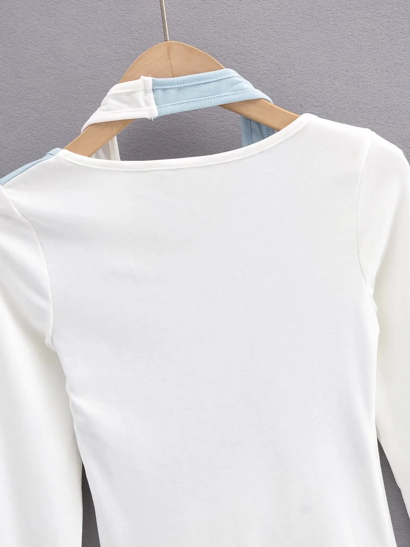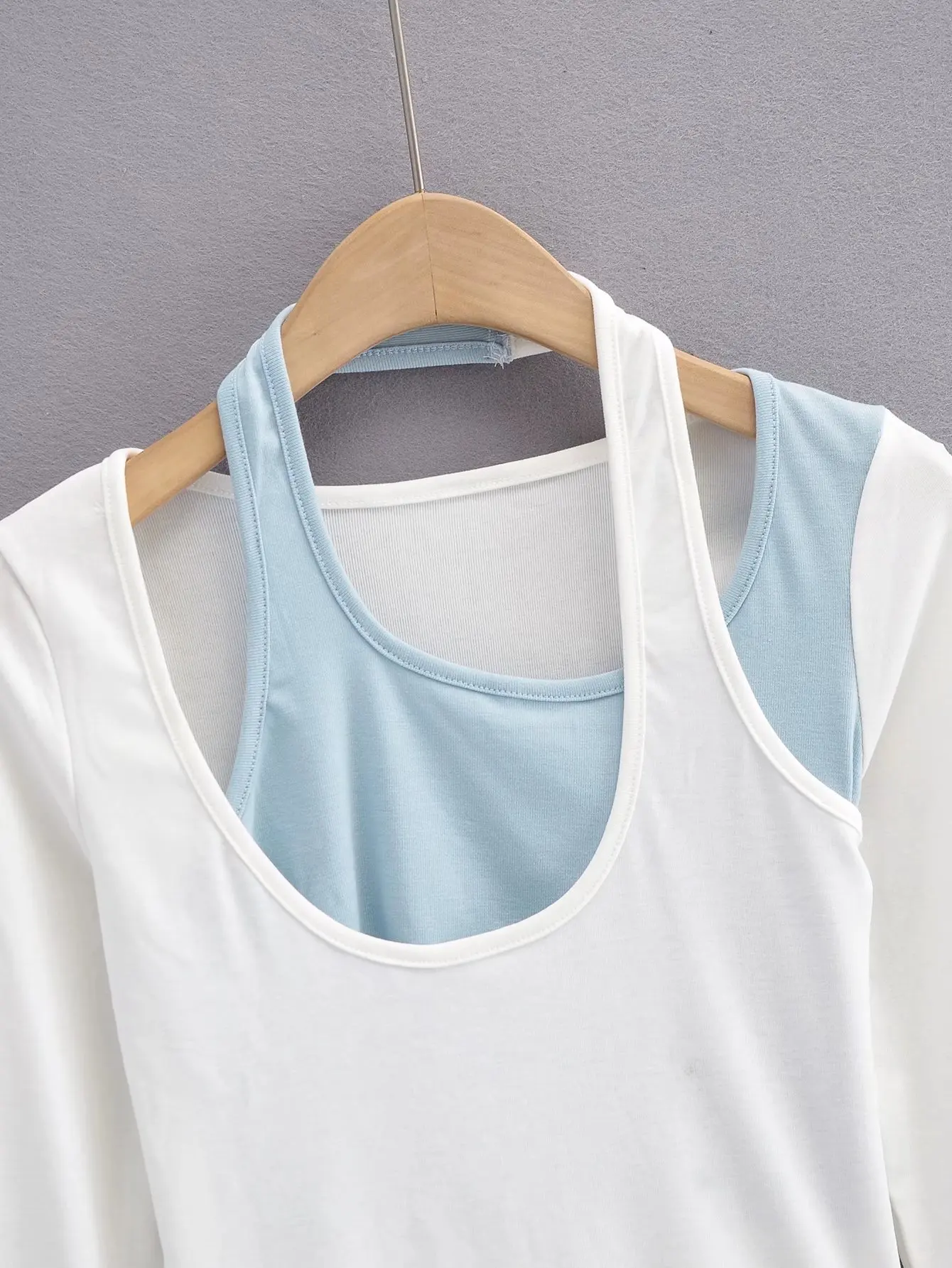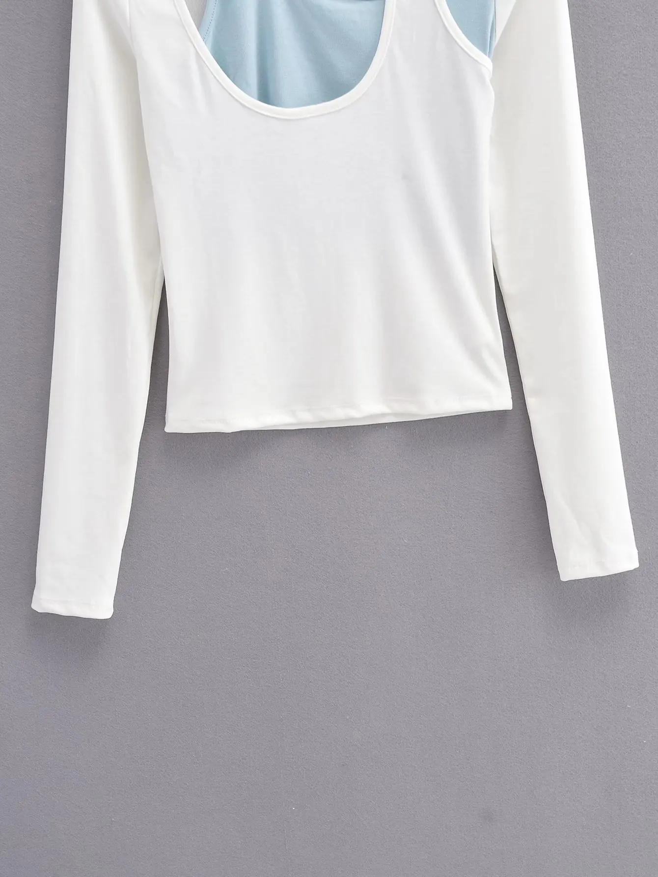 Women's fashion contrast color hanging neck two piece long sleeves slim T-shirt