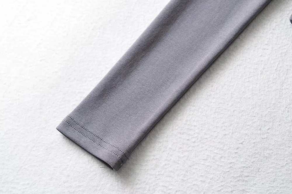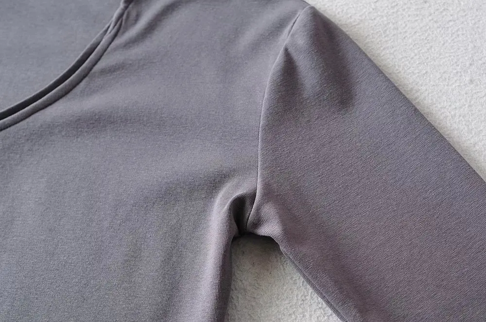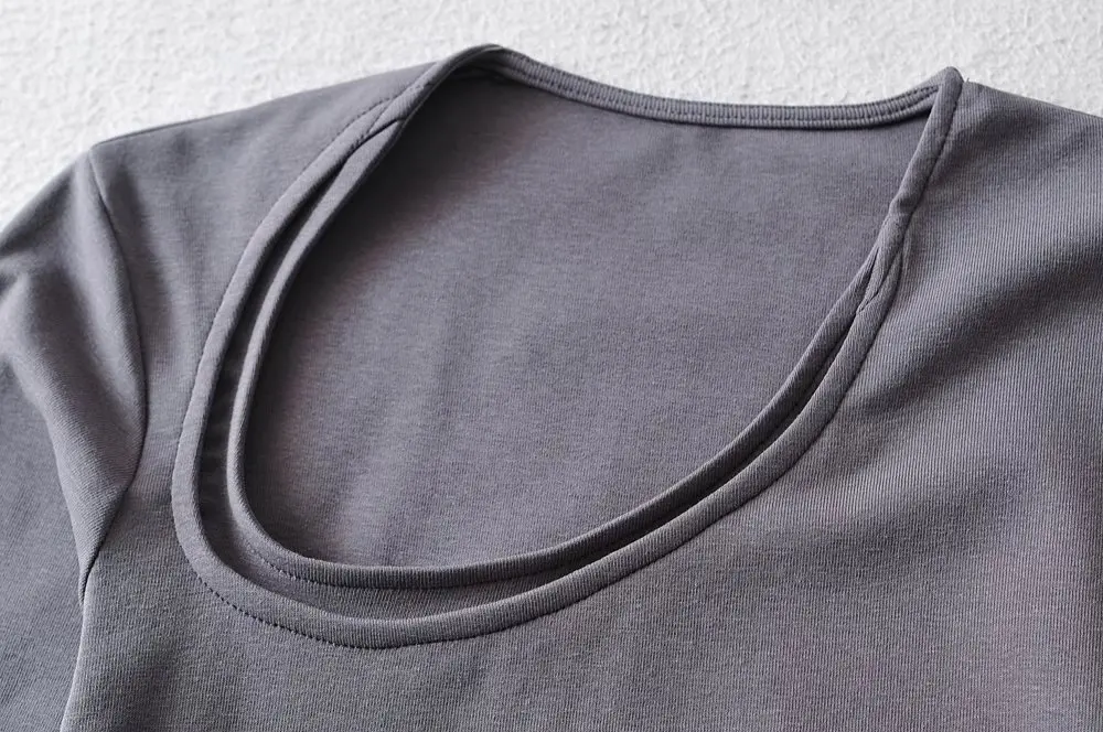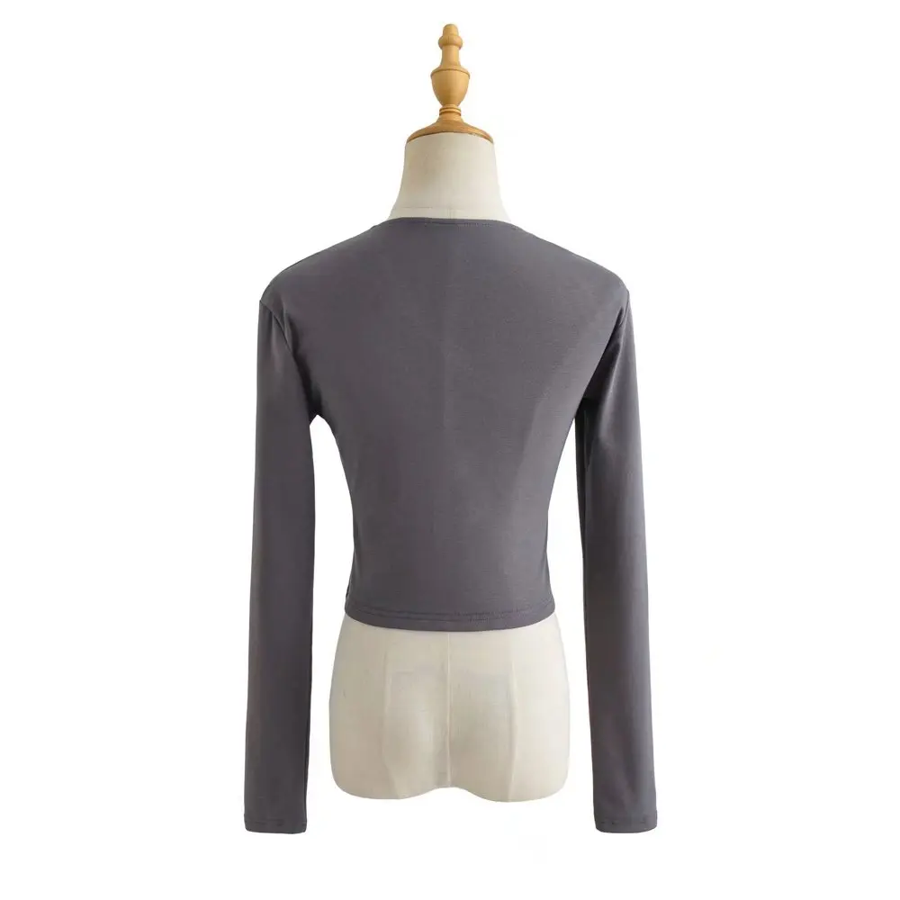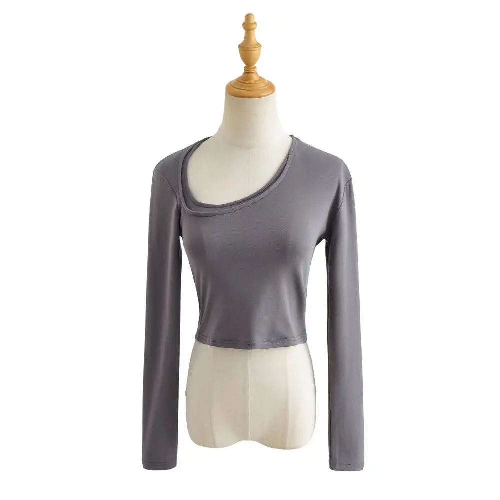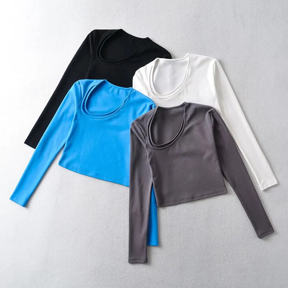 R13671S Women's spring new fashion solid color double layer folded collar sexy long sleeve t-shirt