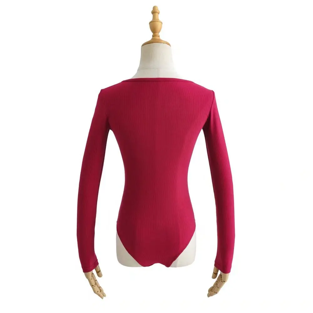Women's spring new stretch knit bottoming shirt square collar half sleeve inner jumpsuit