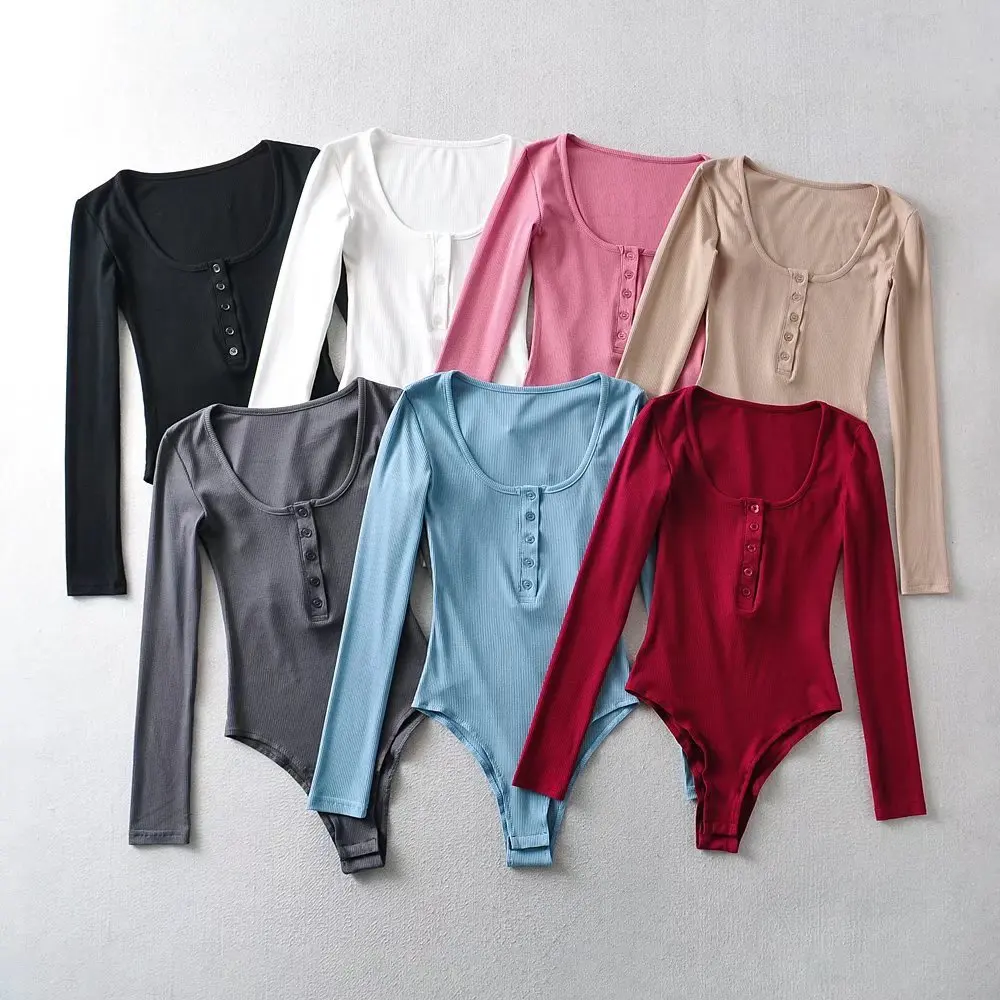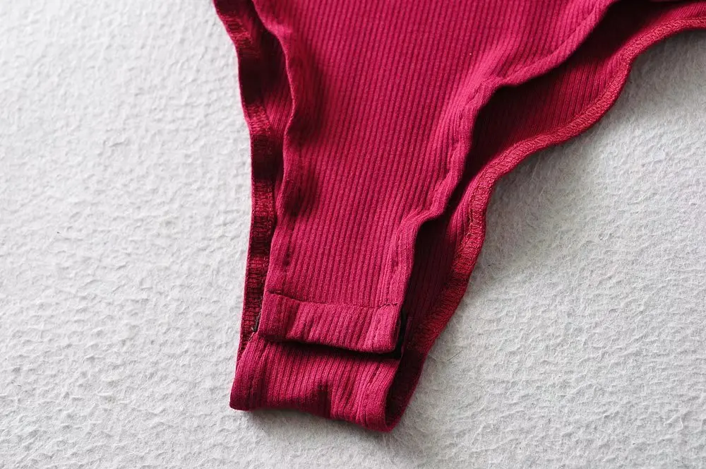 R13698S Women's spring new stretch knit bottoming shirt square collar half sleeve inner jumpsuit